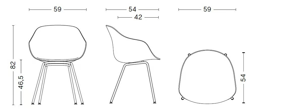 Az AAC 226 szék négy lábú acél vázzal és karcsú lábakkal rendelkezik, amely elegáns megjelenést kölcsönöz neki. Az AAC kollekció alapvető koncepcióját megőrizve, ez a modell ívelt héjjal és kissé magasabb háttámlával rendelkezik. A héjszerkezet mély, tágas ülést biztosít, amely esztétikus megjelenést és kényelmet kínál, míg az alacsonyabb kartámaszok jó támaszt nyújtanak, és lehetővé teszik, hogy a szék könnyedén elférjen egy étkezőasztal vagy irodai asztal alatt. A funkcionális alap enyhén kifelé dőlő lábakkal rendelkezik az optimális stabilitás érdekében, fekete porszórt és króm kivitelben kapható. A poszt-fogyasztói újrahasznosított műanyag héj modern színek széles palettáján és többféle kárpitozási lehetőséggel érhető el. A számos változat és design kombináció sokoldalúságot biztosít különböző irodai, közösségi és magán környezetekben.