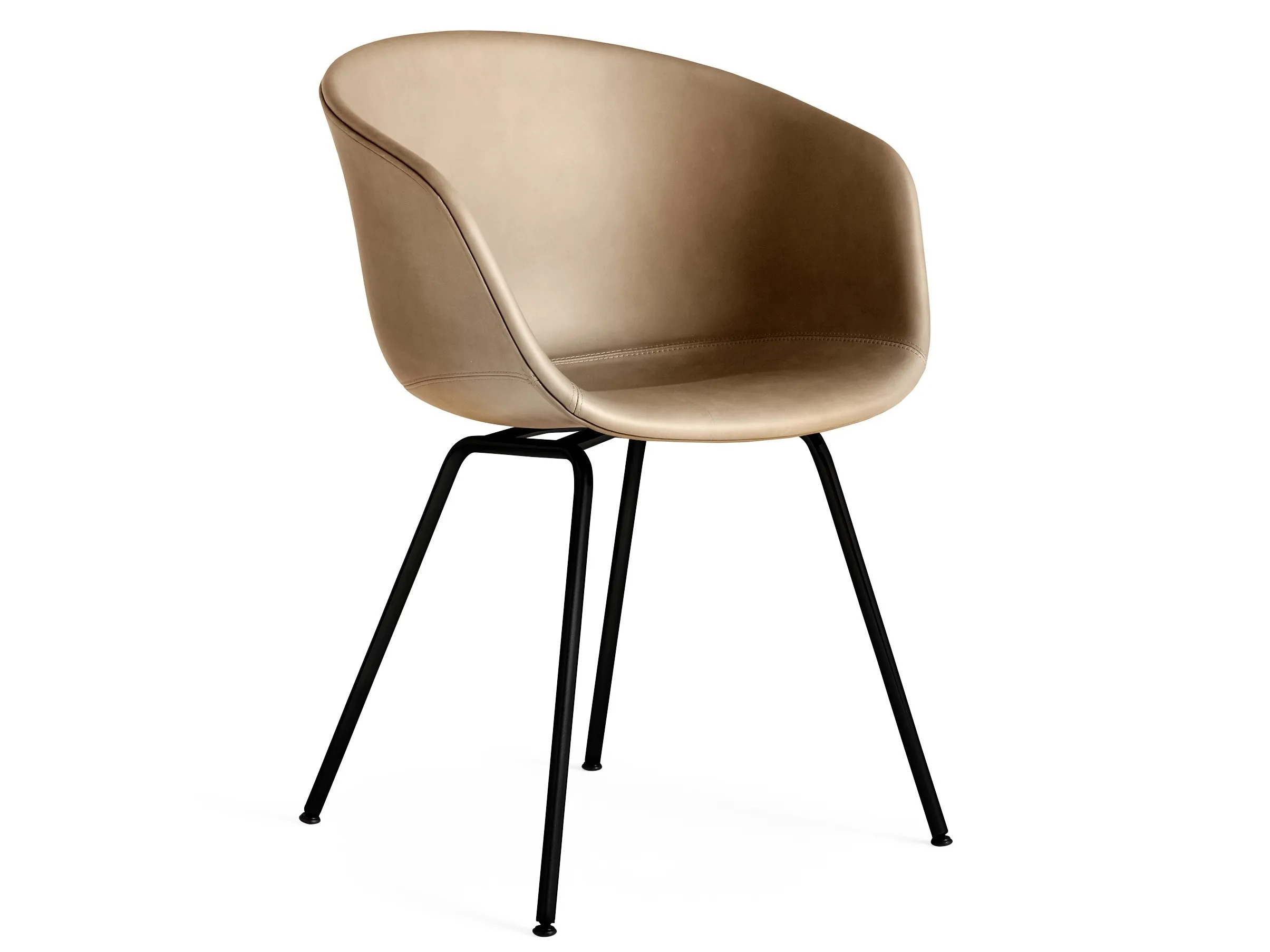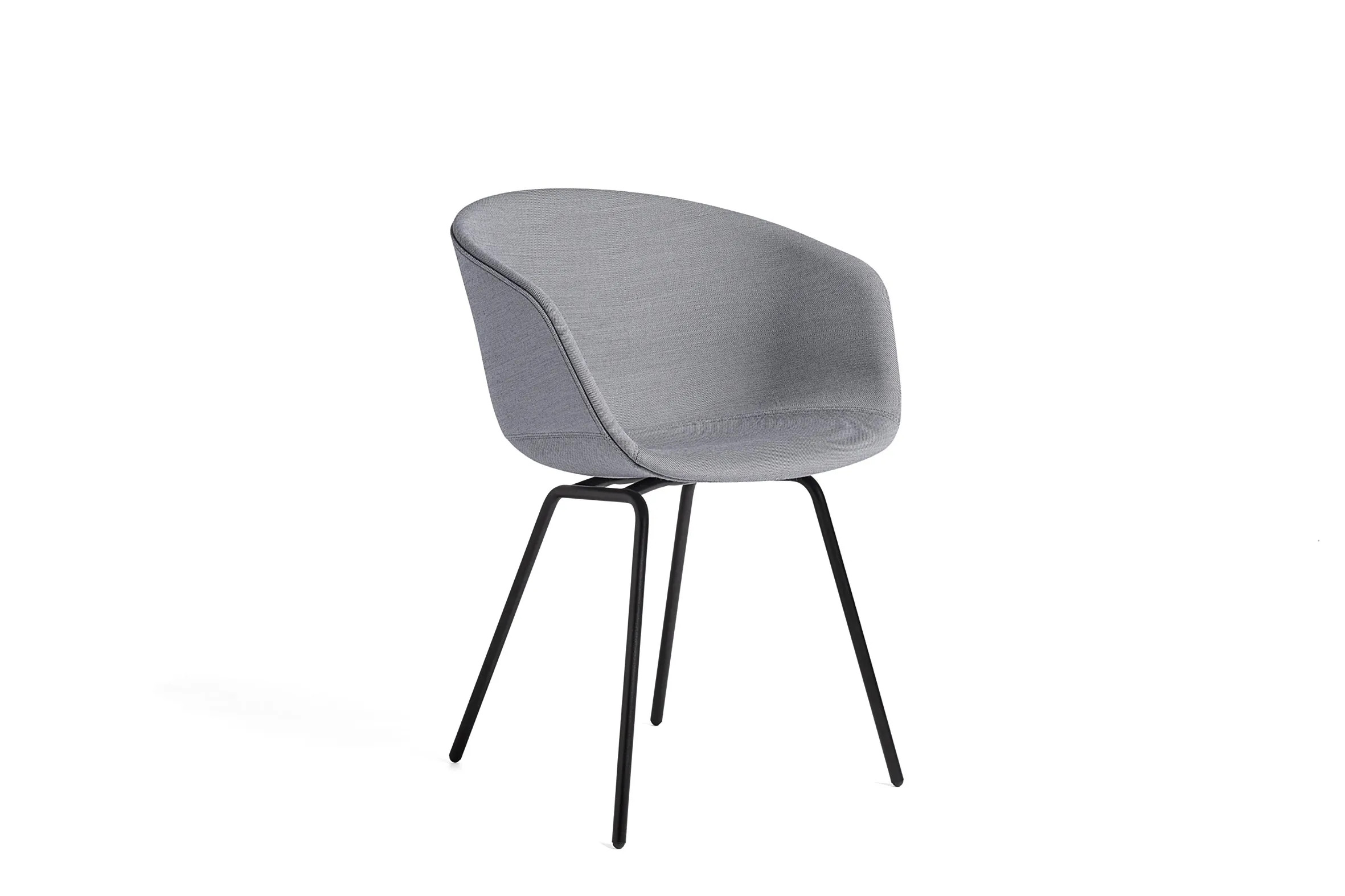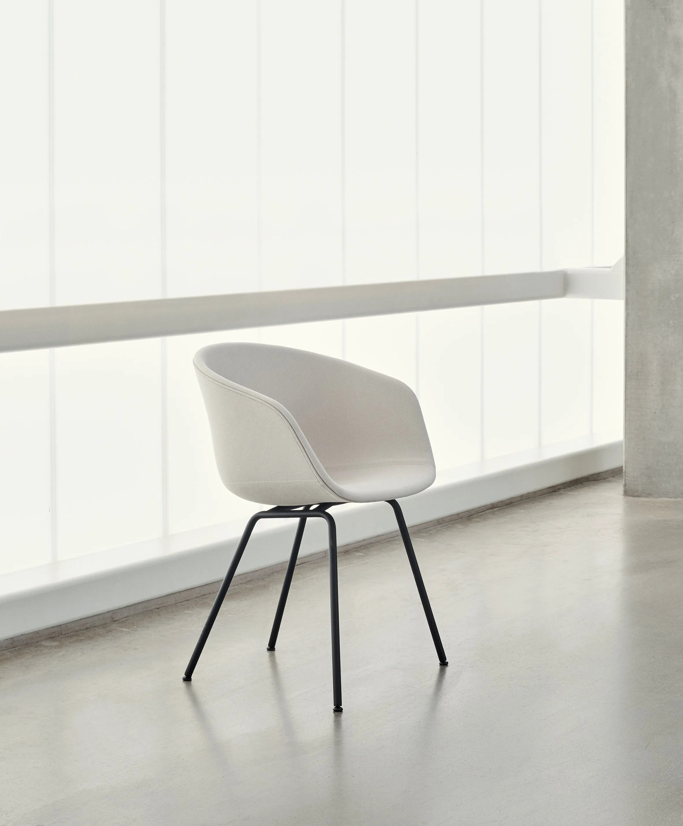 Az About a Chair AAC27 szék a funkcionalitás és egyszerűség jegyében készült, amely az egész sorozat jellegzetessége. A szilárd héj ívelt háttámlával és kartámasszal rendelkezik, teljesen kárpitozott polipropilénből, ami kiváló kényelmet és egységes megjelenést biztosít. A négy lábú, hajlított acélcső alap minimalista kifejezést kölcsönöz, és garantálja a tartósságot. Számos textil- és alapfelület közül választható, így sokféle design kombinációt kínál irodai asztalokhoz, étkezőasztalokhoz vagy kávézó székekhez. Az injektált polipropilén héj 10 mm vastag, 10 mm habbal, a 4 lábú alap Ø18 mm-es hajlított acélcsőből készült. Három különböző alapfelülettel érhető el: fekete porszórt acél (RAL 9005), fehér porszórt acél (RAL 9003) és krómozott acél.