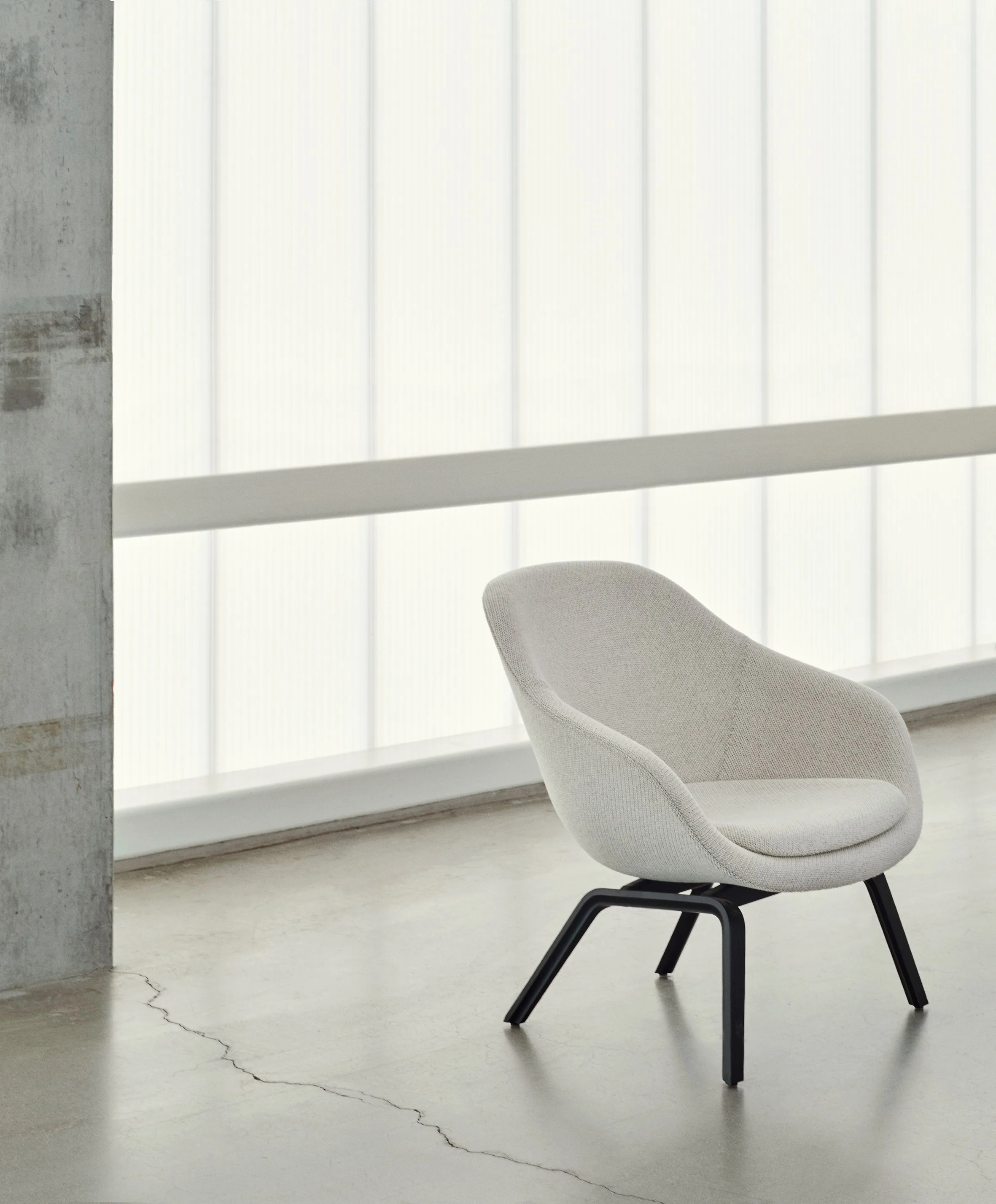 A formázott rétegelt lemez váza és a minimalista fa keret kombinációja egy letisztult, szögletes megjelenést kölcsönöz ennek a bútordarabnak. Elérhető alacsony háttámlás változatban, vagy magas háttámlás verzióban, amely tágasabb érzetet nyújt. A széles párna-, láb- és kárpitválaszték lehetővé teszi, hogy egyedi kombinációkat hozzon létre, amelyek különféle nyilvános és privát környezetekhez illeszkednek. A puha, formázott poliuretán hab héj karfával rendelkezik. A rétegelt lemez alapja bükk belső réteggel és tölgy furnér borítással készül. Számos standard szövet és bőr kárpitozással kapható. Négy különböző alapfelület közül választhat: szappanozott tölgy furnér, fekete pácolt tölgy furnér (RAL 9005), átlátszó lakkozott tölgy furnér, matt lakkozott tölgy furnér (csak igény szerint).