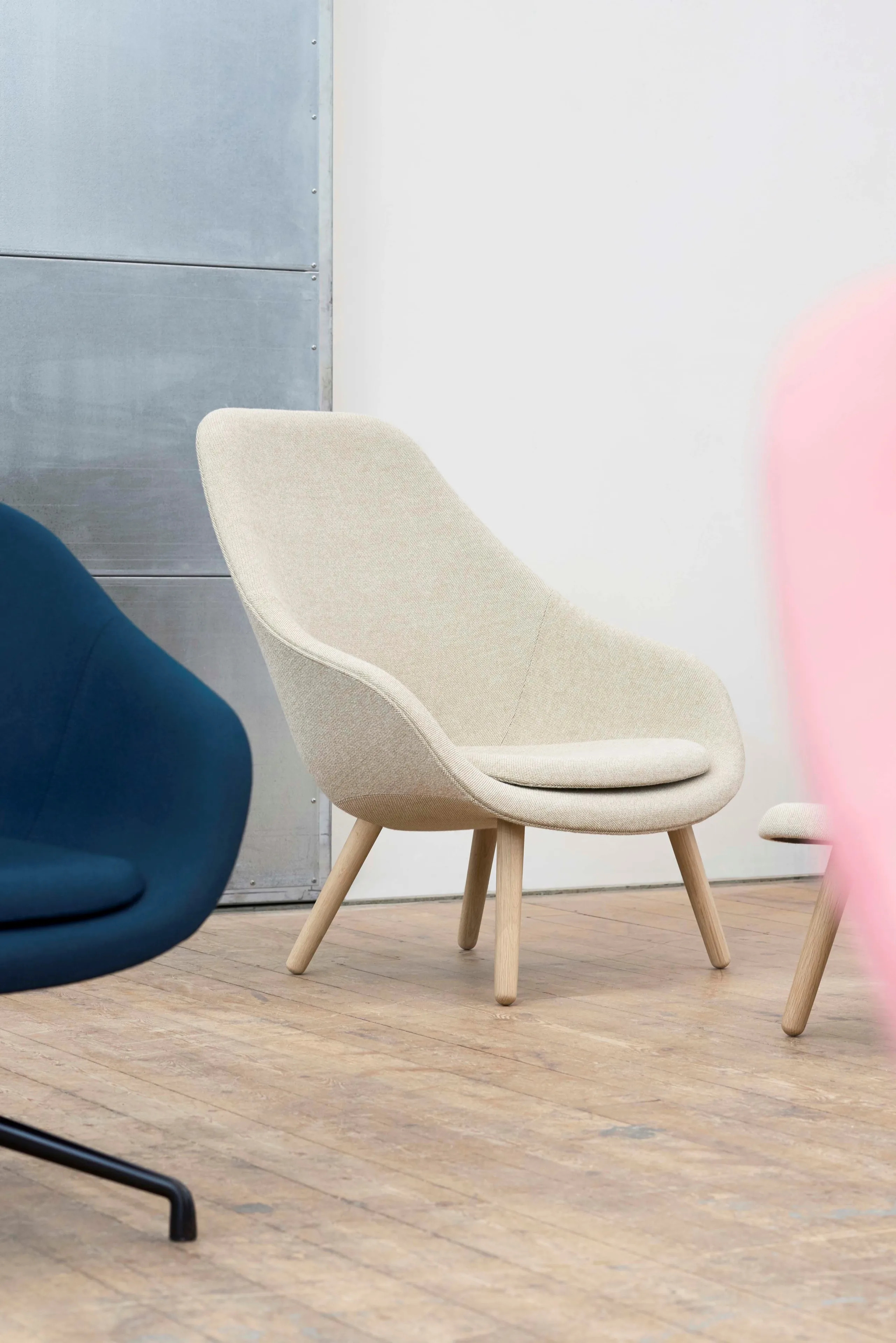 Az About A Lounge Chair AAL92 egy kompakt kialakítású ülőalkalmatosság, amely formázott karfákkal és kerek fa lábakkal rendelkezik. A széria többi darabjához hasonlóan, a szoborszerű dizájn egyszerű és letisztult. Kapható alacsony háttámlás változatban, amely intimebb megjelenést kölcsönöz, vagy magas háttámlás verzióban, amely nyitottabb, tágasabb kompozíciót kínál. Az AAL92 tökéletesen illeszkedik az About an Ottoman-hoz, de önállóan is megállja a helyét. A széles párna-, láb- és kárpitválaszték lehetővé teszi, hogy egyedi kombinációkat hozzon létre különféle közösségi és privát terekben. A puha, formázott poliuretán habból készült héj karfával, valamint 4 tömör fa lábbal rendelkezik. Számos standard szövet- és bőrváltozatban elérhető, 4 különböző alapfelülettel: szappanozott tömör tölgy, fekete pácolt tömör tölgy (RAL 9005), átlátszó lakkozott tömör tölgy, matt lakkozott tömör tölgy.