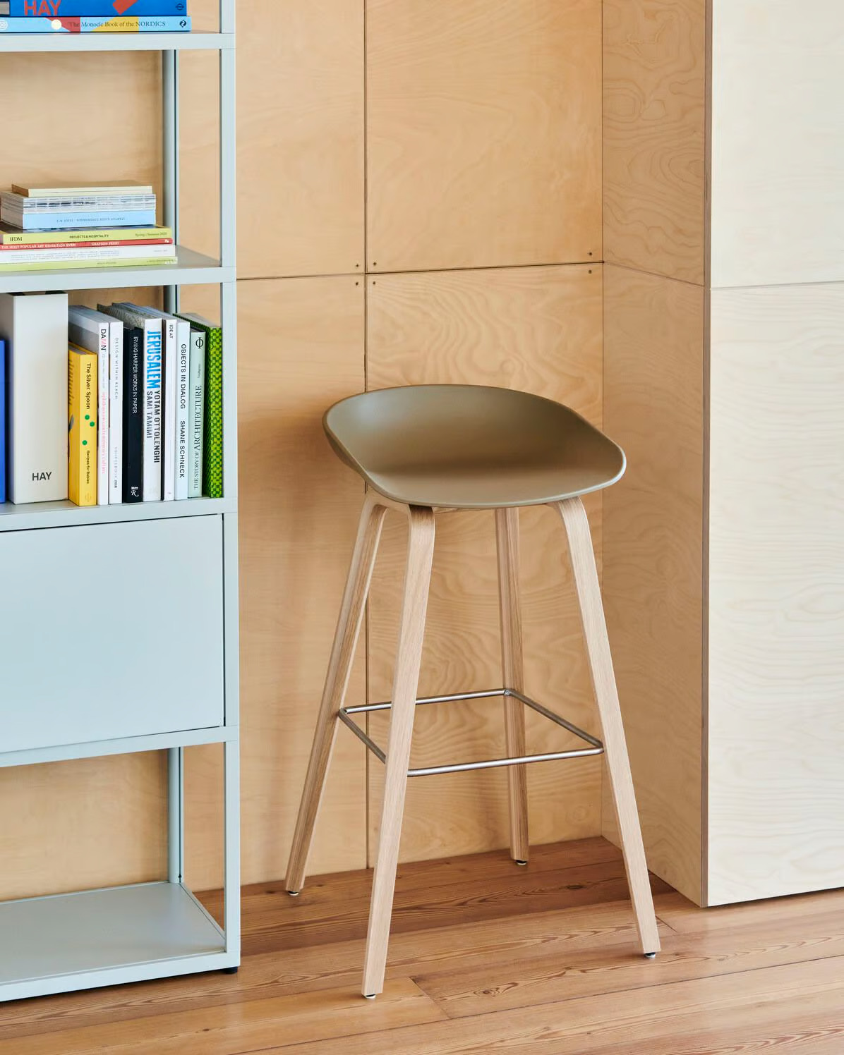 Az About A Stool AAS 32 egy ívelt háttámlával és hosszú, elegáns fa lábakkal rendelkező szék, amely a kollekció többi darabjához hasonlóan sokoldalú megjelenést kínál. Az ülés poszt-konszumer újrahasznosított műanyagból készül, és számos modern színben, valamint különböző előlap kárpitozási lehetőségekkel érhető el. A lábak kétféle magasságban és különböző fa felületekkel választhatók. Egyszerű, mégis erőteljes vizuális megjelenése miatt ideális választás étkezőasztalokhoz, irodai asztalokhoz, modern asztalokhoz, valamint kávézó székeként is megállja a helyét különböző vállalati, közösségi és magán környezetekben.