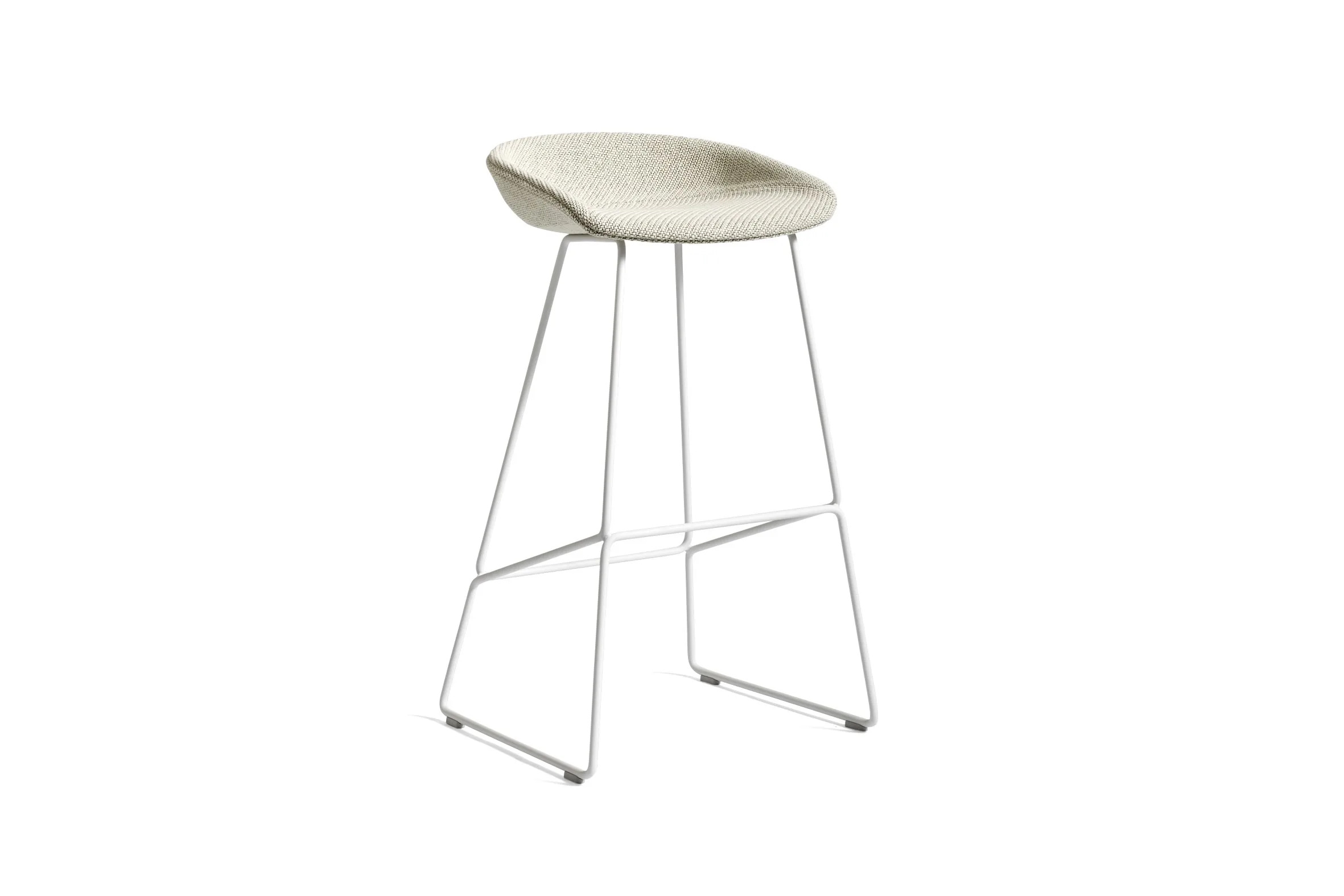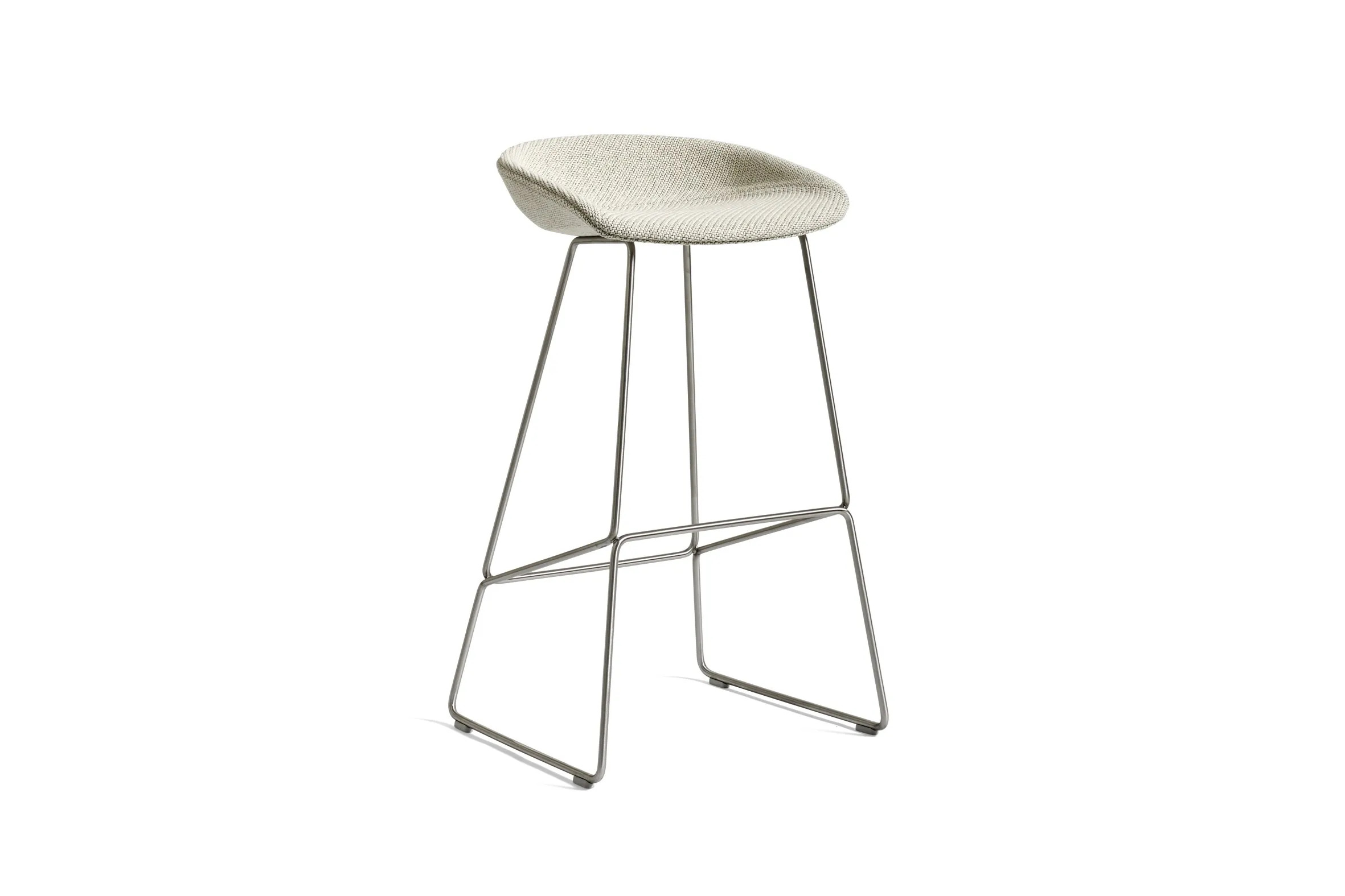 Az About A Stool AAS 39 bárszék a sorozat többi tagjához hasonlóan sokoldalúan alakítható, a minimalista műanyag széktől a teljesen kárpitozott változatig. Az ívelt háttámla elegáns, kerekített fémkereten nyugszik, amely ipari dizájnt sugall, erőteljes vizuális megjelenéssel. Ideális választás étkezőasztalokhoz, modern asztalokhoz, irodai asztalokhoz, valamint kávézó székekhez. Kétféle magasságban és számos fémfelülettel, színnel és kárpitozási lehetőséggel kapható. Az ülés szilárd színű polipropilénből készül, 10 mm vastag héjjal. A szánkótalp Ø12 mm-es tömör acélból készült. Széles választékban elérhető standard szövetekkel és bőrökkel. Három különböző talp kivitelben kapható: rozsdamentes acél, fehér porszórt acél (RAL 9003), fekete porszórt acél (RAL 9005).