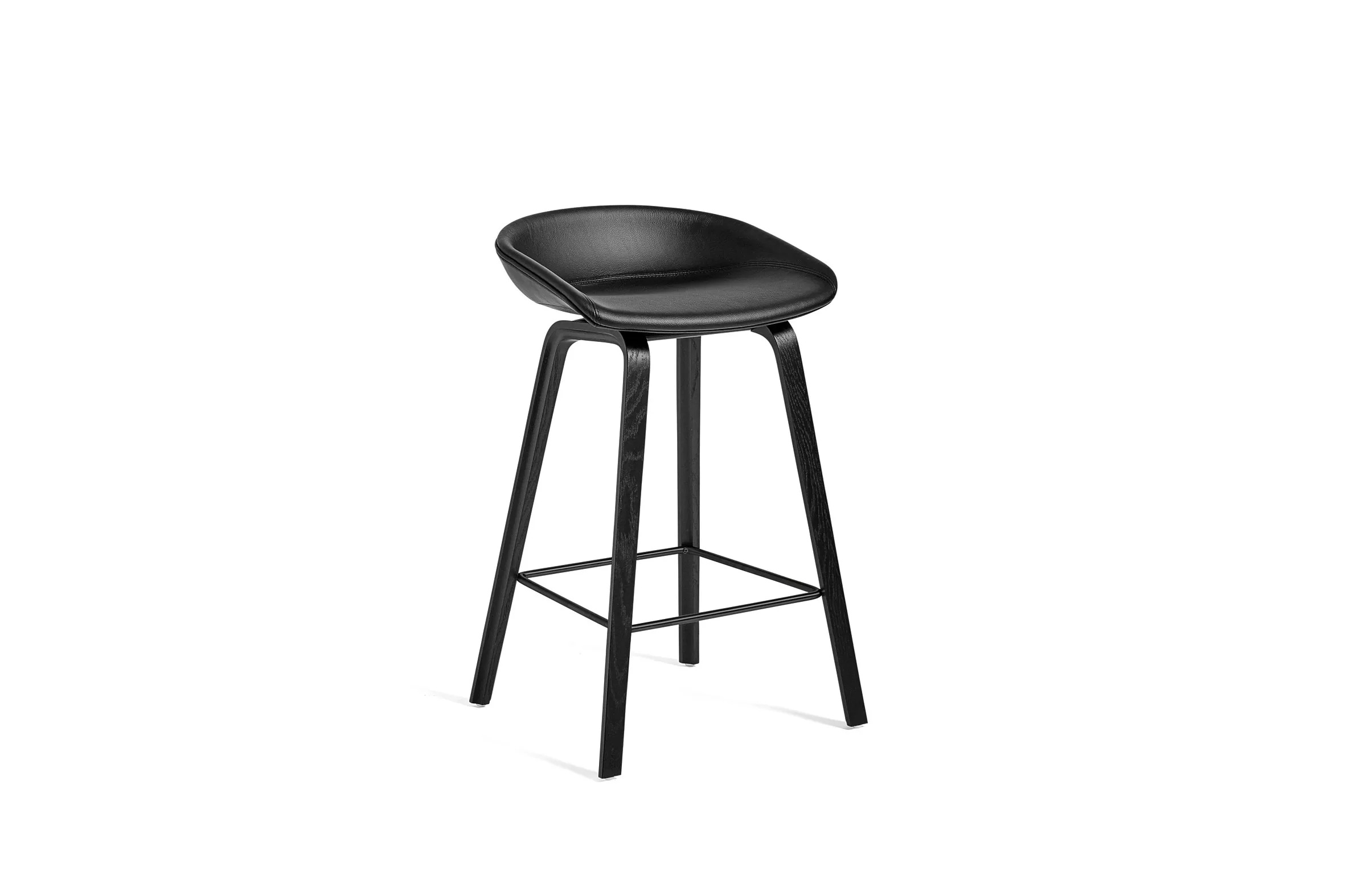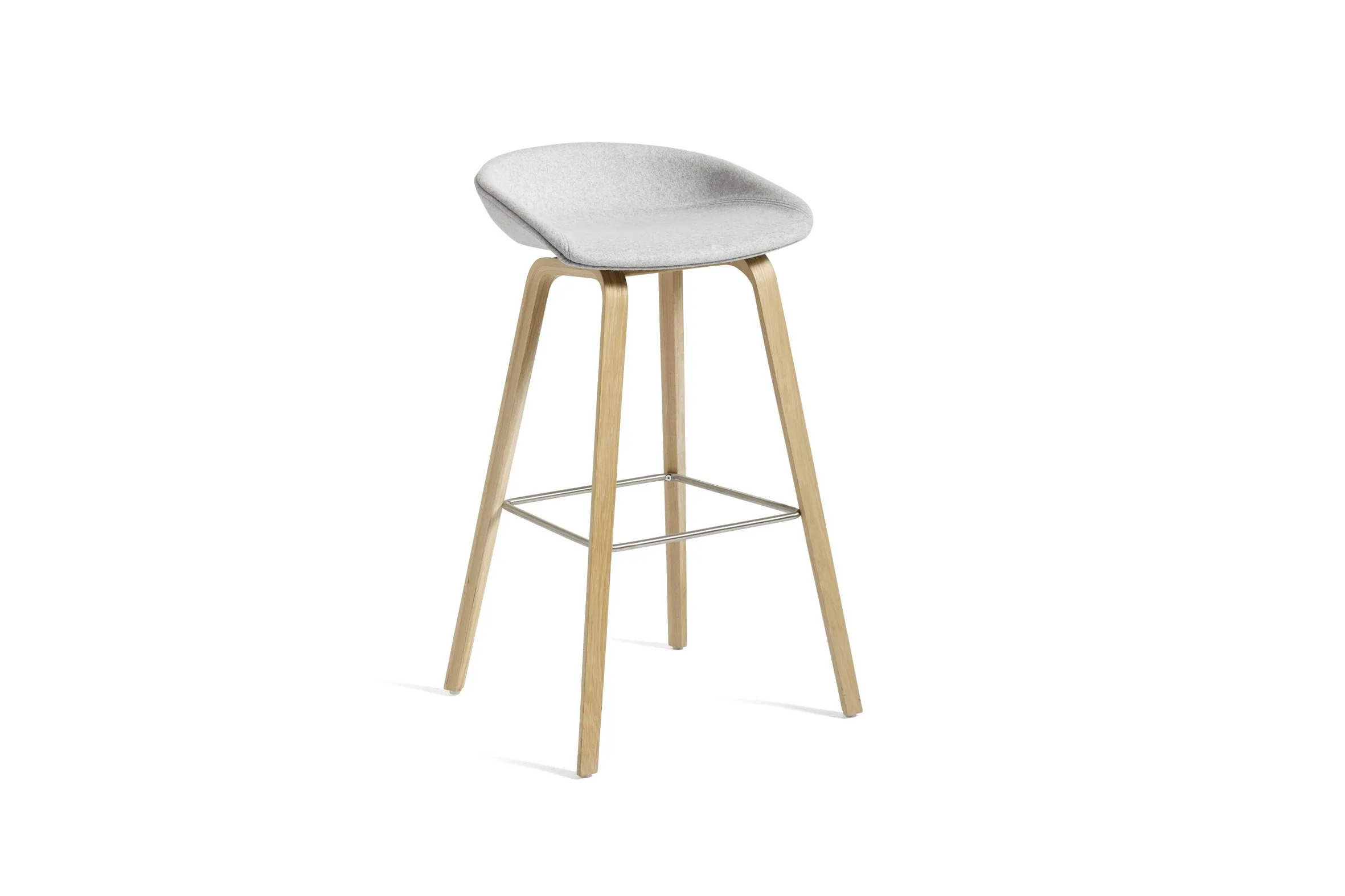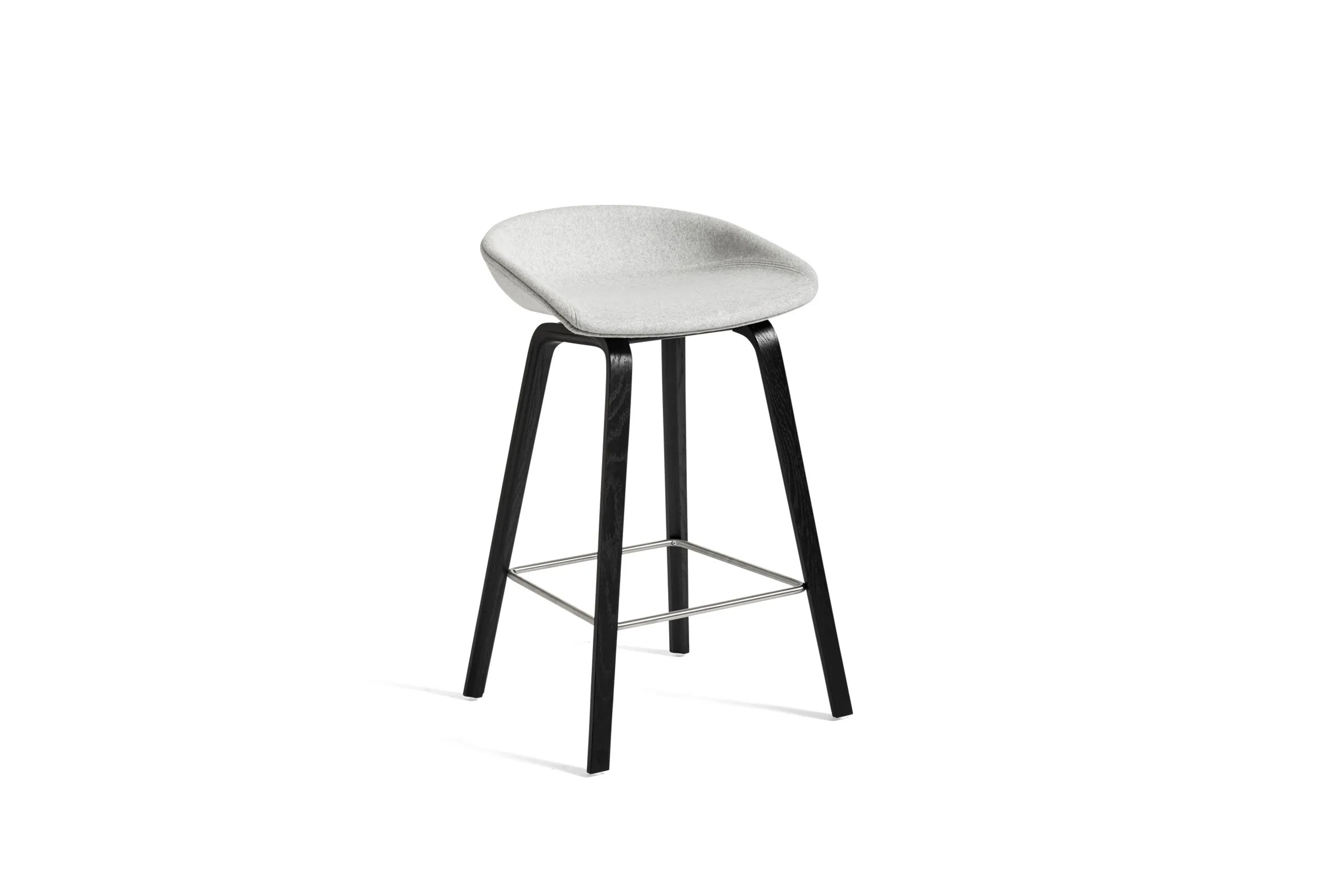 Az About A Stool AAS33 bárszék a sorozat többi darabjához hasonlóan sokoldalúan alakítható, a minimalista műanyag széktől a teljesen kárpitozott változatig. Ívelt háttámlája és hosszú, elegáns fa lábai egyszerű, mégis erőteljes vizuális megjelenést biztosítanak, ami ideálissá teszi étkezőasztalokhoz, irodai asztalokhoz vagy kávézó székeként. Kétféle magasságban, különböző fa felületekkel, színekkel és kárpitozási lehetőségekkel kapható. Az ülés injekciós öntéssel készült polipropilénből, teljes kárpitozással és 10 mm-es habszivaccsal. Az alap formázott rétegelt lemezből készült, belső rétegelt lemez bükkből, felső furnér tölgy vagy dió. A lábtartó fekete porszórt acél vagy rozsdamentes acél, a csúszótalp műanyag, minden változaton alapfelszereltség, és alkalmas a legtöbb padlóburkolathoz.