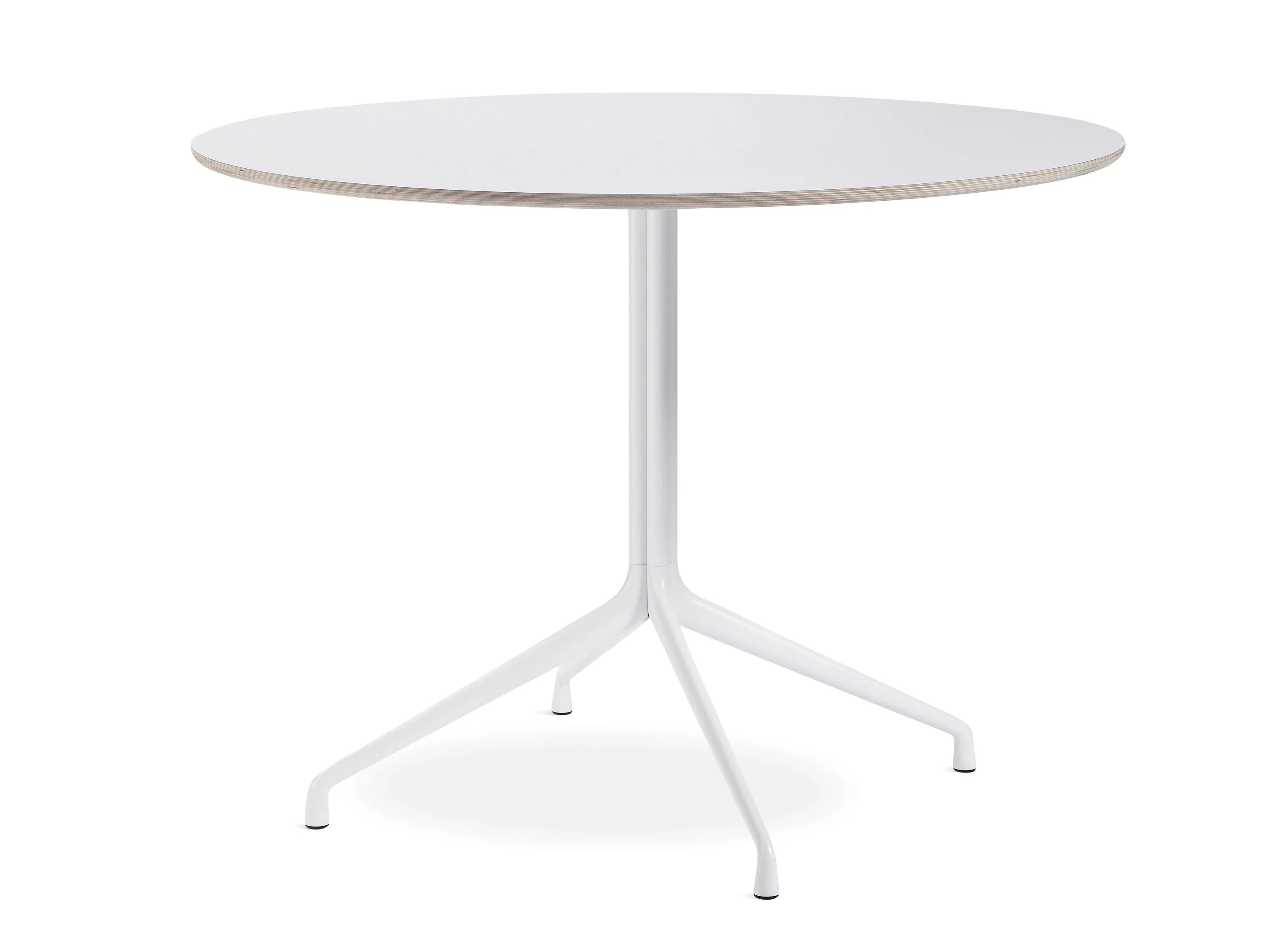 Az About A Table AAT20 a sokoldalúság és a letisztult design jegyében készült, harmonizálva a sorozat többi darabjával. Az étkezőasztal porfestett váza és organikus ívei könnyed megjelenést kölcsönöznek, amely tökéletesen illeszkedik modern asztalok és design székek környezetébe. Két magasságban és számos méretben elérhető, így irodai asztalként vagy kávézó székek kiegészítőjeként is ideális. A 25 mm vastag rétegelt lemez asztallap linóleum vagy laminált felülettel, lekerekített élekkel rendelkezik. Négy lába porfestett vagy polírozott alumíniumból készül, háromféle kivitelben: fekete (RAL 9005), fehér (RAL 9003) vagy polírozott alumínium. Az asztallap két színben választható: fekete linóleum fekete szegéllyel (Forbo Desktop Nero 4023) vagy fehér laminált nyers szegéllyel (Formica F3091).