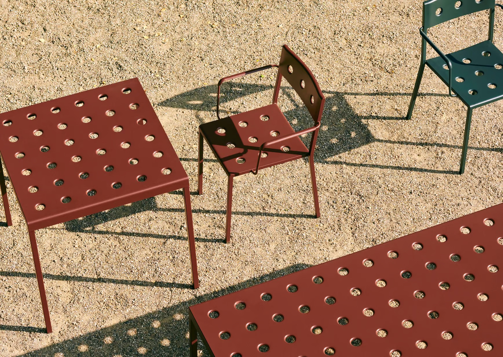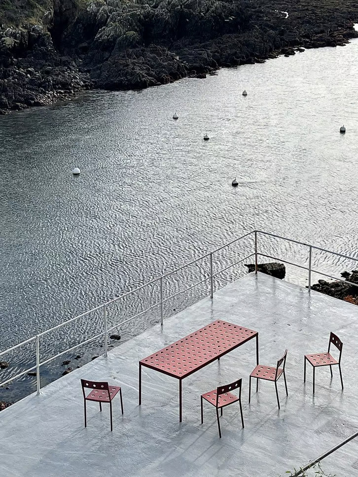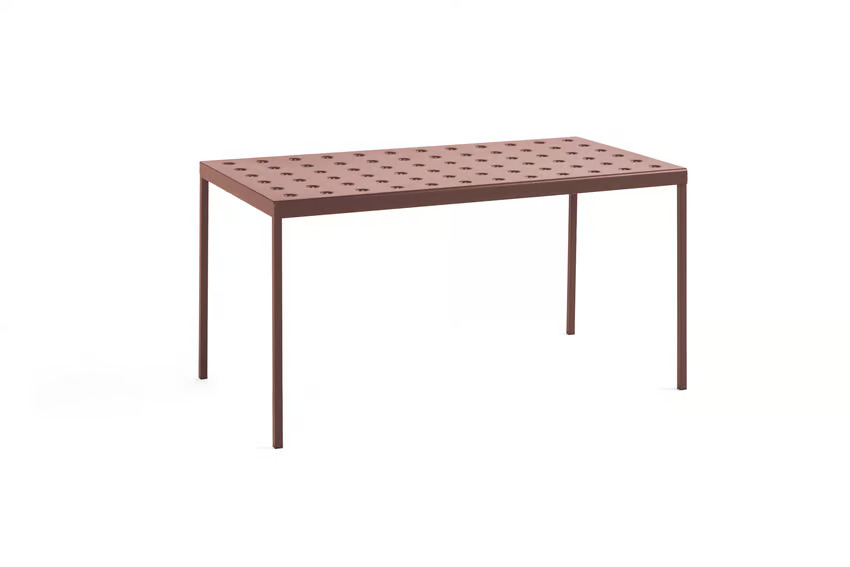 A Balcony asztal, Ronan & Erwan Bouroullec tervezésében a HAY számára, egy kültéri, téglalap alakú étkezőasztal, amelyet egyszerű, szögletes vonalak és a felületeken található lyukak jellemeznek. Ezek a lyukak nemcsak a design székekkel harmonizálnak, hanem erősítik is az asztallapot. Az irodai asztal ideális választás különféle terekbe, legyen szó kis erkélyekről, teraszokról, kertekről vagy nagyobb szabadtéri helyszínekről. A modern asztalok közé tartozó Balcony porszórt acélból készült, kültéri alapozóval a maximális szilárdság és tartósság érdekében. Több színváltozatban elérhető, mint például antracit, vasvörös, sivatagi zöld, sötét erdőzöld és kréta bézs. A kávézó székekkel is jól kombinálható, így sokoldalú megoldást kínál különböző vendéglátóipari egységek számára.