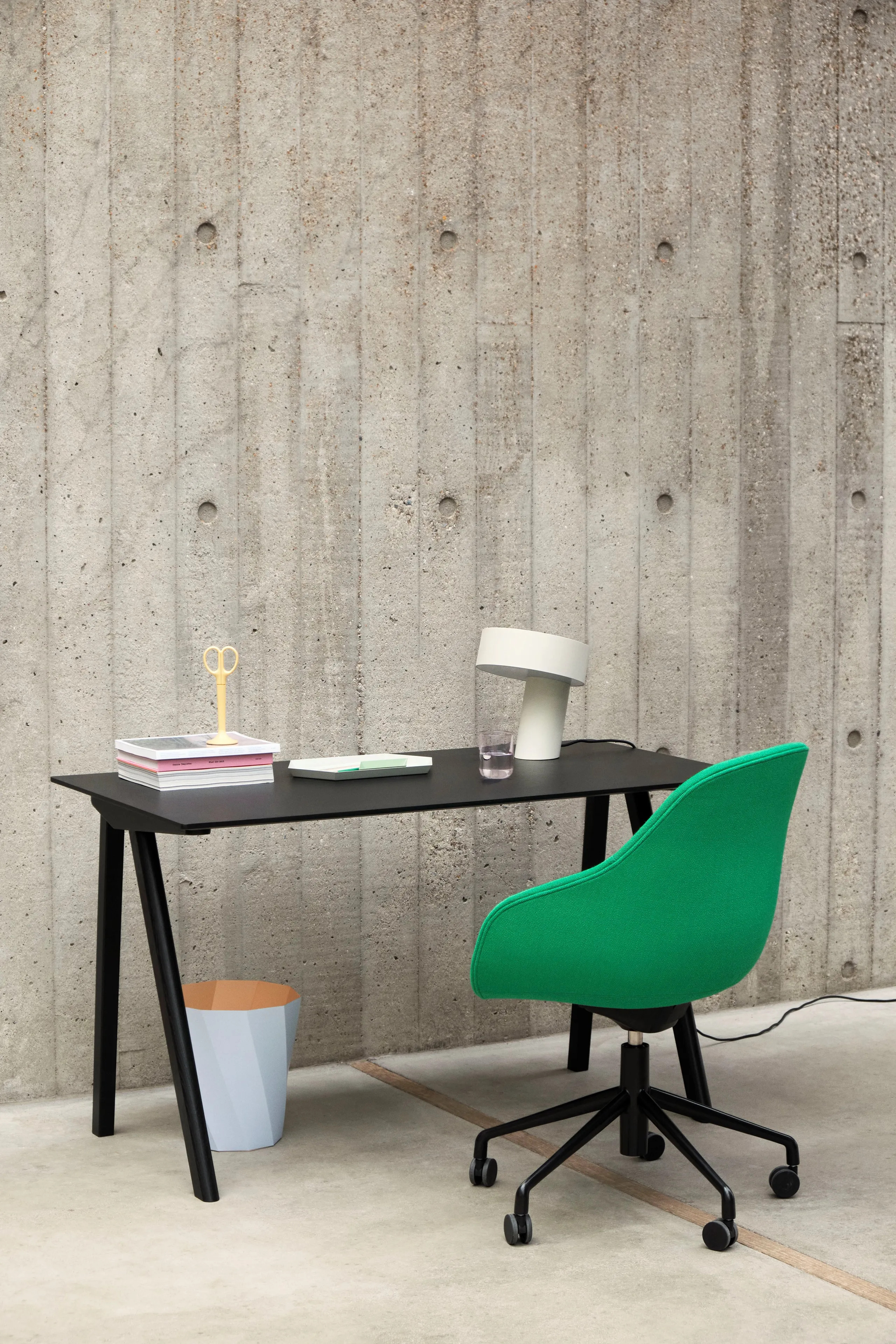 A CPH 90 ötvözi a klasszikus íróasztal esztétikáját a modern formatervezéssel. A Bouroullec testvérek által tervezett aszimmetrikus lábak és a letisztult asztallap egy funkcionális, kompakt és rendezett megjelenést eredményeznek. Ez az étkezőasztal ideális választás irodai, oktatási és vendéglátóipari környezetekbe, valamint otthoni munkavégzéshez. A keret tömör tölgyfából készült, míg a rétegelt lemez asztallap különböző fa vagy linóleum kivitelben érhető el. Az asztallap 18 mm vastag, laminált, linóleum vagy furnér felülettel, ferde éllel, amely harmonizál a keret színével. A lábak szögletesek, tömör fából készültek, és rejtett, állítható lábakkal rendelkeznek, amelyek akár 12 mm-rel is meghosszabbíthatók az egyenetlen felületeken való stabilitás érdekében.