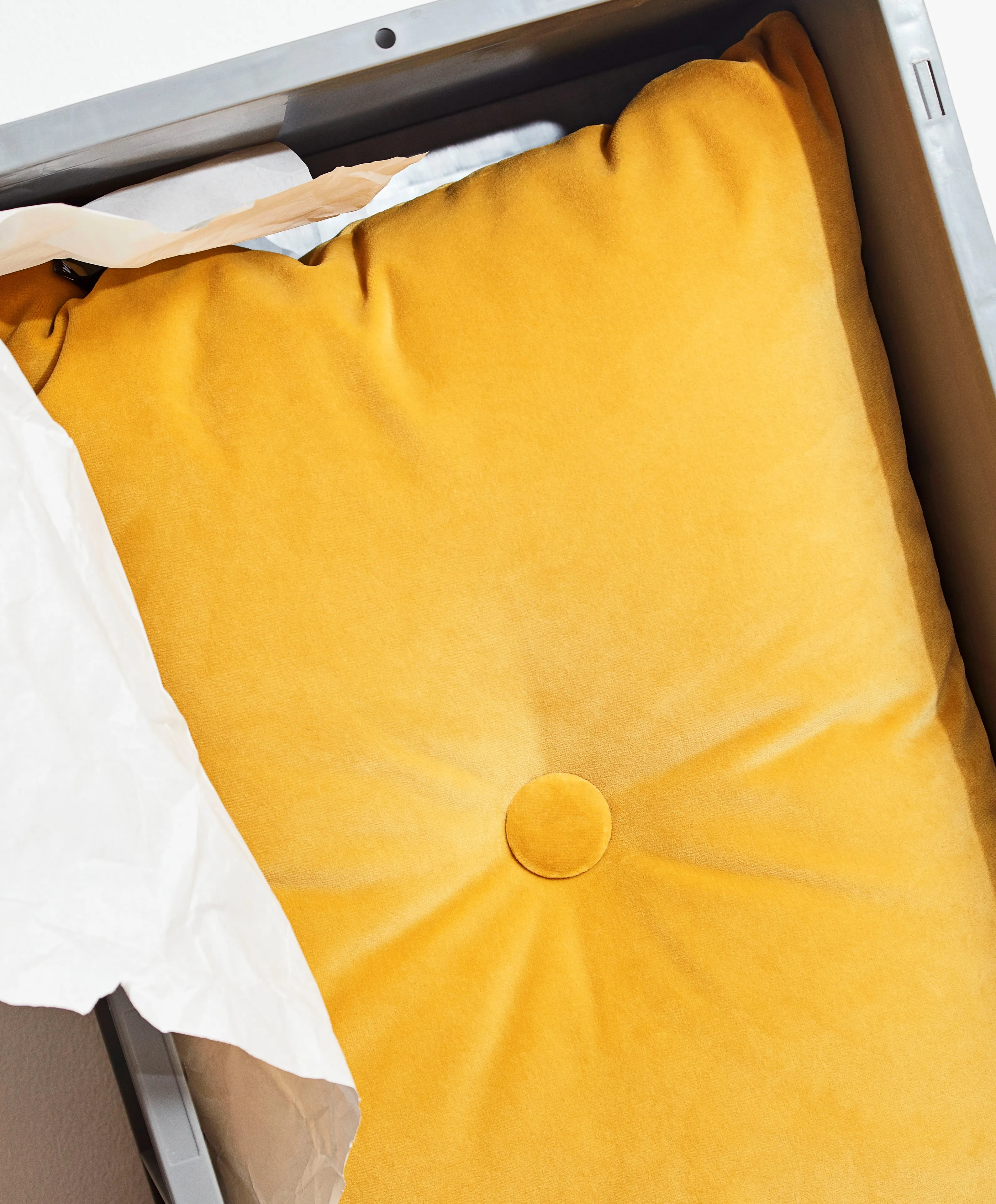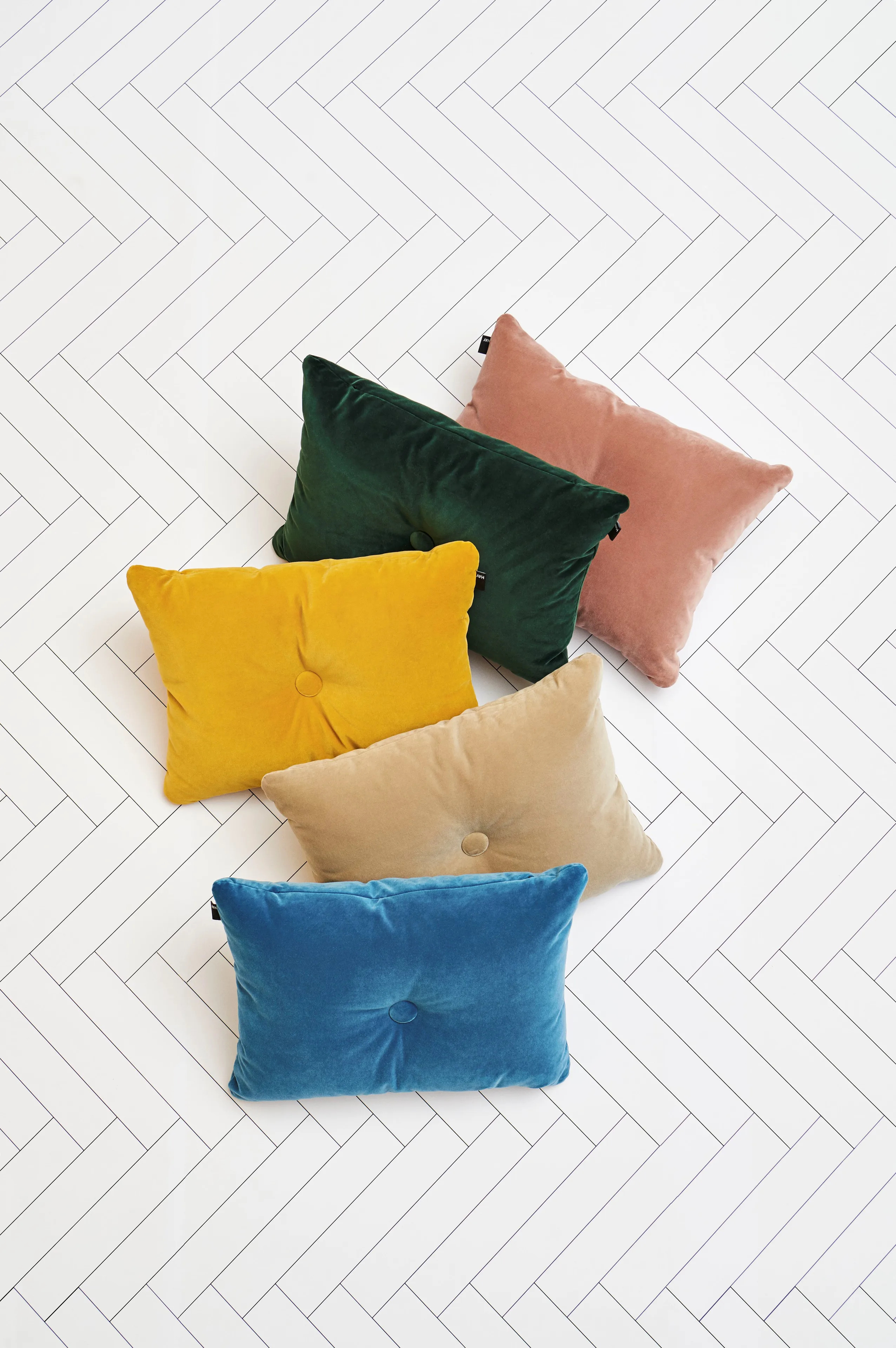 A DOT CUSHION SOFT párna színes, fedett gombjaival vált a modern dizájn kedvencévé. A Kvadrat gyapjúban gazdag keverékeiből készült, amely gazdag színválasztékot és textúrát biztosít, valamint kiemelkedő tartósságot. Két formában kapható, egy vagy két gombbal. Csak vegytisztítással tisztítható. A huzat pamutból, a töltet poliészterből készült. Ideális választás konyhai szőnyeg, otthoni textíliák és dekor szőnyegek kiegészítőjeként szállodák, panziók, éttermek, középületek, cégek, kiskereskedők, lakberendezők, belsőépítészek, szállodai menedzserek és tulajdonosok számára.