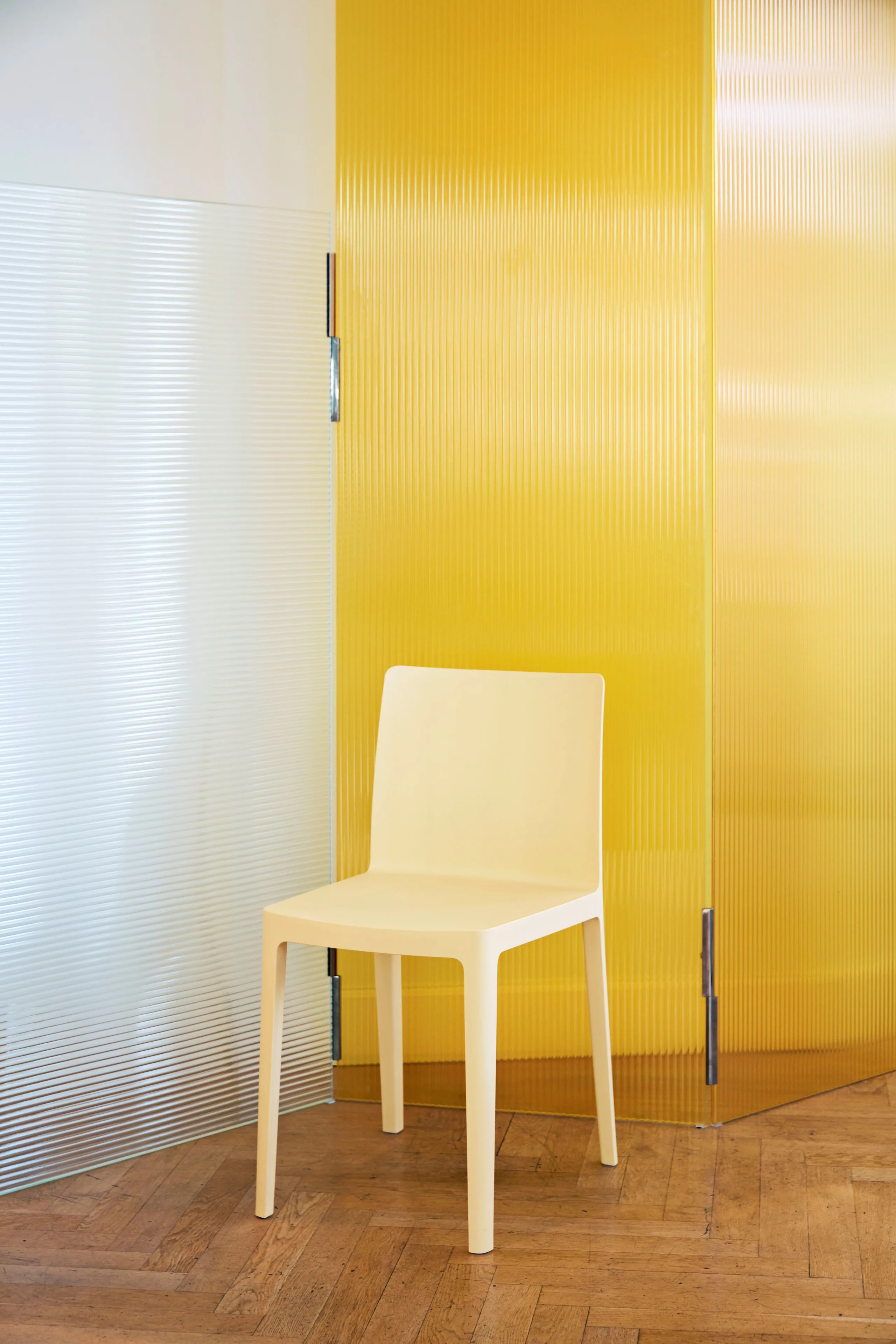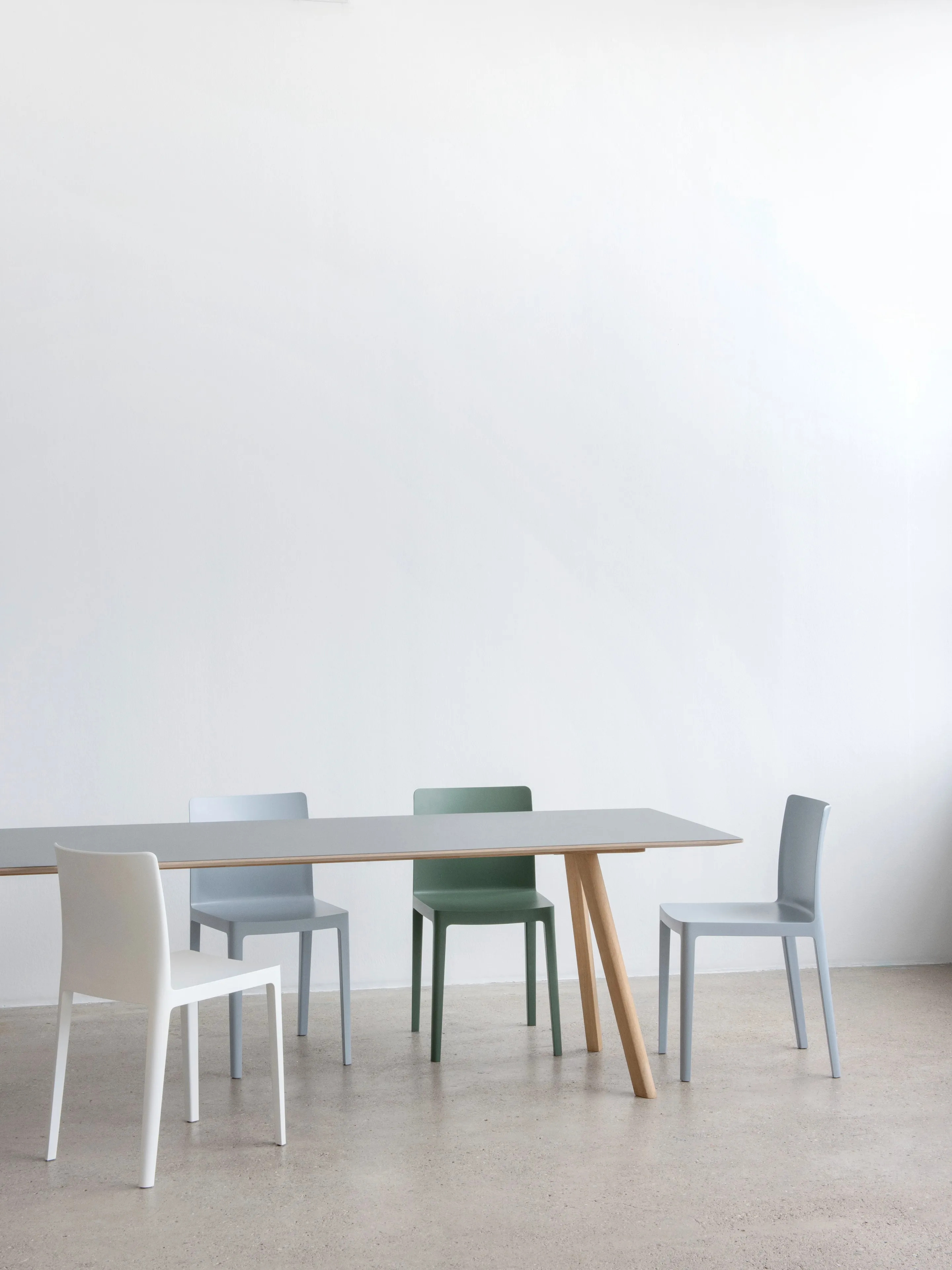 Az Élémentaire szék a Ronan és Erwan Bouroullec tervezőpáros munkájának eredménye, amely az esztétikum és a fizikai egyensúly tökéletes harmóniáját célozza meg. Az évek tapasztalatát és a legújabb technológiát ötvözve, ez a design szék robusztus, mégis finom megjelenésű. Precíz arányai és letisztult profilja révén egyedülállóan mutat, de csoportosan is erőteljes hatást kelt. Az Élémentaire a mindennapi élet igényeit kielégítve ötvözi a szépséget és az erőt. 100%-ban újrahasznosított, üvegszállal erősített polipropilénből készül, UV-álló, matt, enyhén texturált felülettel. Hat különböző színben kapható: füstös zöld, világos sárga, kékesszürke, olíva, krémfehér és antracit. Kérésre ülőpárna is elérhető, különböző színekben, gyapjúból, bőrből és vízálló kültéri textilből.