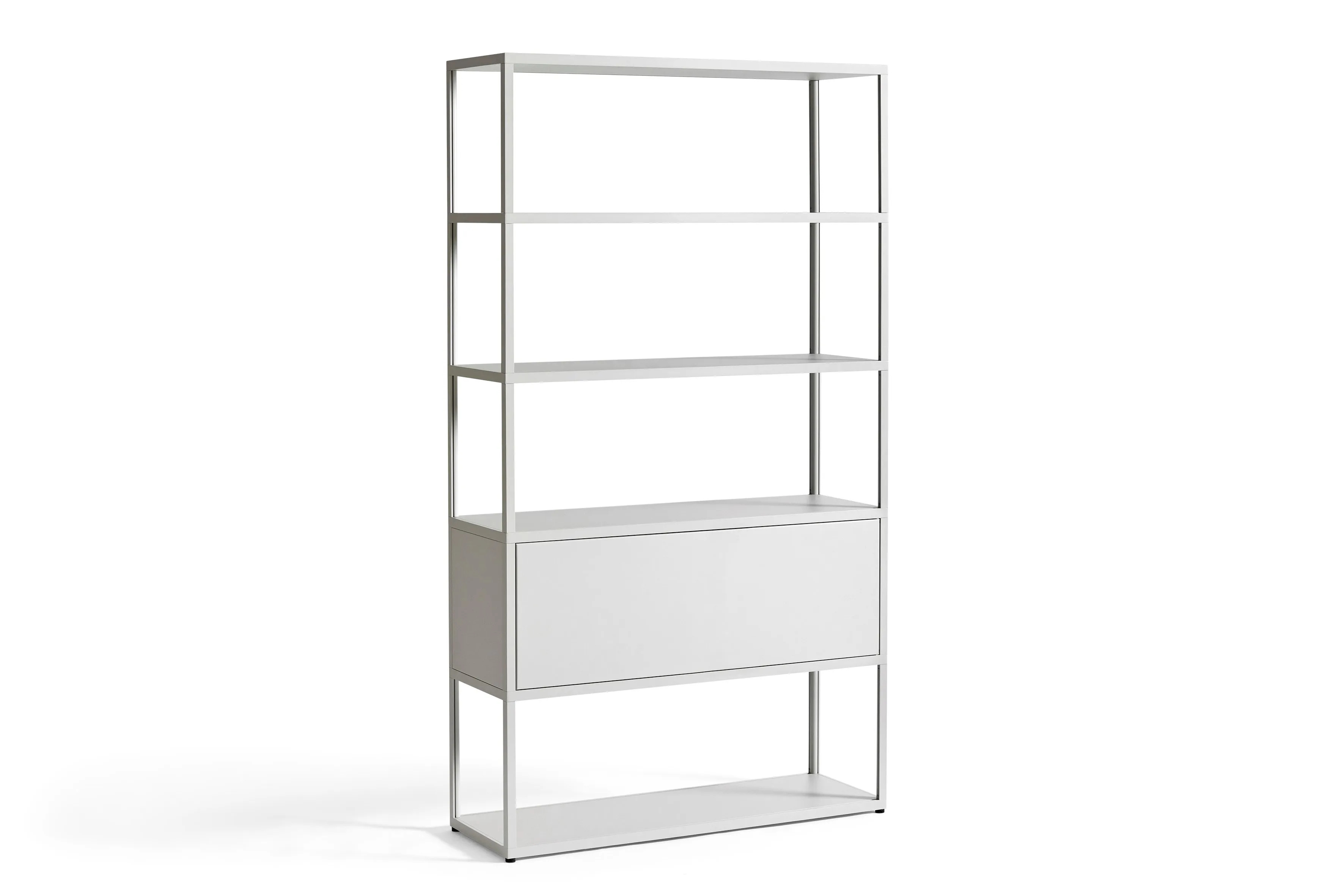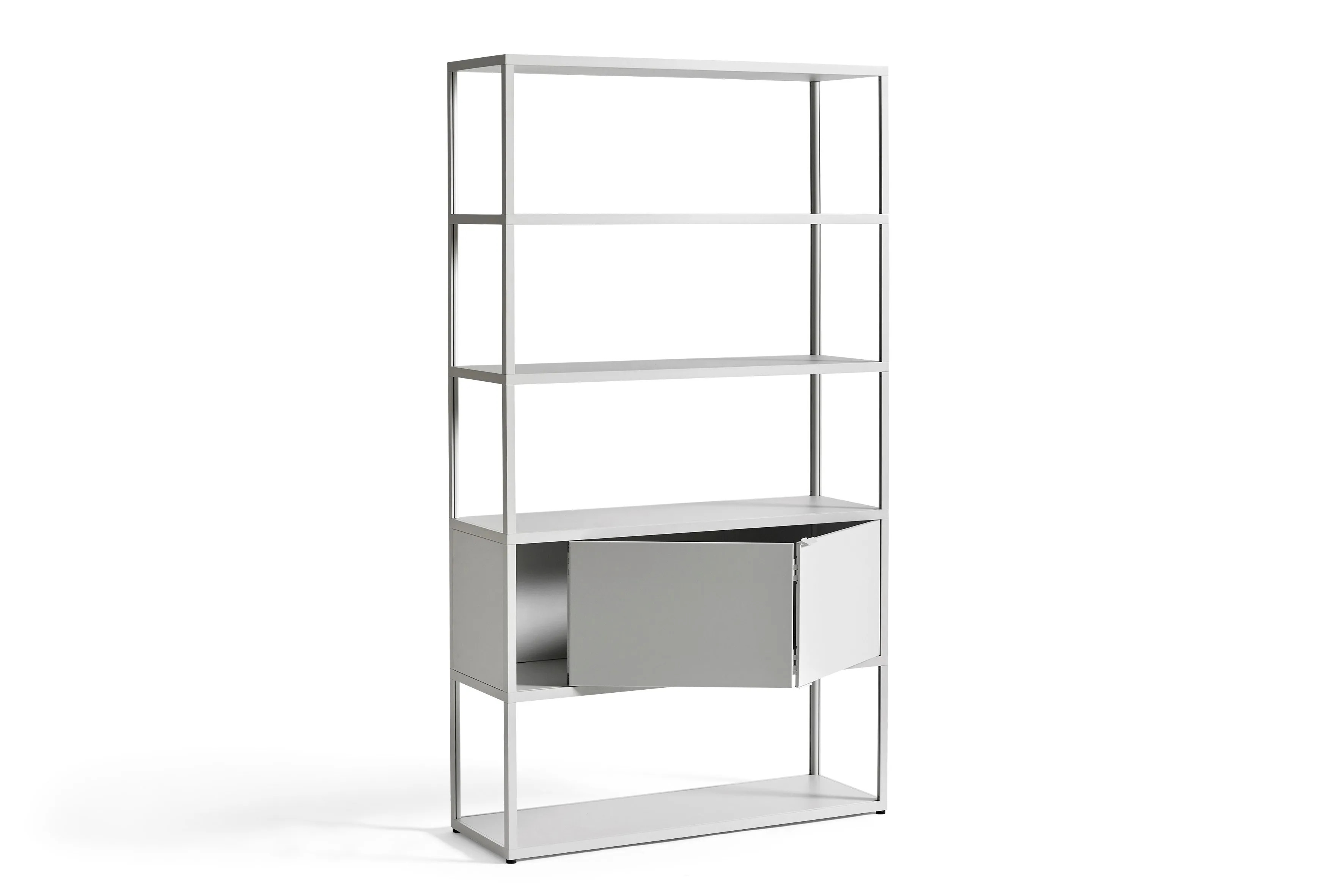 A New Order Combination 502 egy rugalmas tárolási megoldás, amely zárt és nyitott tárolótereket ötvöz. A hatpolcos rendszer funkcionális és esztétikus könyvespolc és tároló megoldást kínál irodai vagy otthoni környezetben. Az integrált polc acél ajtókkal és panelekkel rendelkezik, amelyek teljesen zárhatók, így extra biztonságot nyújtanak és megtörik a rácsrendszer egyhangúságát. Az alumínium és acél elemek különböző színváltozatokban érhetők el, és lehetőség van panelek, ajtók, tálcák és fiókok hozzáadására, hogy testre szabható legyen a megjelenés és a funkcionalitás, végtelen kombinációkat és alkalmazásokat teremtve.
