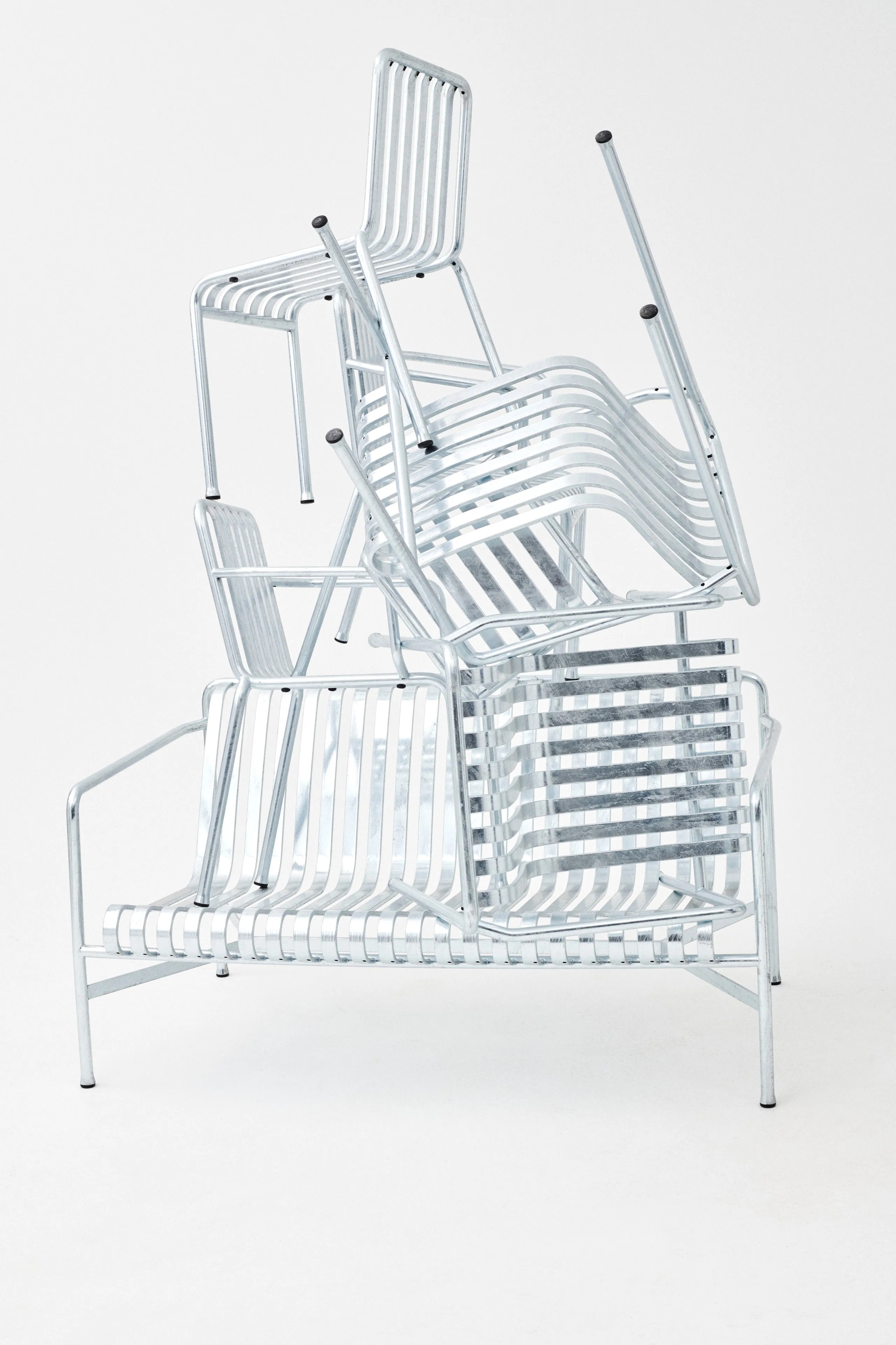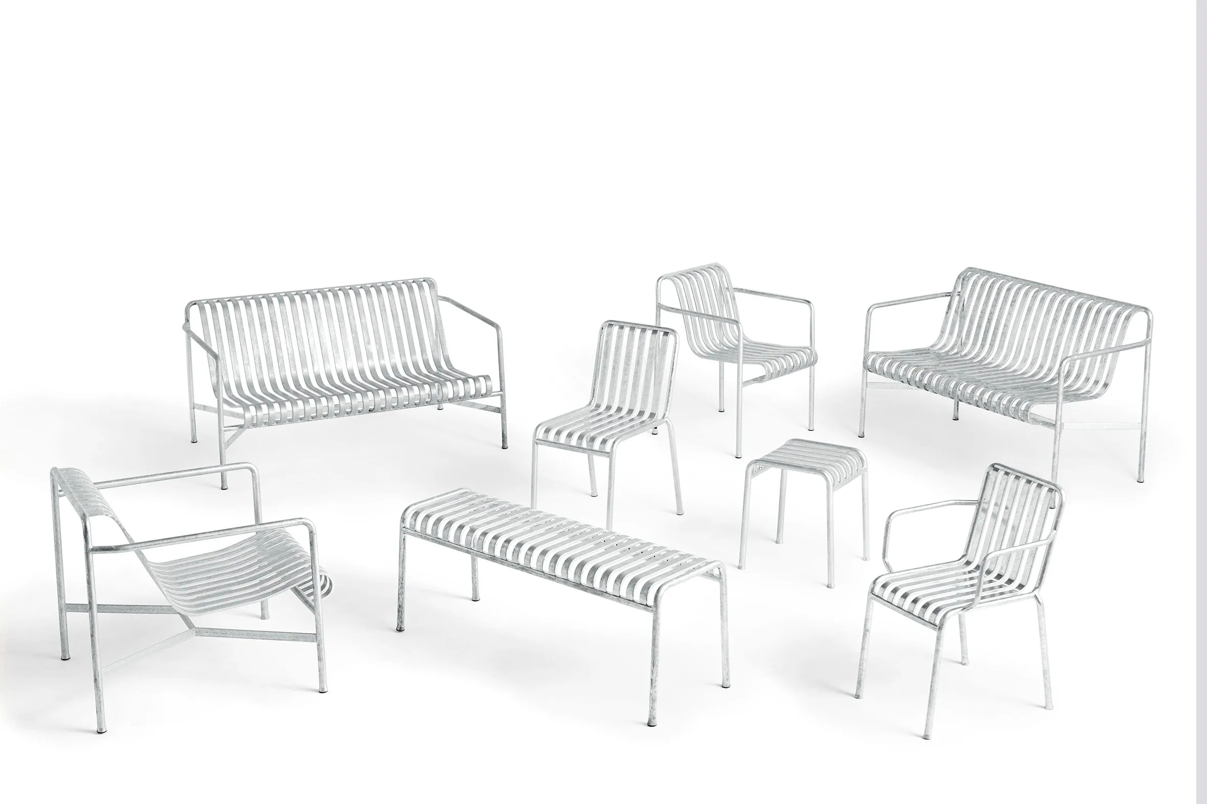 A francia testvérpár, Ronan és Erwan Bouroullec által tervezett Palissade kollekció a HAY számára készült, porfestett vagy forrón horganyzott acélból. A szimmetrikus geometria elvén alapuló kollekció vizuális egyszerűséget és alapvető erőt sugároz. Szín- és formavilága révén harmonikusan illeszkedik mind a természetes, mind a városi környezetbe. Időtálló kialakítása miatt hosszú távú használatra tervezték, és az évek során egyre szebbé válik. A kollekció sokféle környezetben alkalmazható, például kávézókban, éttermekben, kertekben, teraszokon és erkélyeken. A kültéri ülőgarnitúra kétkomponensű bevonattal rendelkezik: alapozó és kültéri porbevonat, amely védelmet nyújt a korrózió ellen. Különböző kivitelekben elérhető: antracit, égkék, olíva, vasvörös porfestett acél és forrón horganyzott acél.