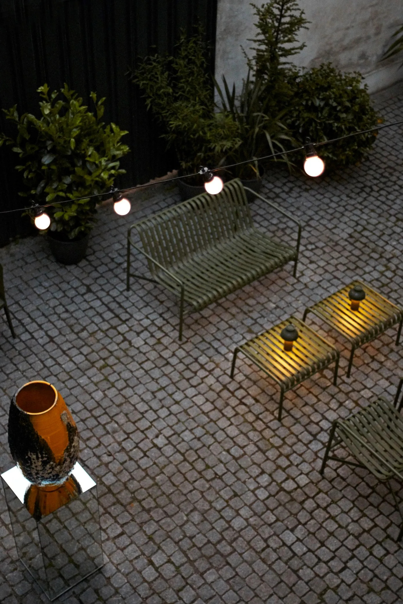 A Ronan és Erwan Bouroullec által tervezett Palissade kollekció a HAY számára készült, porfestett vagy forrón horganyzott acélból. A szimmetrikus geometria elvén alapuló tervezés biztosítja a vizuális egyszerűséget és a tartósságot. A kollekció szín- és formavilága lehetővé teszi, hogy harmonikusan illeszkedjen mind a természetes, mind a városi környezetbe. Időtálló kialakítása révén a kültéri ülőgarnitúra az évek során még szebbé válik. Ideális választás kávézók, éttermek, szállodák, kertek, teraszok és erkélyek számára. A kerti bútorok kétkomponensű bevonattal rendelkeznek: alapozó és kültéri porbevonat, amely védelmet nyújt a korrózió ellen. Különböző kivitelben elérhető: antracit, égkék, olíva, vasvörös porfestett acél, valamint forrón horganyzott acél.