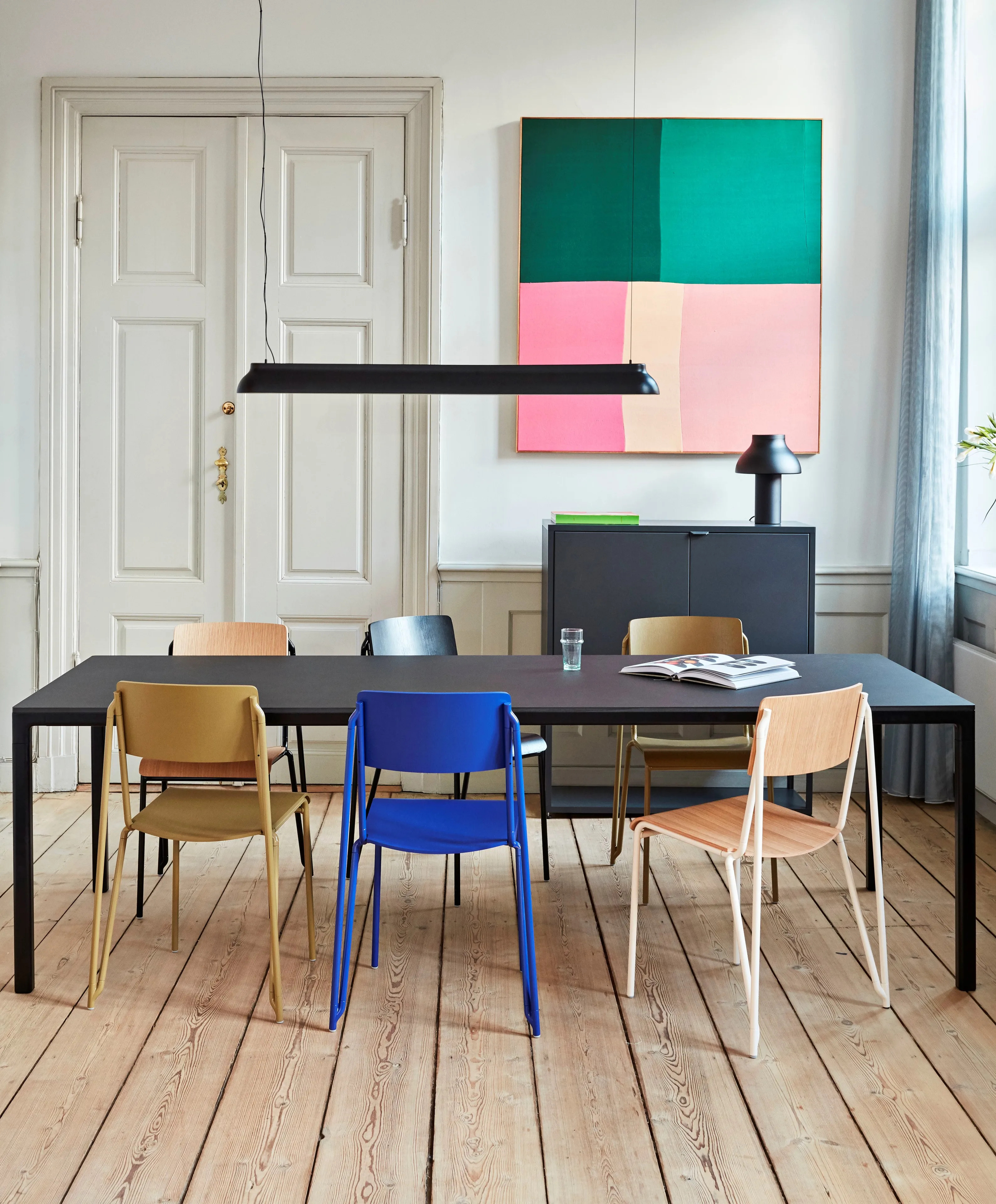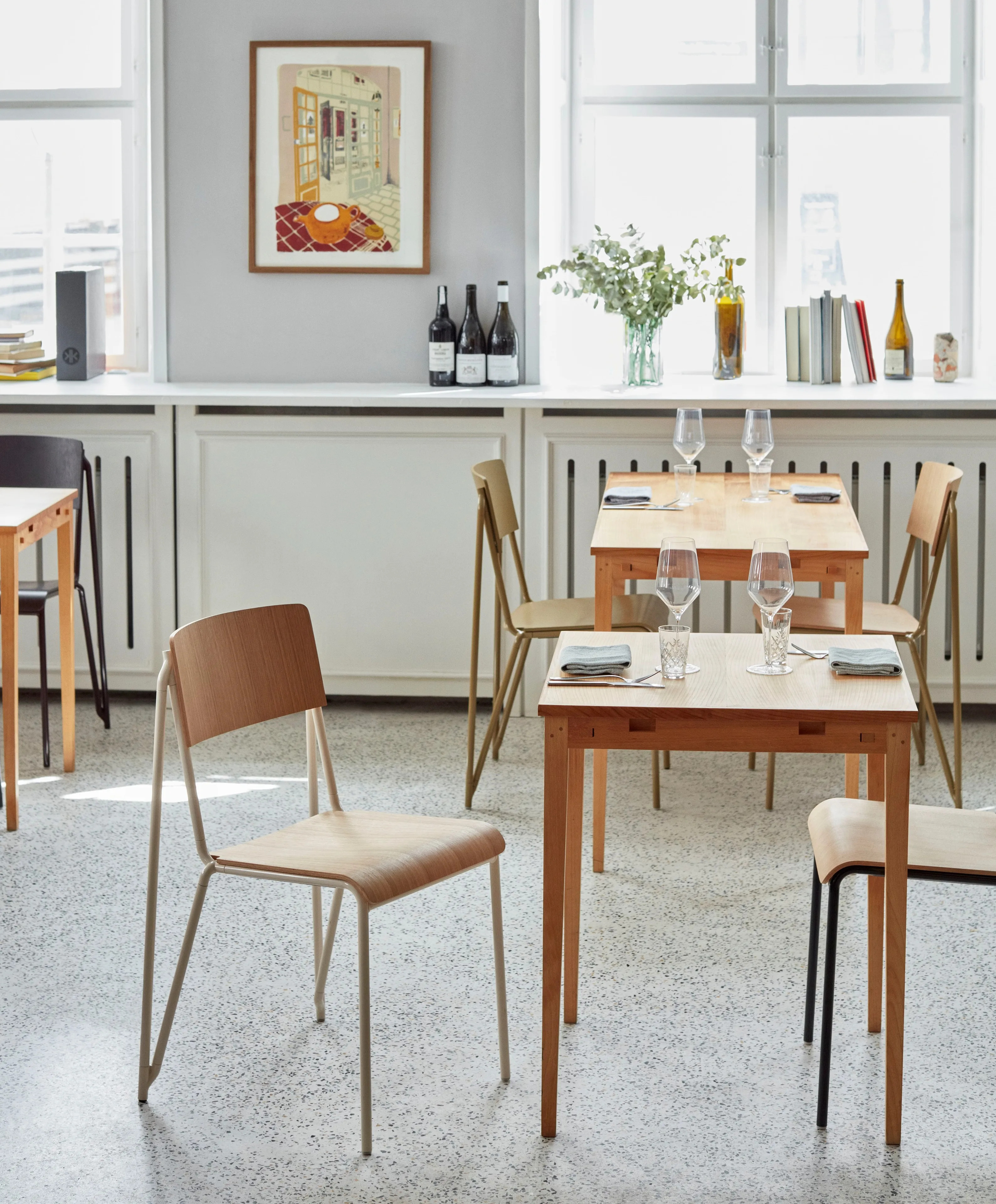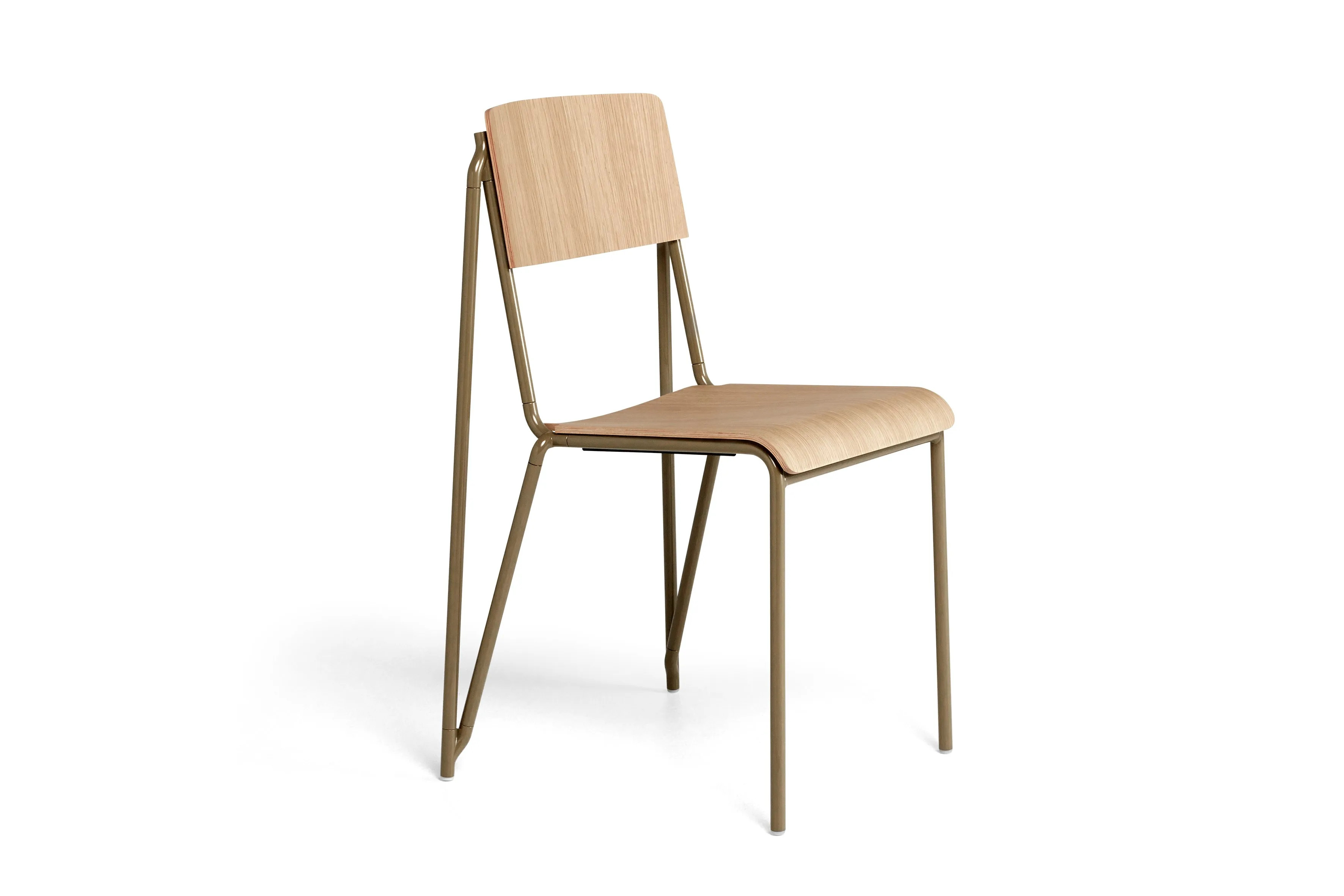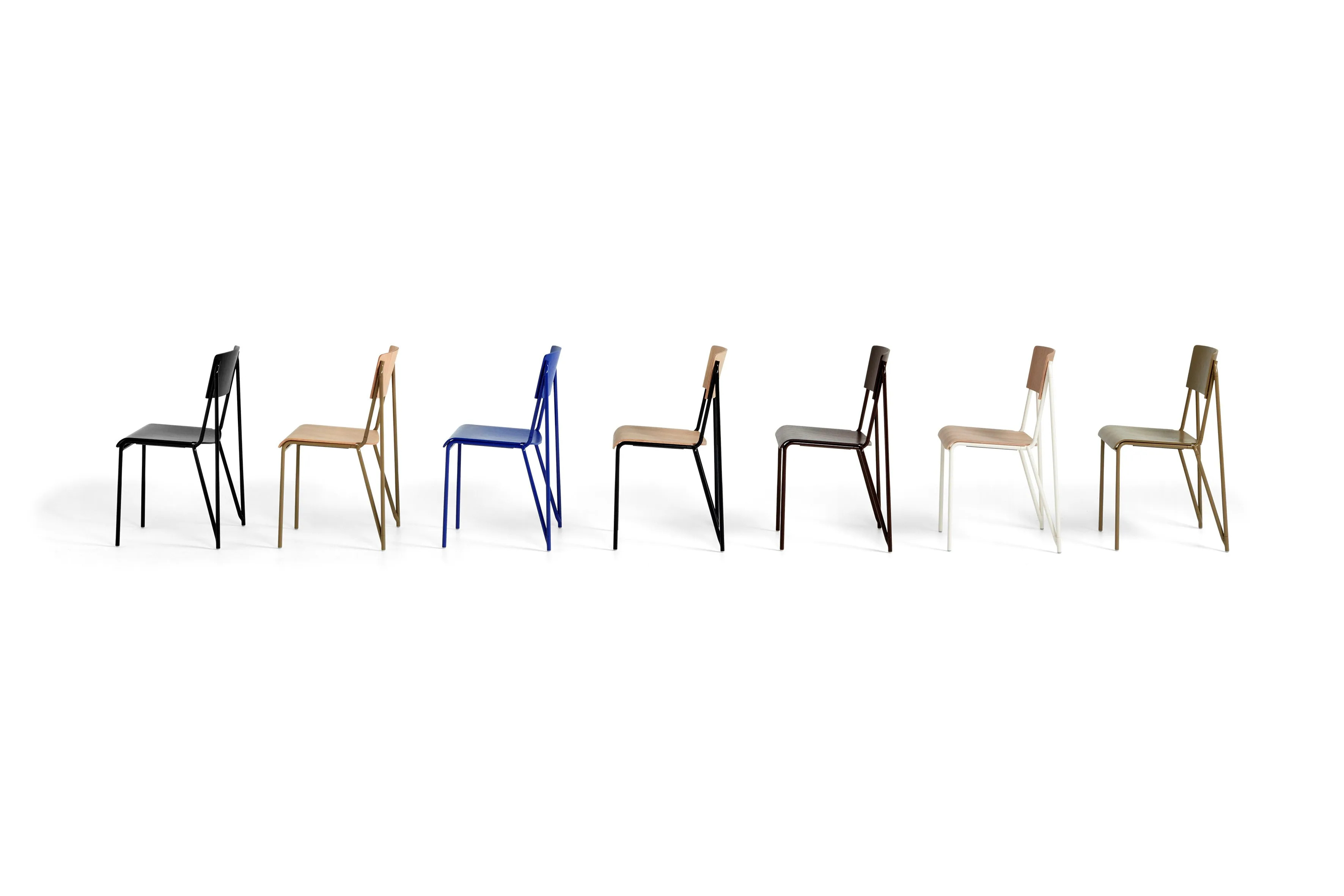 Daniel Rybakken nyolcéves tervezési folyamatának eredménye a Petit Standard, amely a precizitás és a részletek iránti elkötelezettség jegyében született. Az étkezőasztalok és irodai asztalok környezetébe is illeszkedő design székek célja a magas fokú rakásolhatóság, amely a szék esztétikáját is gazdagítja. Az öntött alumíniumból és acélcsövekből készült, háromdimenziós háromszög formájú könnyű váz geometrikus sziluettet kölcsönöz, amit a tölgy furnér ülés és háttámla természetes melegsége ellensúlyoz. A magas háttámla és ívelt ülés kényelmet biztosít, míg a merev csövek a szék szilárdságát és rakásolhatóságát optimalizálják, ideálissá téve kávézók, irodák és oktatási intézmények számára. Az ülés és háttámla rétegelt lemezből készült, belső bükk, felső és alsó tölgy furnérral. Öt különböző színben és felületben kapható, valamint öt különböző színű porszórt acél vázzal.
