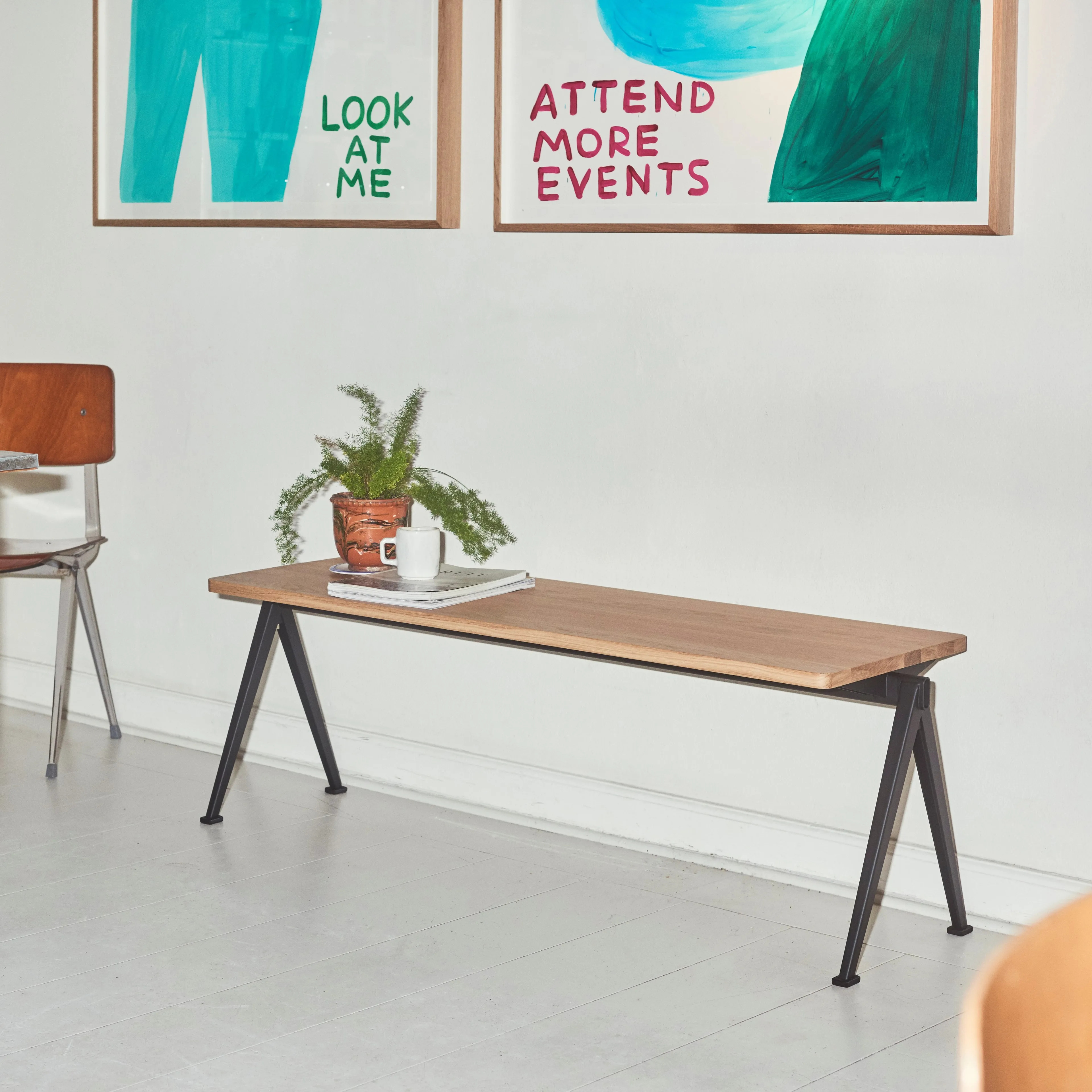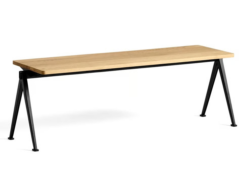 A Pyramid Bench 11 a sokoldalúság, könnyedség és tartósság jegyében készült, ideális választás irodai asztalnak, étkezőasztalnak vagy modern asztalok kiegészítőjeként. Az 1950-es években Wim Rietveld által tervezett, majd a HAY és az Ahrend által újraindított kollekció a lemezacél innovatív felhasználásával vált híressé. A kollekció darabjai, köztük ez a pad, a minimális anyaghasználat és az egyszerű szerkezet révén könnyen mozgathatók, így ideálisak oktatási intézmények, konferenciatermek és vendéglátóipari egységek számára. A pad acéllemez alapja és téglalap alakú tölgyfa teteje harmonikus egységet alkot. Különböző fa- és alapfelületekben elérhető, így kávézó székek és design székek mellett is jól mutat. A pad 21 mm vastag tömör tölgy asztallappal és 2 mm hajlított acéllemez lábakkal rendelkezik, háromféle alapfelülettel: fekete, bézs és paradicsompiros porszórt acél.