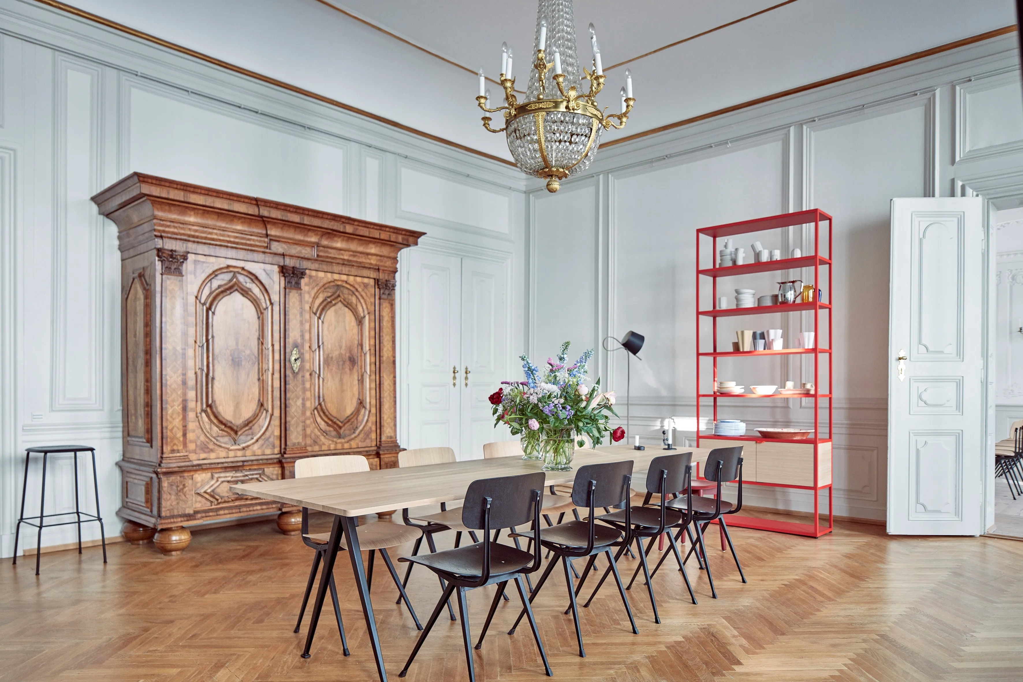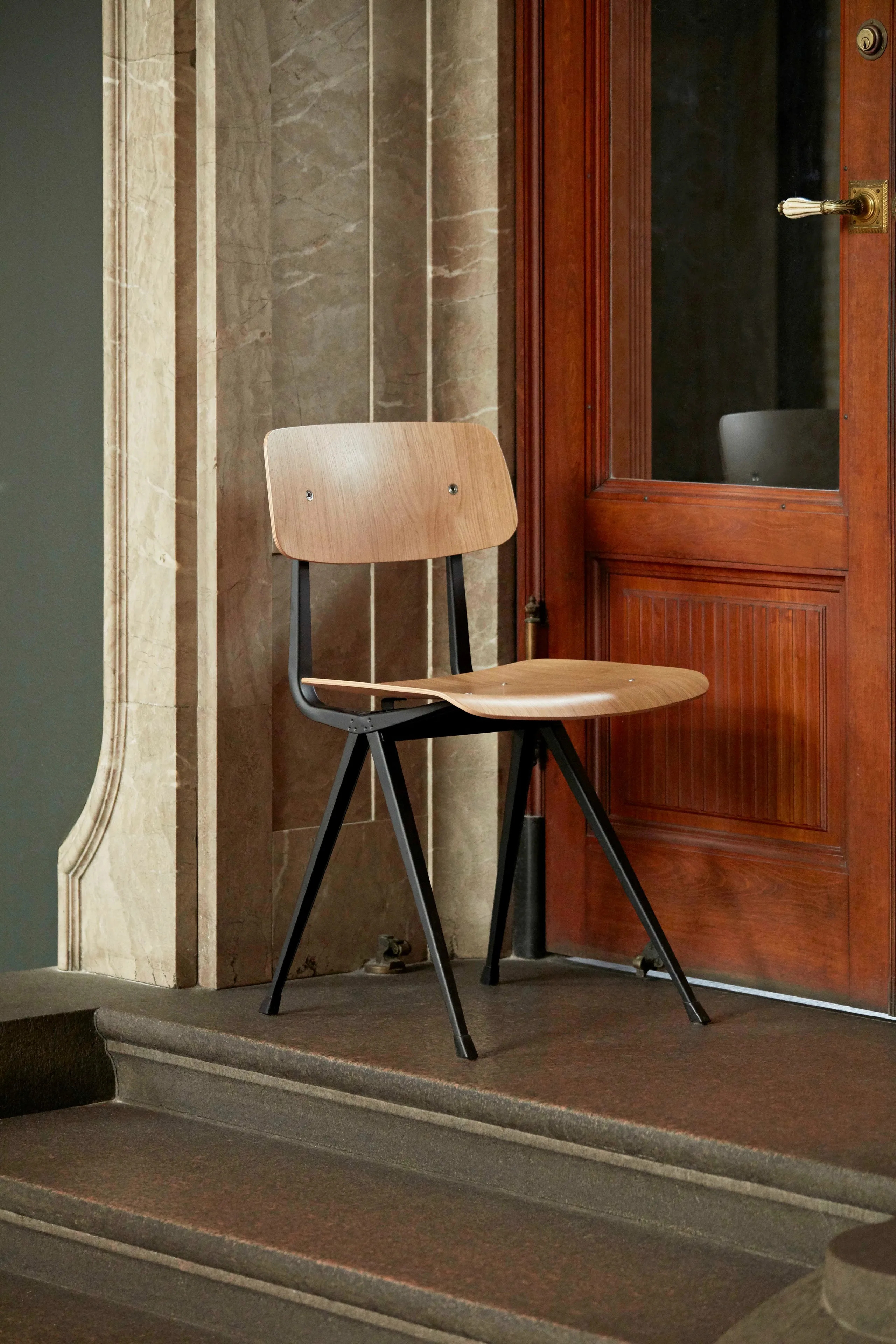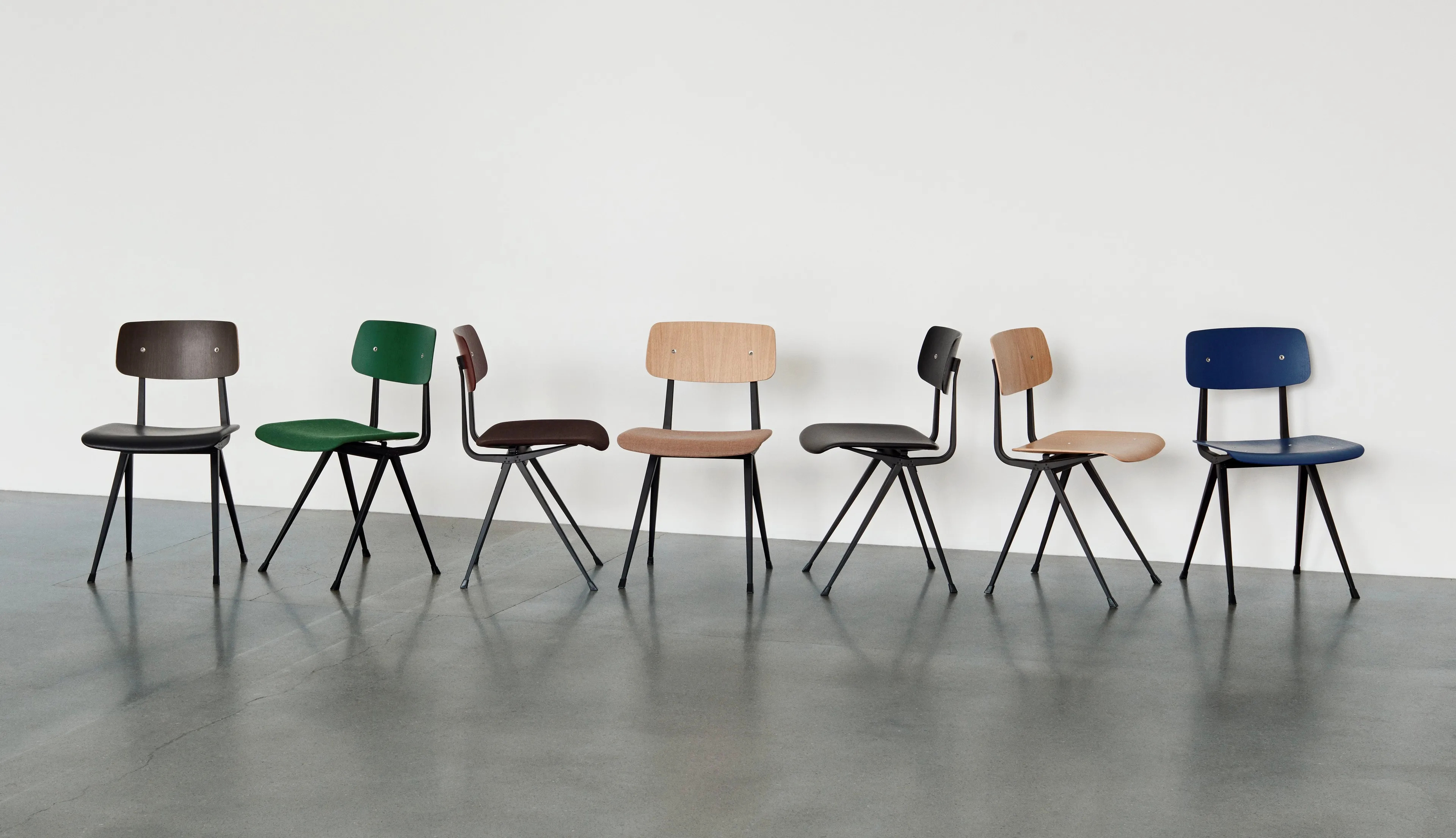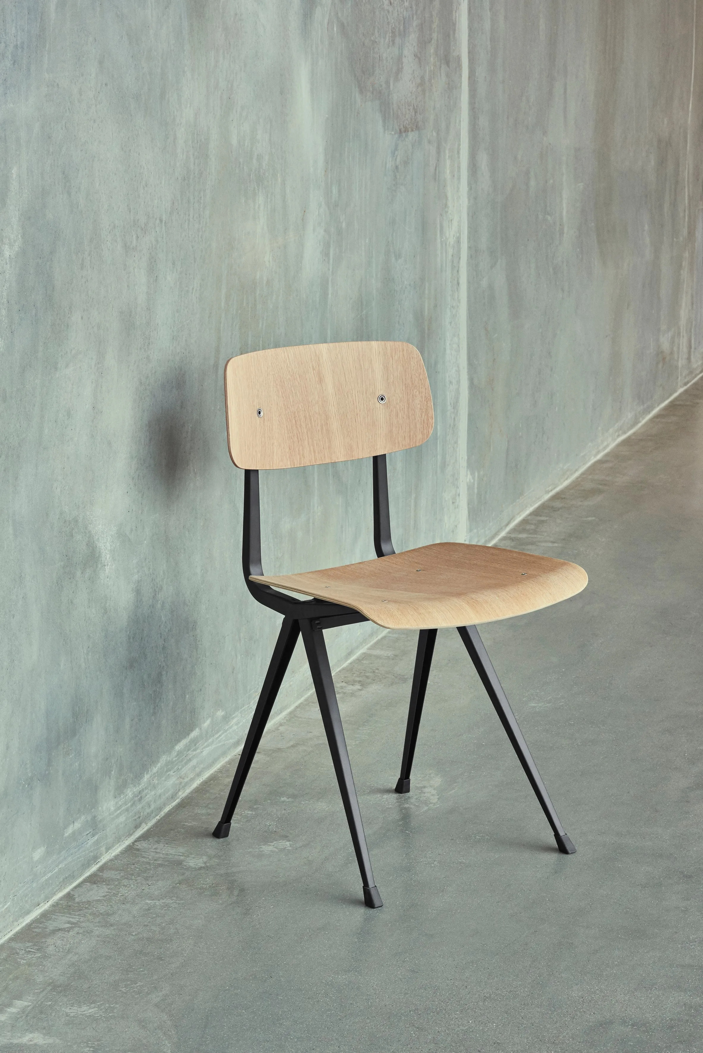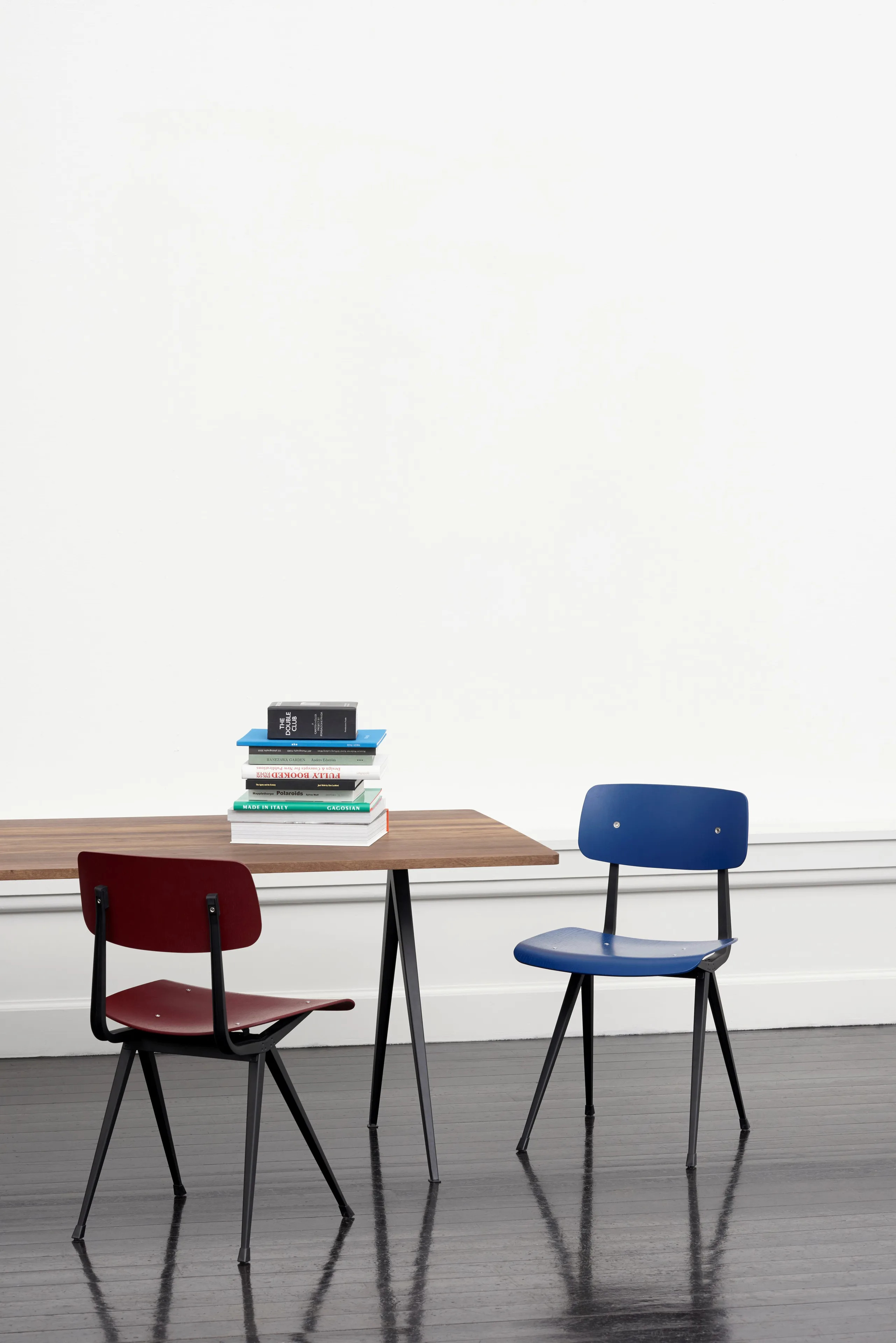 A Result szék acél és fa kombinációjával készült, ideális választás irodai asztalokhoz, étkezőasztalokhoz és modern asztalokhoz. Az ülőfelület és háttámla formázott rétegelt lemezből készült, tölgy furnérral borítva, nyolc különböző színben elérhető, mint például fekete, bézs, sötétkék, erdőzöld, sötét téglavörös, füstölt és lakkozott tölgy. Az acéllemez alap háromféle kivitelben kapható: fekete, bézs és paradicsompiros porszórt acél. A Friso Kramer és Wim Rietveld által az 1950-es években tervezett szék a HAY és Ahrend együttműködésével került újra piacra. A Result szék rugalmassága, könnyedsége és erőssége miatt ideális választás kávézó székekhez, design székekhez, valamint különféle közösségi és magánterekben való használatra.