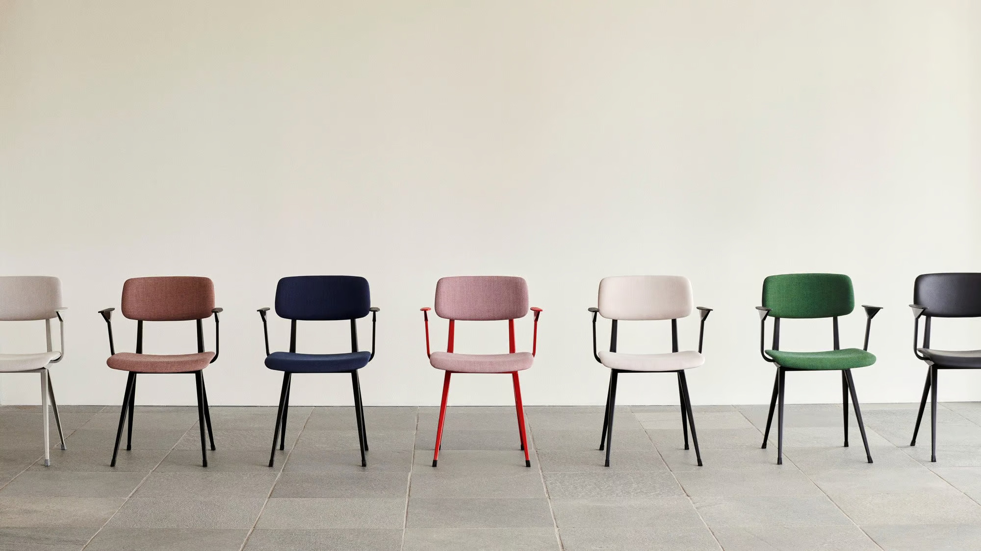 A Result szék vékony acéllemez alapja tölgyfa ülőrésszel és háttámlával rendelkezik, megőrizve a maximális rugalmasságot, könnyedséget és szilárdságot. Az eredetileg Friso Kramer és Wim Rietveld által az 1950-es években tervezett kollekciót a HAY és az Ahrend újraélesztette. Különböző fa felületek és alap színek közül választhat, valamint széles textil- és bőrülés opciók állnak rendelkezésre. A Result szék erőssége és sokoldalúsága miatt ideális választás étkezőasztalokhoz, irodai asztalokhoz, modern asztalokhoz, valamint kávézó székekhez, így számos köz- és magánterületen alkalmazható.