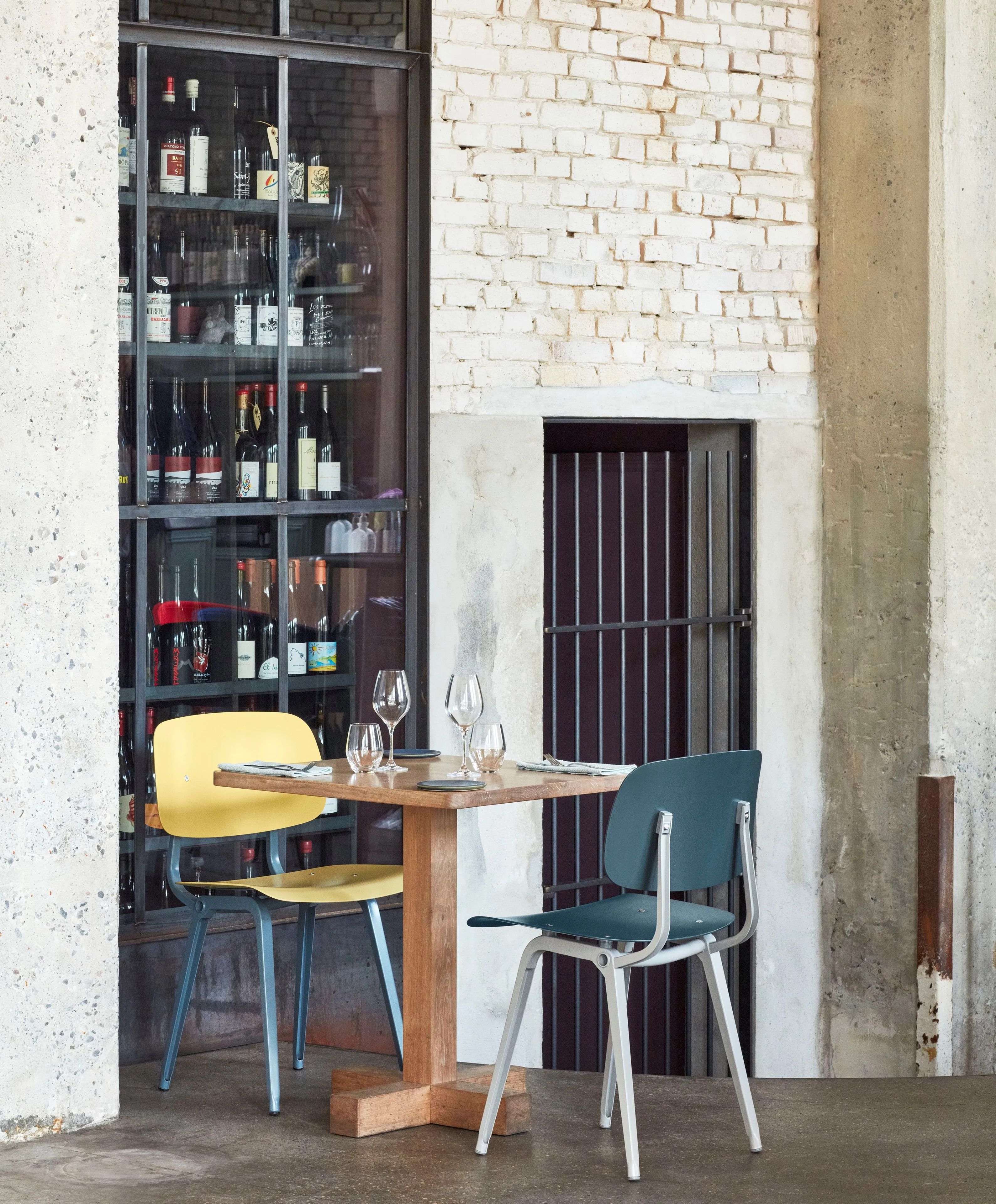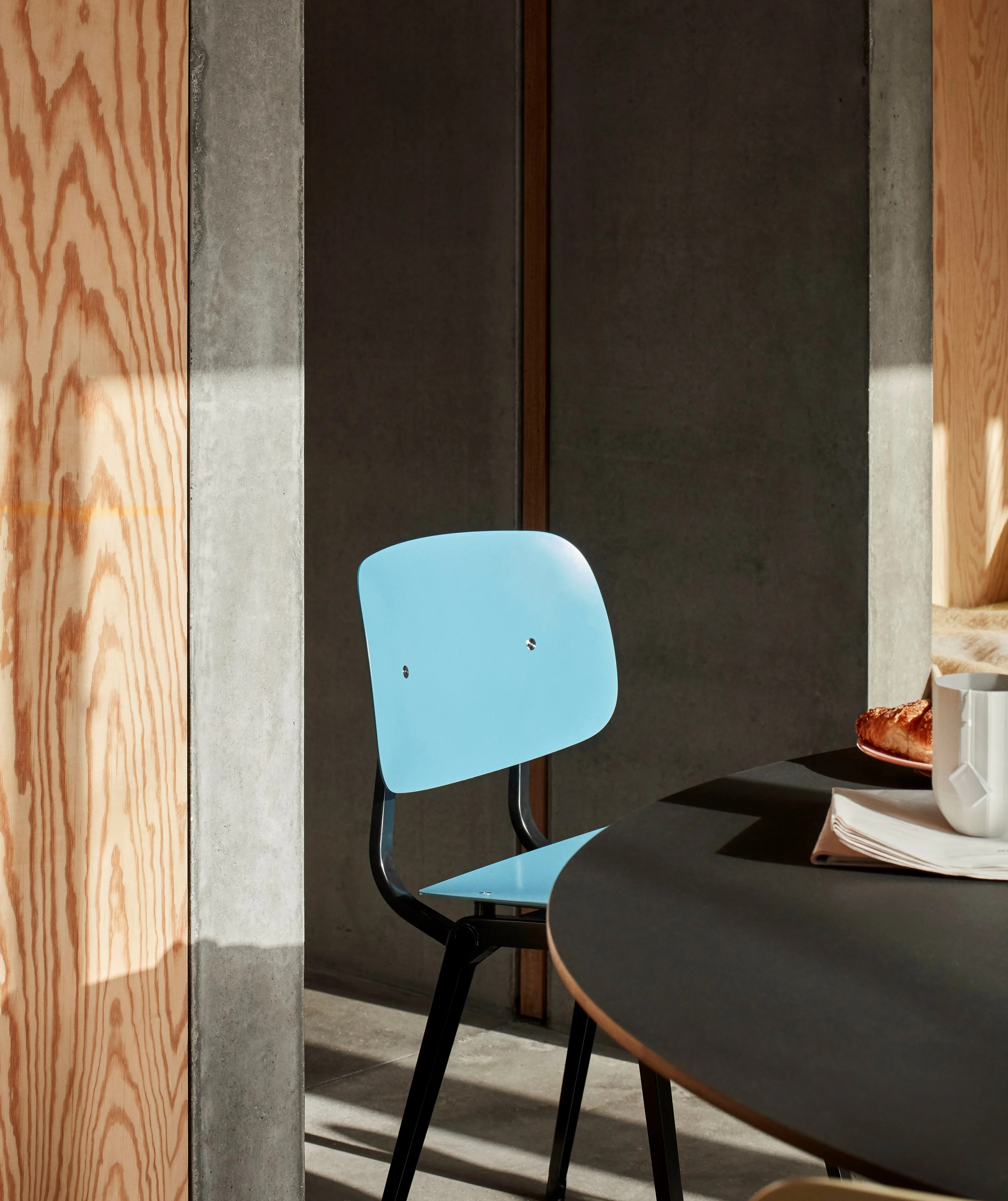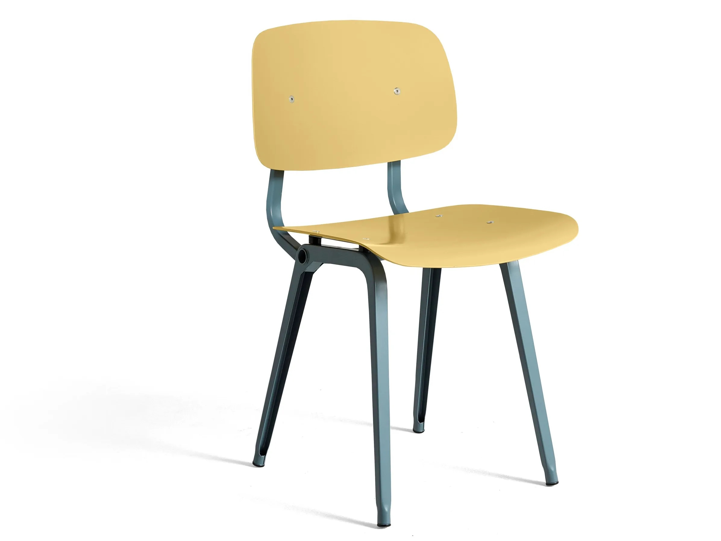 A Revolt szék, amelyet eredetileg Friso Kramer tervezett az 1950-es években az Ahrendnél, most a HAY és az Ahrend közös újraindításával érhető el. Ez a design szék a minimalista stílus megtestesítője, forradalmi kialakítással és anyaghasználattal, amely hajlított acéllemez keretet alkalmaz a hagyományos csőváz helyett. A mai reprodukció fenntartja az eredeti funkcionalitását és tartósságát, miközben fenntartható anyagokból készül, újrahasznosított és szűz ABS anyagok keverékéből, különböző színekben. Ergonomikus kialakítása dinamikus és rugalmas, aktív támogatást nyújt irodai asztaloknál, étkezőasztaloknál vagy konferenciákon. A kényelem, tartósság és időtlen esztétika miatt ideális választás irodák, éttermek, kávézók és középületek számára. Ülőfelület és háttámla: újrahasznosított és szűz ABS keveréke, 9 színben elérhető. Alap: porszórt acéllemez. Szerkezet színei: fekete, bézs, óceán.