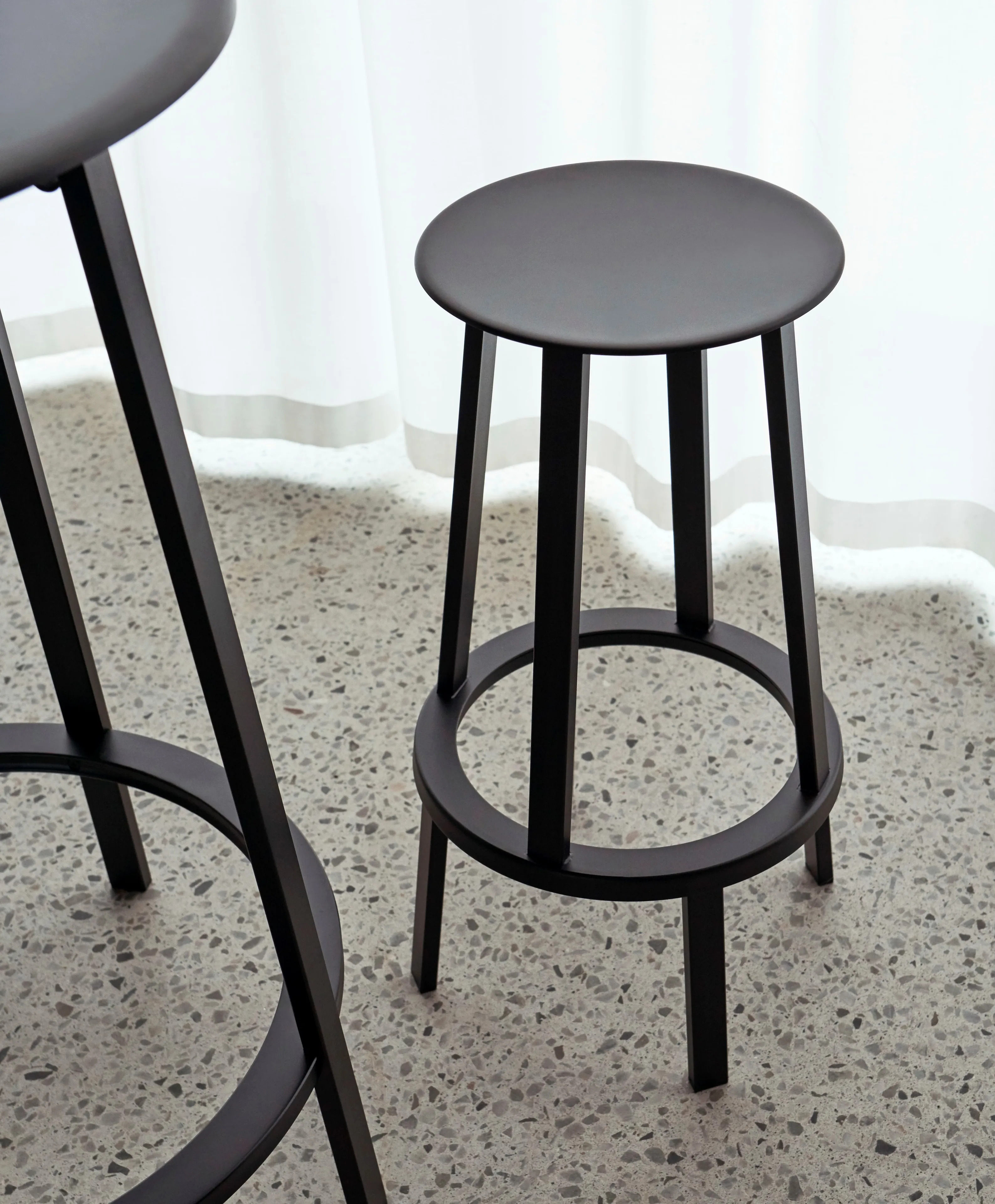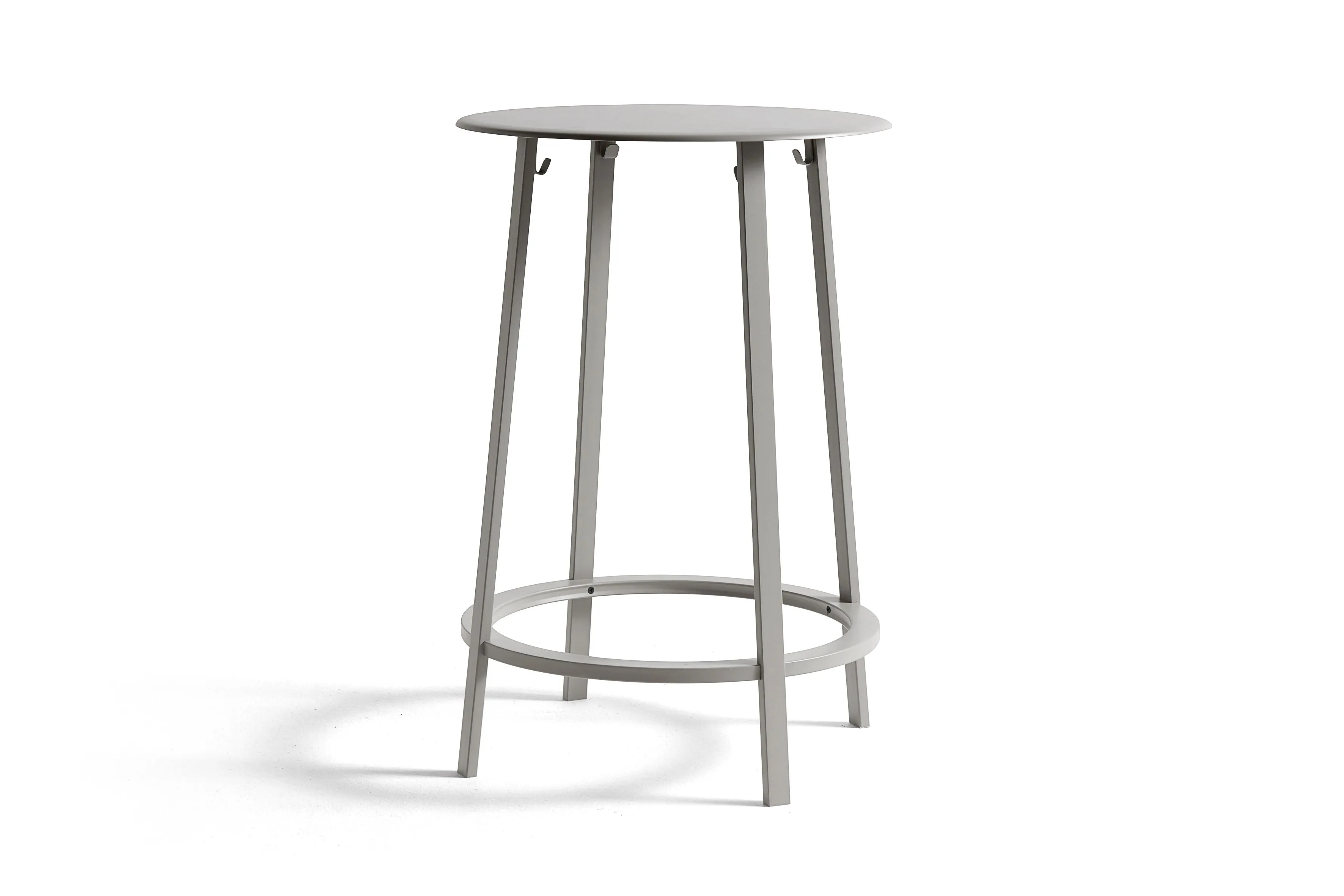 A Revolver asztal, Leon Ransmeier tervezésében, porfestett acélból készült, és a Revolver székek családjához illeszkedik. A modern asztalok közé tartozik, ívelt élekkel és szimmetrikus kialakítással. A kör alakú lábtartó kényelmes támaszt nyújt, míg a lábakon található kampók lehetővé teszik kabátok és táskák biztonságos elhelyezését. Az étkezőasztal különböző színekben kapható, így ideális választás irodák, éttermek, kávézók és más közösségi terek számára. Az asztal három színváltozatban érhető el: fekete (RAL 9005), ég szürke (RAL 7038) és vörös láva (NCS S 2570-Y80R). Állítható műanyag csúszkákkal rendelkezik, amelyek biztosítják a stabilitást és a padló védelmét.