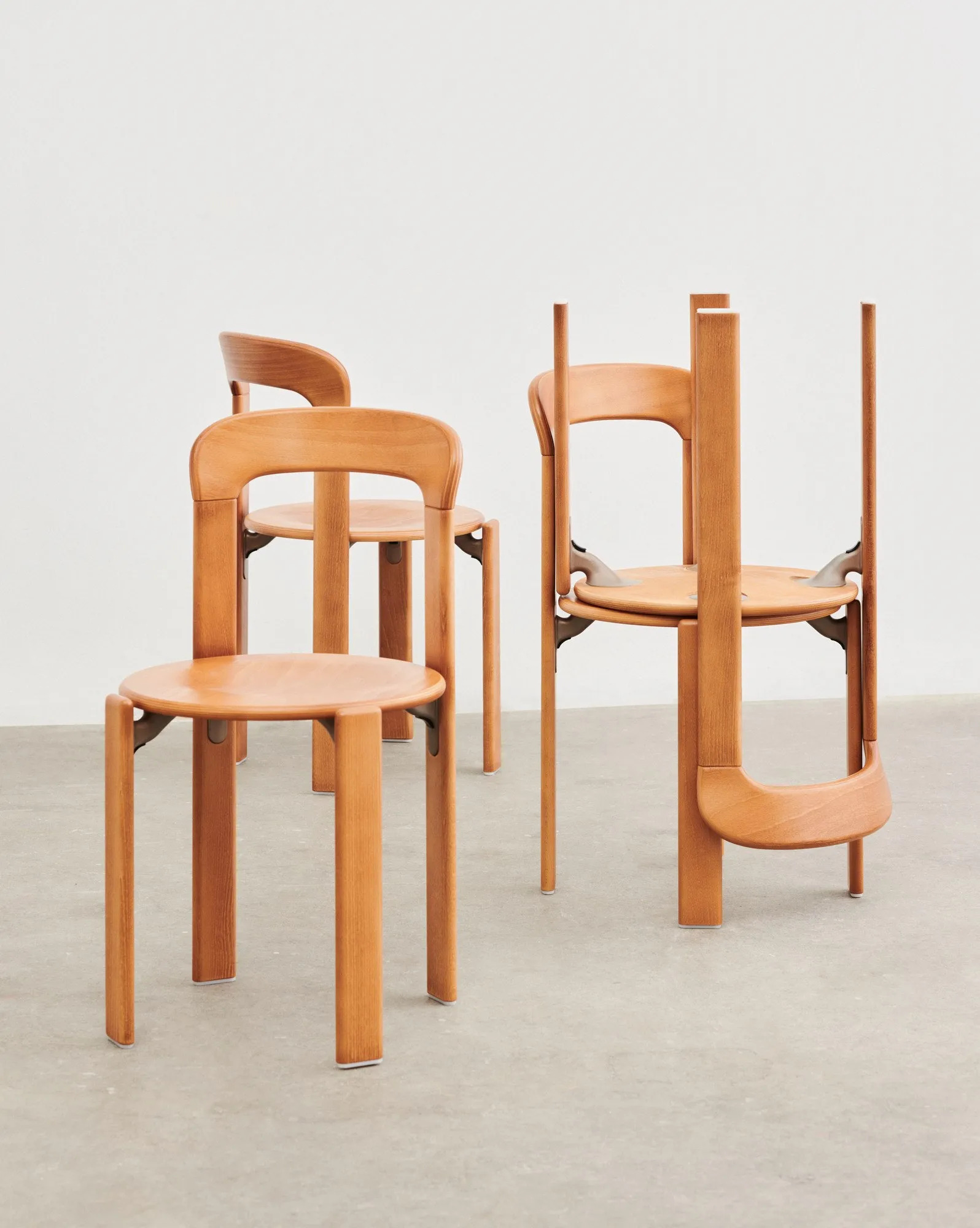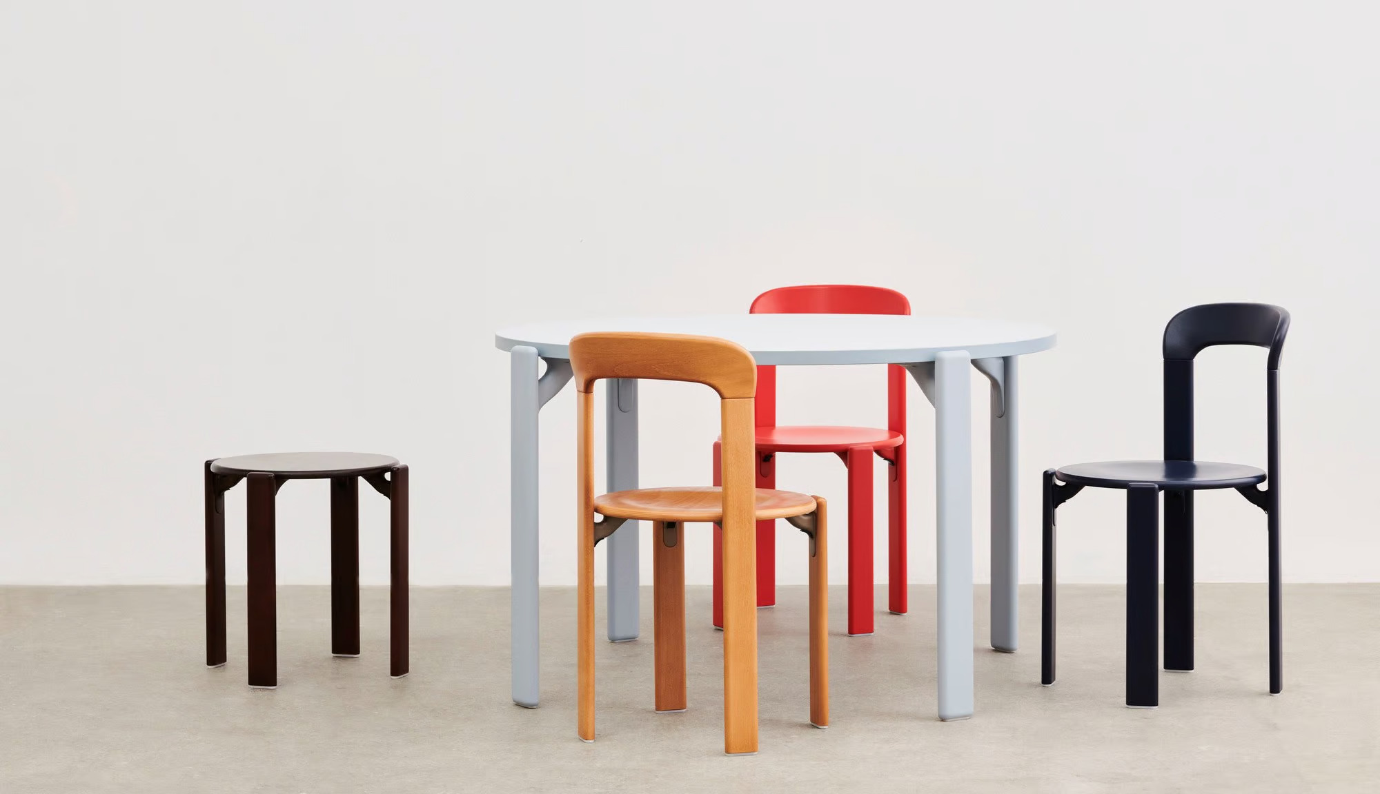A svájci tervező, Bruno Rey 1971-es eredeti Rey Kollekciója alapján a HAY és a Dietiker újraalkotta a Rey széket. A jellegzetesen lekerekített élek és ívelt háttámla révén ez volt az első szék, amelyet Dietiker egyedülálló, csavarmentes fa-fém kapcsolattal szabadalmaztatott, és az egyik legsikeresebb svájci székké vált. Masszív felépítése, tartóssága és rakásolható kialakítása időtállóvá teszi, így ideális választás különféle irodai, éttermi, kávézói, oktatási és közösségi terekben. Az ikonikus szék új méretekkel és anyagkombinációkkal lett átalakítva, hogy megfeleljen a modern életstílus igényeinek. Tömör fából készült, eredeti és új színekben, valamint kárpitozott ülőfelülettel is elérhető, a HAY által kiválasztott opciókban. Az ülés és háttámla formázott rétegelt lemezből, bükk felső és külső furnérral, a lábak tömör bükkből készültek.
