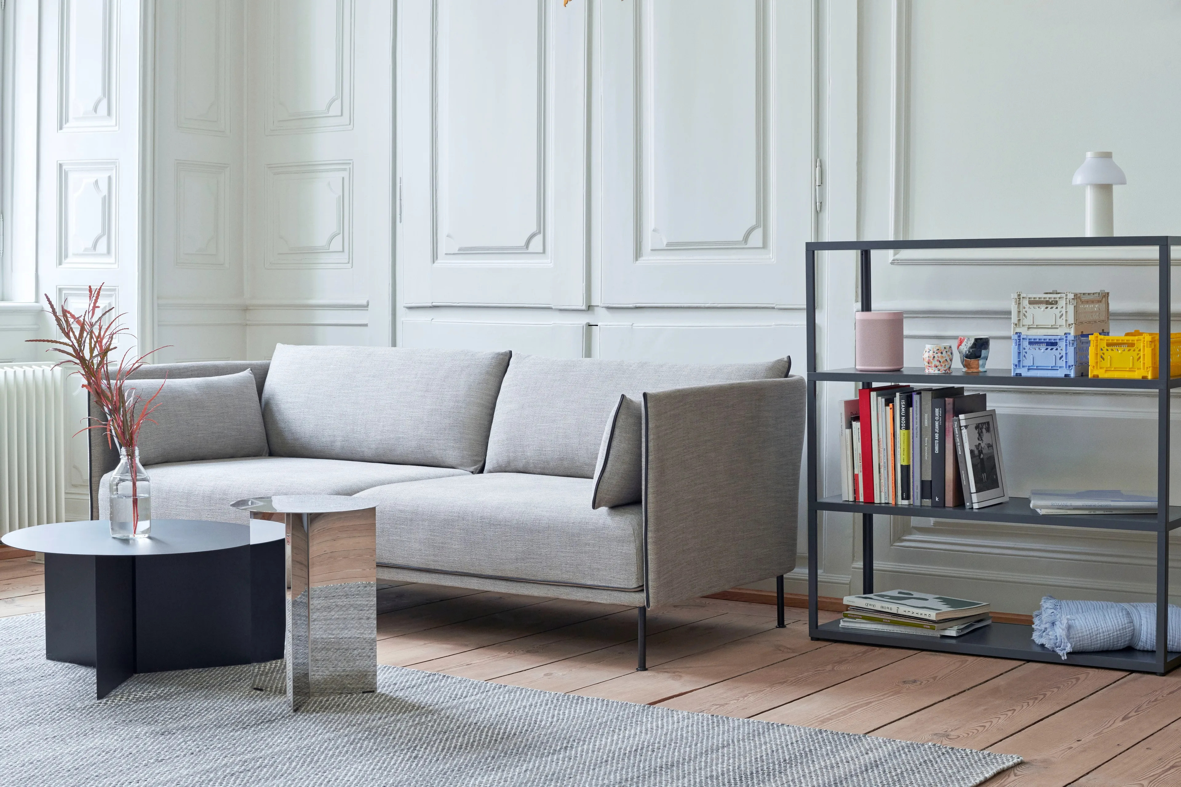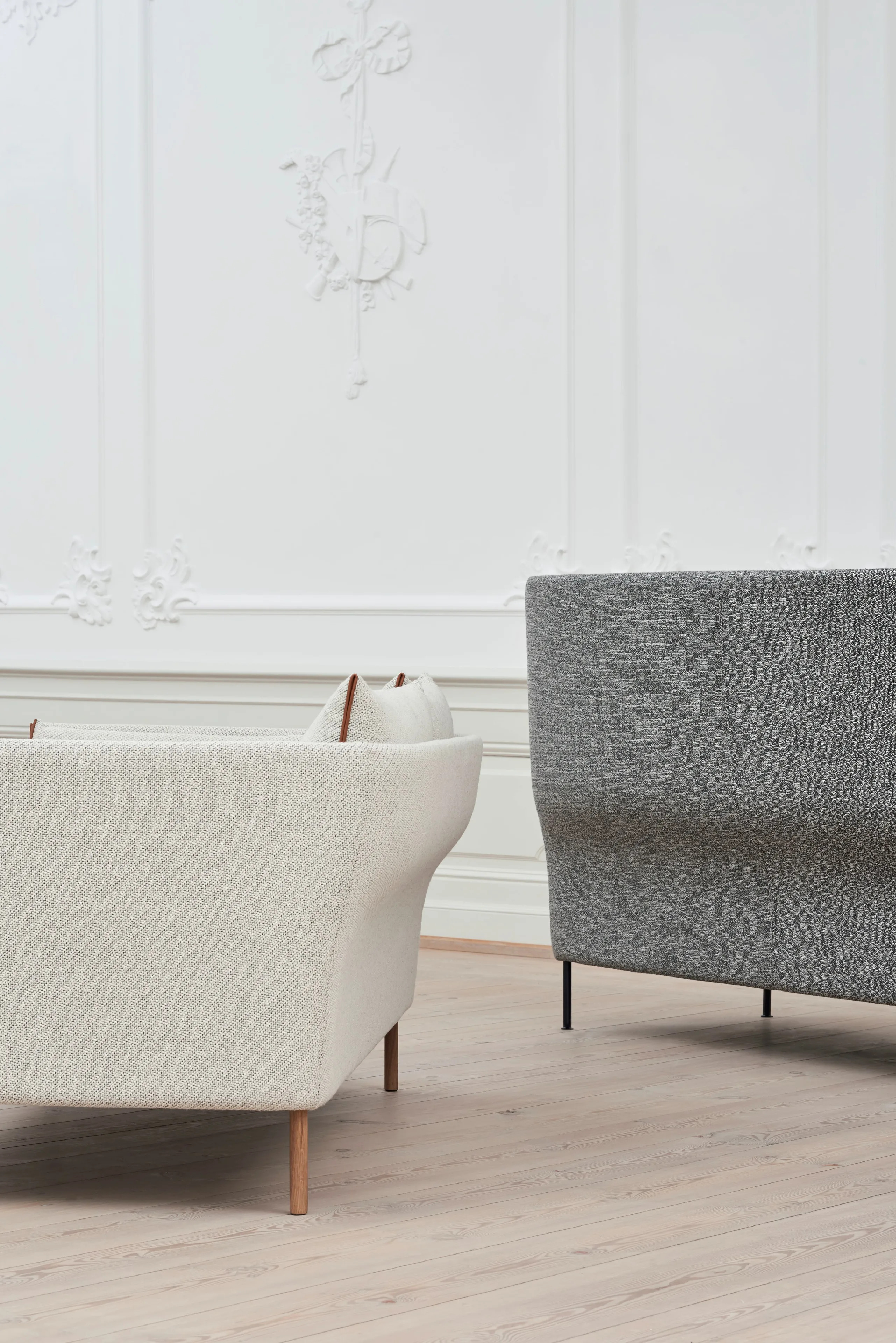 A GamFratesi által tervezett Silhouette kanapészéria a kanapé hátának sima ívével tűnik ki, amely erőteljes karaktert és egyszerű, organikus megjelenést ötvöz. Az elülső nézet szögletes, a jellegzetes szegélyek pedig kompakt és helytakarékos megjelenést kölcsönöznek, miközben a kanapé könnyed és tágas, bőséges ülőhelyet biztosítva. A kollekció különböző méretű és magasságú kanapékat tartalmaz, fém vagy tömör fa lábakkal, valamint számos kiválasztott textíliával. A különböző konfigurációk és a markáns szerkezeti nyelvezet révén a kanapé ideális választás a tér meghatározására és intimitás megteremtésére mind nagy, mind kis helyiségekben, legyen szó irodai, szállodai vagy vendéglátóipari környezetről. A váz üvegszállal erősített, PU habbal kárpitozott, a párnák poliuretán habból készülnek, toll és hab keverékével töltve. A lábak 17,5 cm magasak, elérhetők fekete porszórt acélból, krómozott acélból vagy tömör tölgyből. Széles választékban kapható standard szövetekkel és bőrökkel.