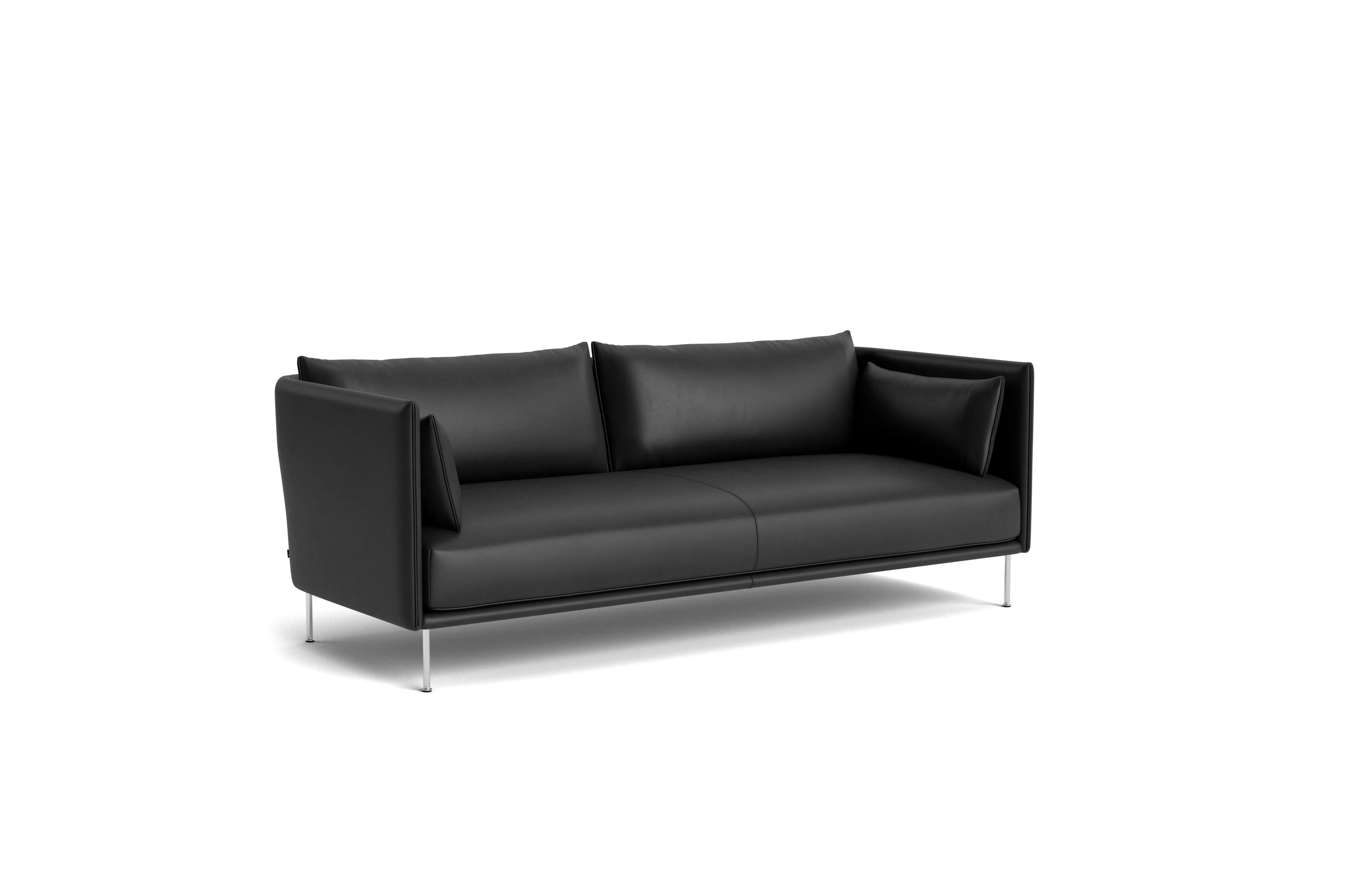 A GamFratesi által tervezett Silhouette kanapé sorozat a háttámla sima ívével tűnik ki, amely erőteljes karaktert és egyszerű, organikus megjelenést ötvöz. Az elülső nézet szögletes, a részletek pedig határozottak, így a kanapé kompakt és helytakarékos, mégis könnyed és tágas, bőséges ülőhelyet biztosítva. A sorozat különböző méretű és magasságú kanapékat tartalmaz, fém vagy tömör fa lábakkal, valamint számos kiválasztott textíliával. A különböző konfigurációk és a markáns szerkezeti nyelvezet révén a kanapé ideális választás a tér meghatározására és intimitás megteremtésére különböző méretű helyiségekben, legyen az privát vagy nyilvános. A váz formázott, megerősített üvegszálas héjból készül, PU habbal kárpitozva, különböző keménységű habokkal. Az ülőpárnák poliuretán habból, a háttámla és ülőpárnák toll és hab darabok kombinációjával vannak töltve. A lábak 17,5 cm magasak, porfestett acélból, krómozott acélból vagy tömör tölgyből készülnek. Széles választékban elérhető standard szövetek és bőrök, valamint négy különböző alapfelület: fekete porfestett acél (RAL 9005), krómozott acél, olajozott tömör tölgy, füstölt tömör tölgy.