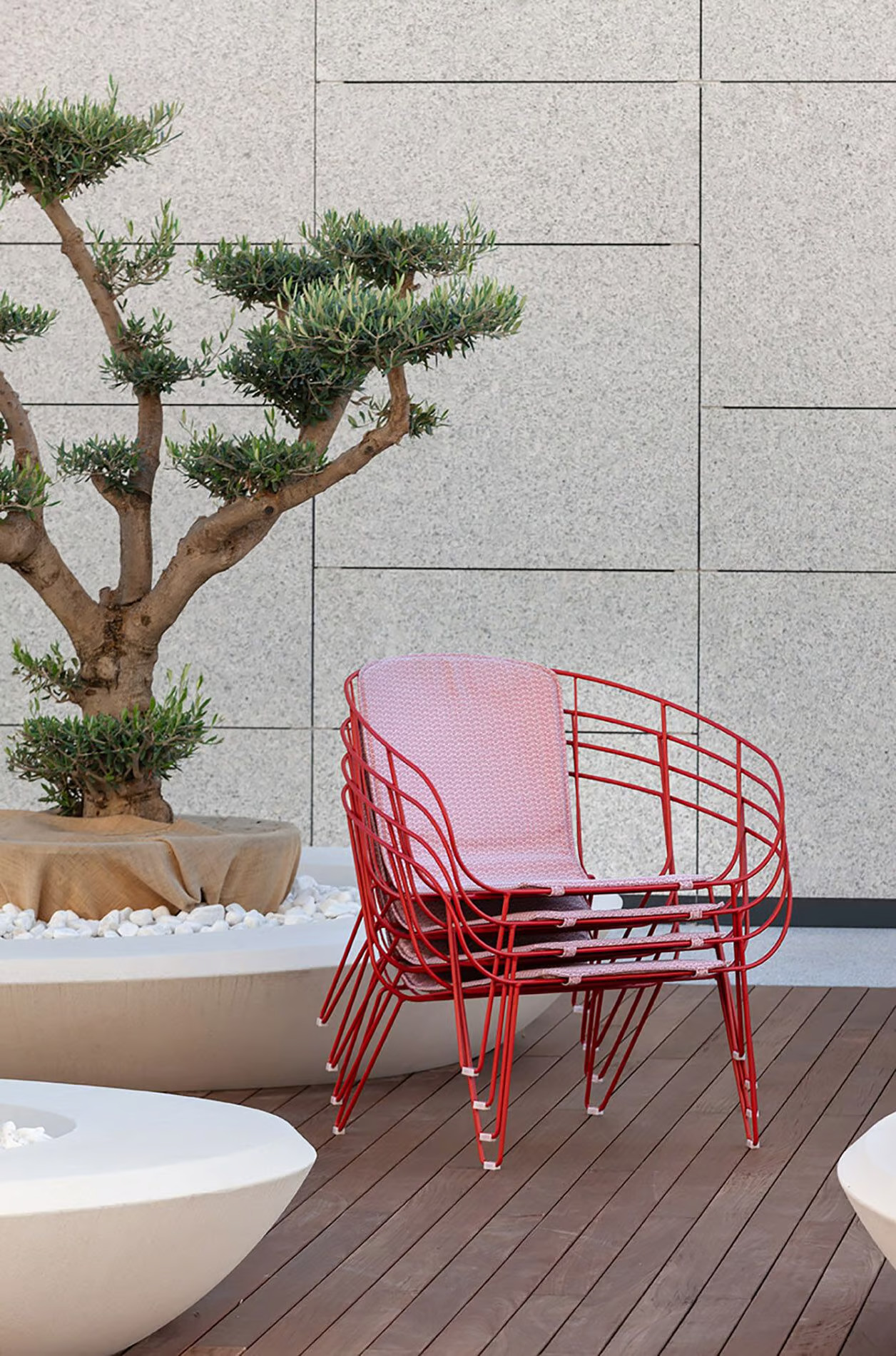 Az OLIVO karosszék formatervezése az olajfák mediterrán tájképből és kultúrából merít ihletet. A karosszék horganyzott huzalból készült, amelyet poliészter porfestéssel láttak el. Alkalmas kültéri és beltéri használatra, valamint szerződéses környezetekben is megállja a helyét. Ideális választás éttermek, kávézók, szállodák, panziók, vendéglátóipari egységek, közparkok, szabadidős központok, valamint kültéri rendezvények számára. Az OLIVO karosszék tökéletesen illeszkedik a kültéri ülőgarnitúrák, kerti bútorok, kültéri bútorok, kültéri székek és kültéri kanapék közé, biztosítva a stílusos és tartós megoldást a különböző vendéglátóipari és szabadidős helyszínek számára.
