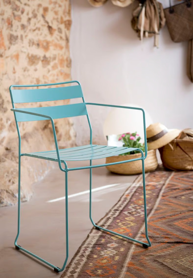 A Portofino kollekció a mediterrán hangulatot idézi meg, alapvető, vidám és színes dizájnnal. A CAPRI étkezőasztal festett acélból készült, huzalos lábakkal és lekerekített asztallappal rendelkezik, így egyedi, karakteres tereket hoz létre. A Portofino design székek horganyzott huzalból készülnek, poliészter porfestéssel. Alkalmasak kültéri, beltéri és közületi használatra, így ideális választás irodai asztalokhoz, modern asztalokhoz, valamint kávézó székekhez.