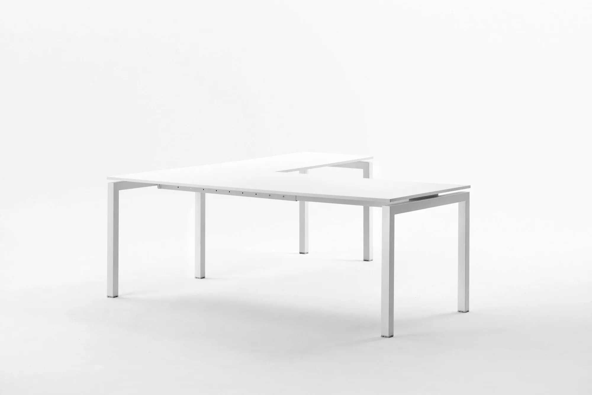 A FIFTY 50 tárgyaló asztal letisztult vonalvezetésével ideális választás irodai környezetek berendezéséhez. Moduláris kialakítása lehetővé teszi különböző konfigurációk létrehozását, akár nagyobb méretekben is, a különböző hosszúságú oldalsó és köztes lábaknak köszönhetően. A kollekció asztalai és íróasztalai esztétikus formájuk és sokoldalú felhasználhatóságuk révén tökéletesen illeszkednek tárgyalótermekbe és várótermek bútorai közé. A precíz, négyzet keresztmetszetű váz a legújabb lézervágó gép száltechnológiájának köszönhetően láthatatlan hegesztéssel és egyedülálló felületkezeléssel készül. A FIFTY 50 különböző méretekben, színekben, felületekkel és kiegészítőkkel érhető el, így könnyedén illeszkedik bármilyen irodai környezetbe, legyen szó konferencia székekkel berendezett tárgyalókról vagy tárgyaló székekkel felszerelt közösségi terekről.