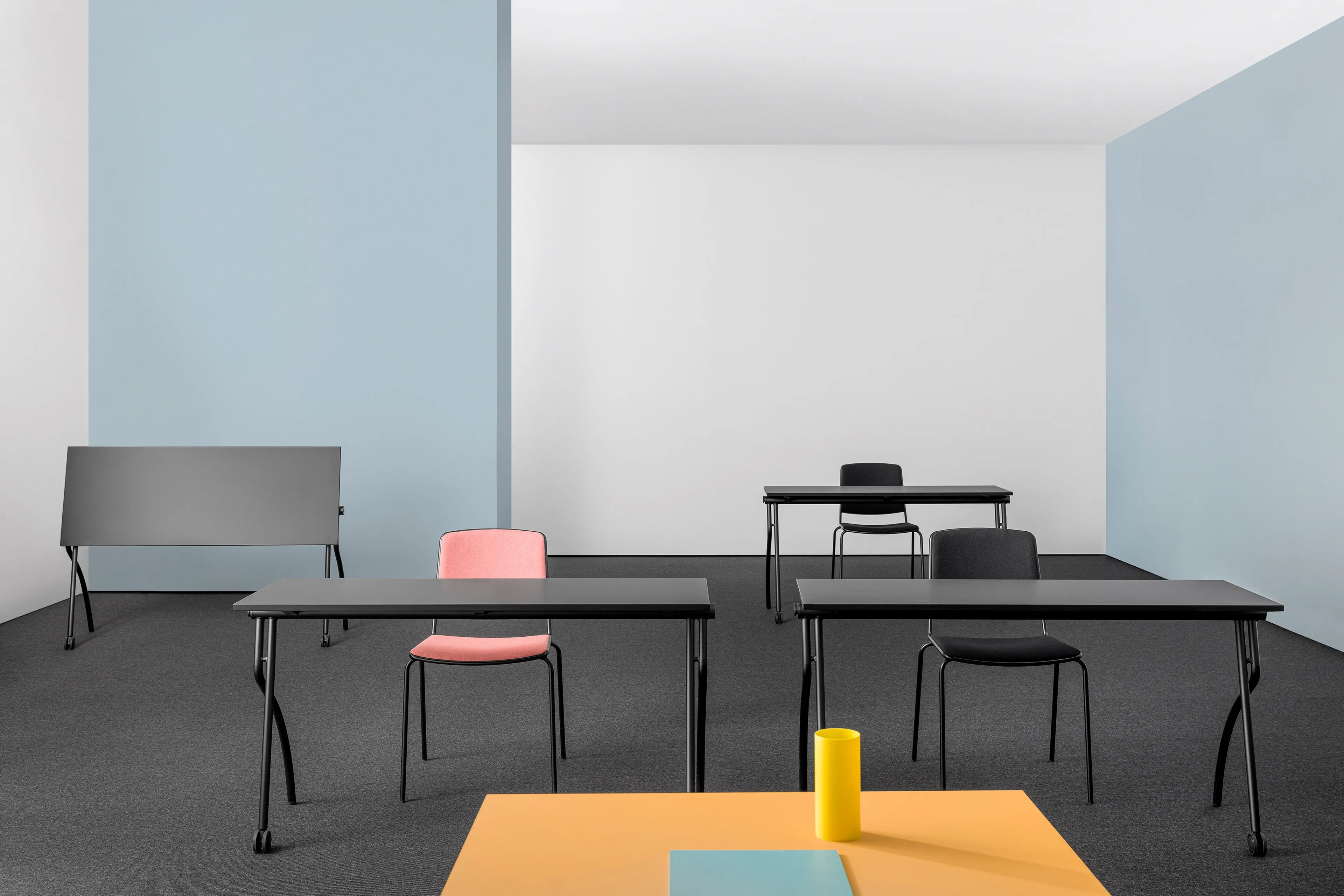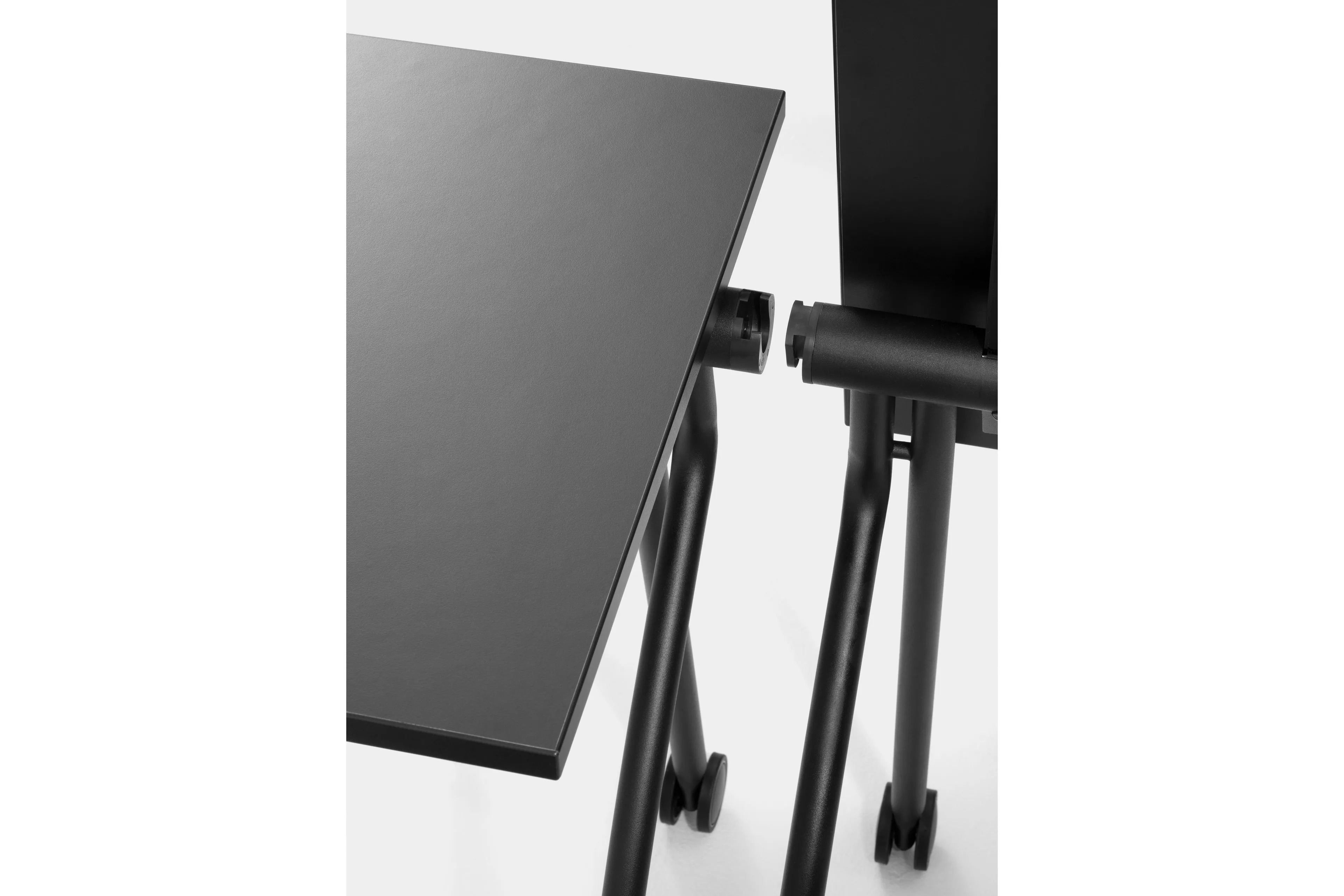 A GATE TRAINING egy masszív, egyszemélyes oktatási asztal, amely összecsukható és egymásra rakható asztallappal rendelkezik. Az intuitív összekapcsoló rendszer lehetővé teszi az asztalok egyszerű összekapcsolását és igazítását. Kompakt mérete és a görgők praktikus használata esztétikus és funkcionális megoldást kínál középületek bútorozására, mint például iskolák, egyetemek, könyvtárak, képzési és tárgyalótermek. A funkcionalitás, praktikusság és sokoldalúság jellemzi, így ideális középületi berendezésekhez. Két különböző méretben kapható, dönthető és egymásra rakható, a görgők pedig zárrendszerrel rendelkeznek, ami megkönnyíti a terek gyors átrendezését. A Mara által kifejlesztett innovatív összekapcsoló rendszer egyszerű mozdulattal teszi lehetővé az asztalok összekapcsolását és igazítását.