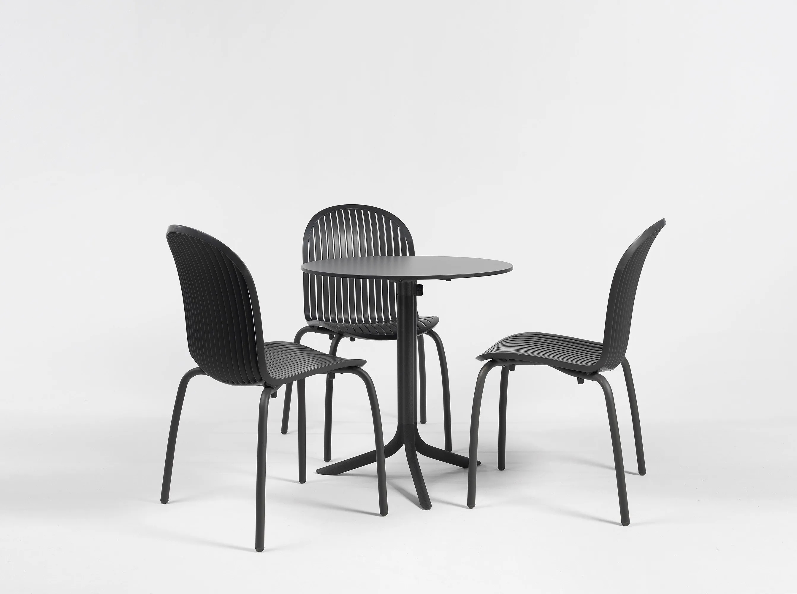 A Flûte egy elegáns és masszív, kerek asztal, amelynek asztallapja könnyen összecsukható, így praktikus megoldást nyújt a bútor kiegészítők terén. Az asztallap (ø 60 és 70 cm, H 73 cm) egy csendes, könnyen kezelhető rugós mechanizmusnak köszönhetően függőlegesen hajtható fel, megkönnyítve a tisztítást és a tárolást. A védőgumival ellátott eszköz megakadályozza a karcolásokat és a dörzsölődést a tárolt asztalok között, és praktikus fogantyúként is szolgál a könnyebb szállításhoz. A Flûte laminált vagy werzalit asztallappal kapható, több színben, öntött alumínium talppal, amely ezüst vagy antracit színben festett, állítható lábakkal és alumínium csővel. A laminált asztallap színei: szürke, fehér, kávé, antracit, cement. A werzalit asztallap színei: gránit, fehér, katalán, ezüst, vesszőfonat. A festett talp színei: fehér, ezüst, antracit.