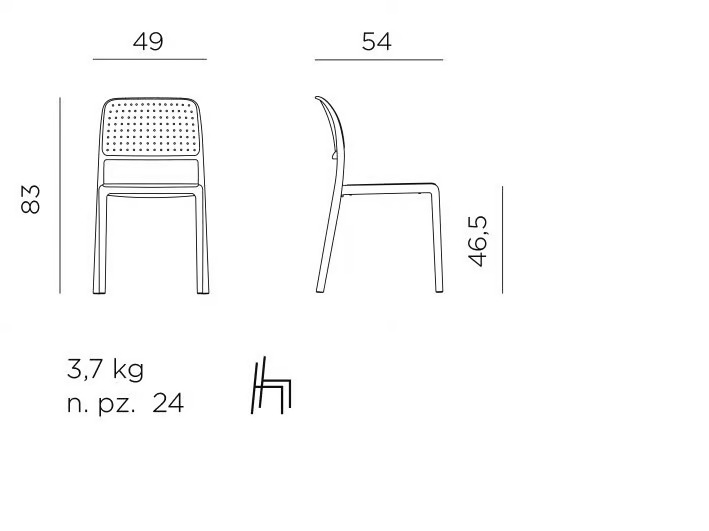 A Bora Bistrot egy karfa nélküli, kényelmes szék, amely könnyedén illeszkedik irodai asztalokhoz, étkezőasztalokhoz és modern asztalokhoz egyaránt. A szék dinamikus vonalvezetése és letisztult formatervezése lehetővé teszi, hogy beltéri és kültéri környezetben is megállja a helyét. A szék kerete újrahasznosítható, UV-kezelt, tömegében színezett üvegszálas gyantából készült, matt felülettel. Az ülőfelület és a háttámla egyetlen egységet alkot, amely esztétikailag a puha szövetpárnázásra emlékeztet. A Bora Bistrot könnyen egymásra rakható és egyszerűen mozgatható, különböző színekben kapható, és csúszásmentes lábakkal van felszerelve. Méretei: szélesség 49 cm, mélység 54 cm, háttámla magassága 83 cm, ülésmagasság 46,5 cm.