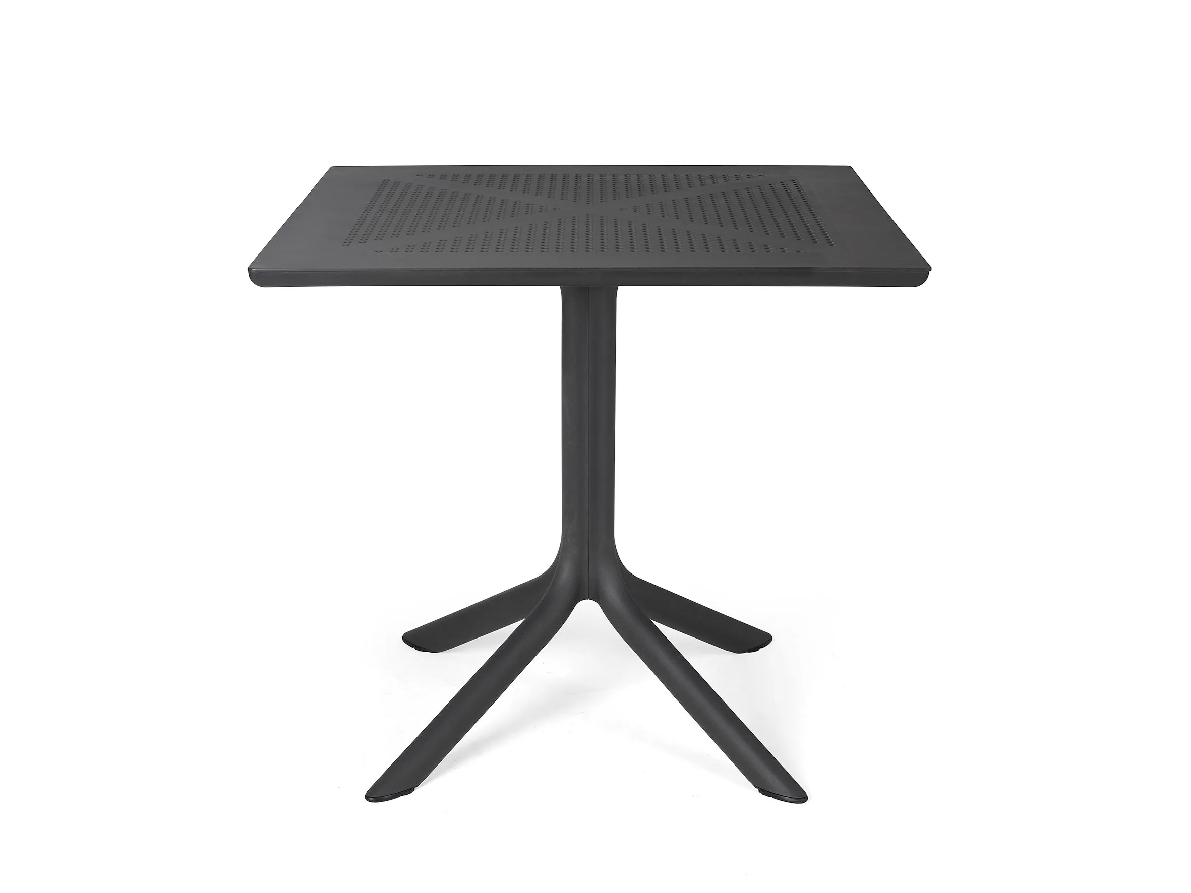 A CLIP 80 egy professzionális, négyágú központi támasztékkal rendelkező, négyzet alakú étkezőasztal, amely üvegszálas gyantából készült. A DurelTop asztallap kör alakú, perforált mintával van fotógravírozva. Ez a modern asztal ideális választás irodai környezetbe, éttermekbe, kávézókba, oktatási intézményekbe és konferenciatermekbe. A színes, háromlábú design székek és kávézó székek könnyen összeszerelhetők és szétszerelhetők az egyszerű nyílásrendszernek köszönhetően, és nem igényelnek karbantartást. A CLIP 80 tökéletesen illeszkedik kis terekbe, teraszokra, kertekbe és erkélyekre, valamint beltéri használatra is kiváló.
