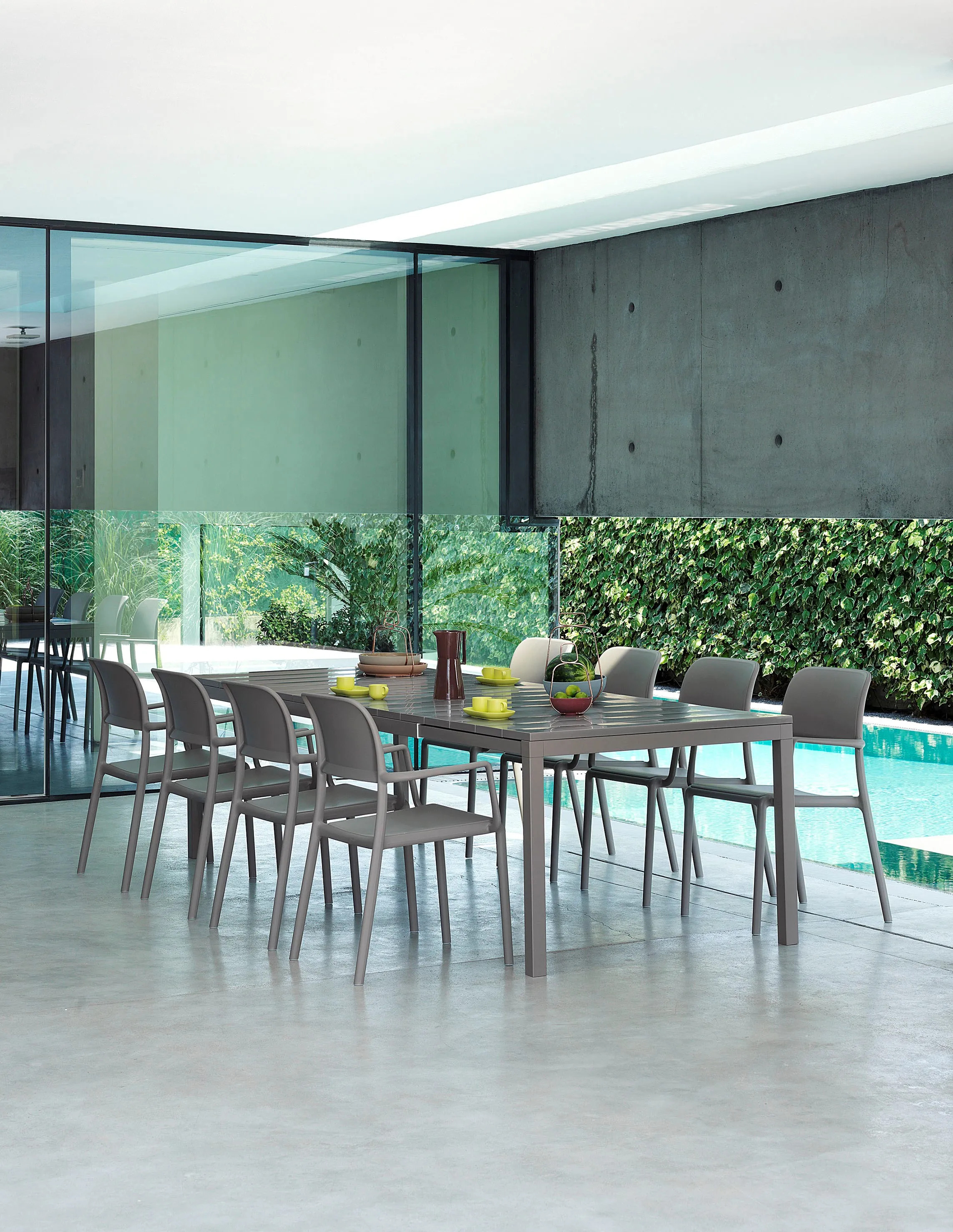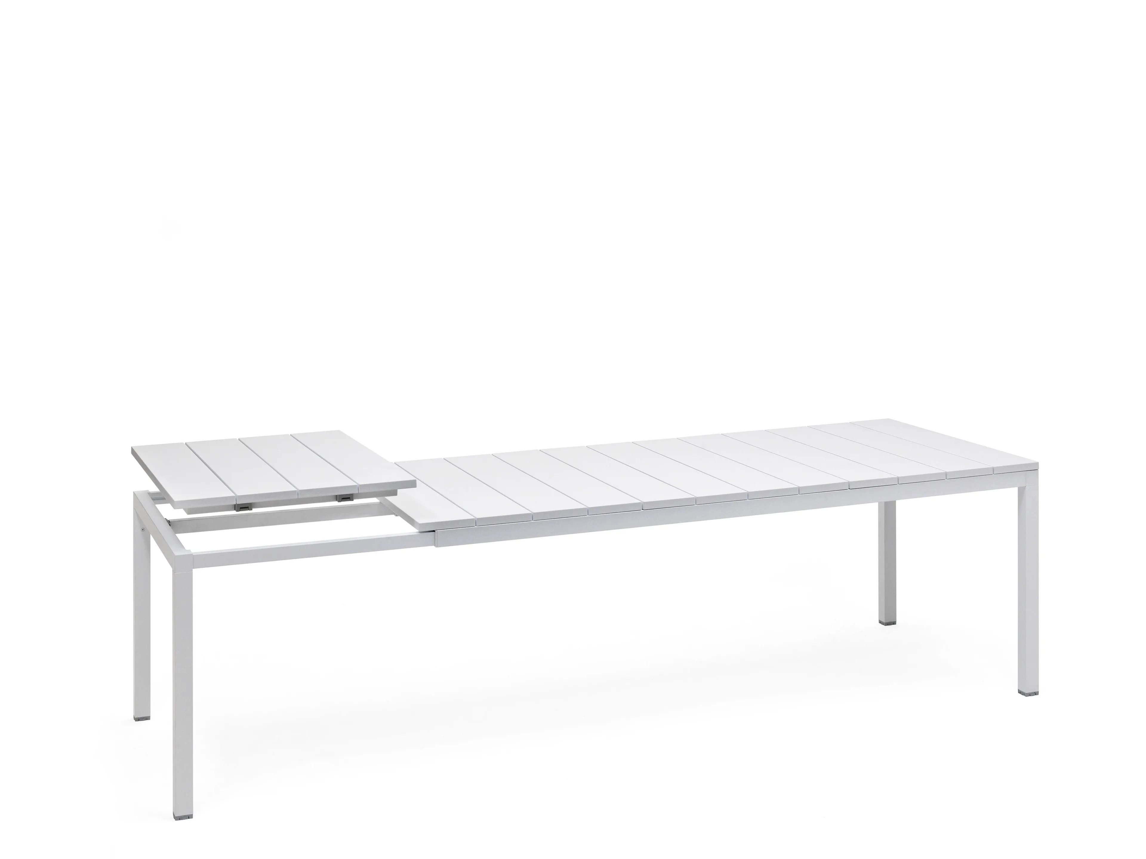 A RIO 210 egy bővíthető étkezőasztal, amely akár 10 fő befogadására is alkalmas. Az asztal bevonatos alumínium lábakkal és állítható talpakkal rendelkezik, a teteje pedig UV-kezelt, tömegében színezett DurelTop gyanta lécekből áll, három színben elérhető: antracit, fehér és galambszürke. Az asztal anyaga nem mérgező, antisztatikus és 100%-ban újrahasznosítható. Méretei: magasság 76 cm, szélesség 100 cm, hosszúság 210 cm, amely 280 cm-ig bővíthető. Könnyen szétszerelhető, időjárásálló, és nem igényel különleges karbantartást. Alkalmas mind beltéri, mind kültéri használatra, ideális választás irodai asztalnak, modern asztalok közé, vagy akár kávézó székek mellé.