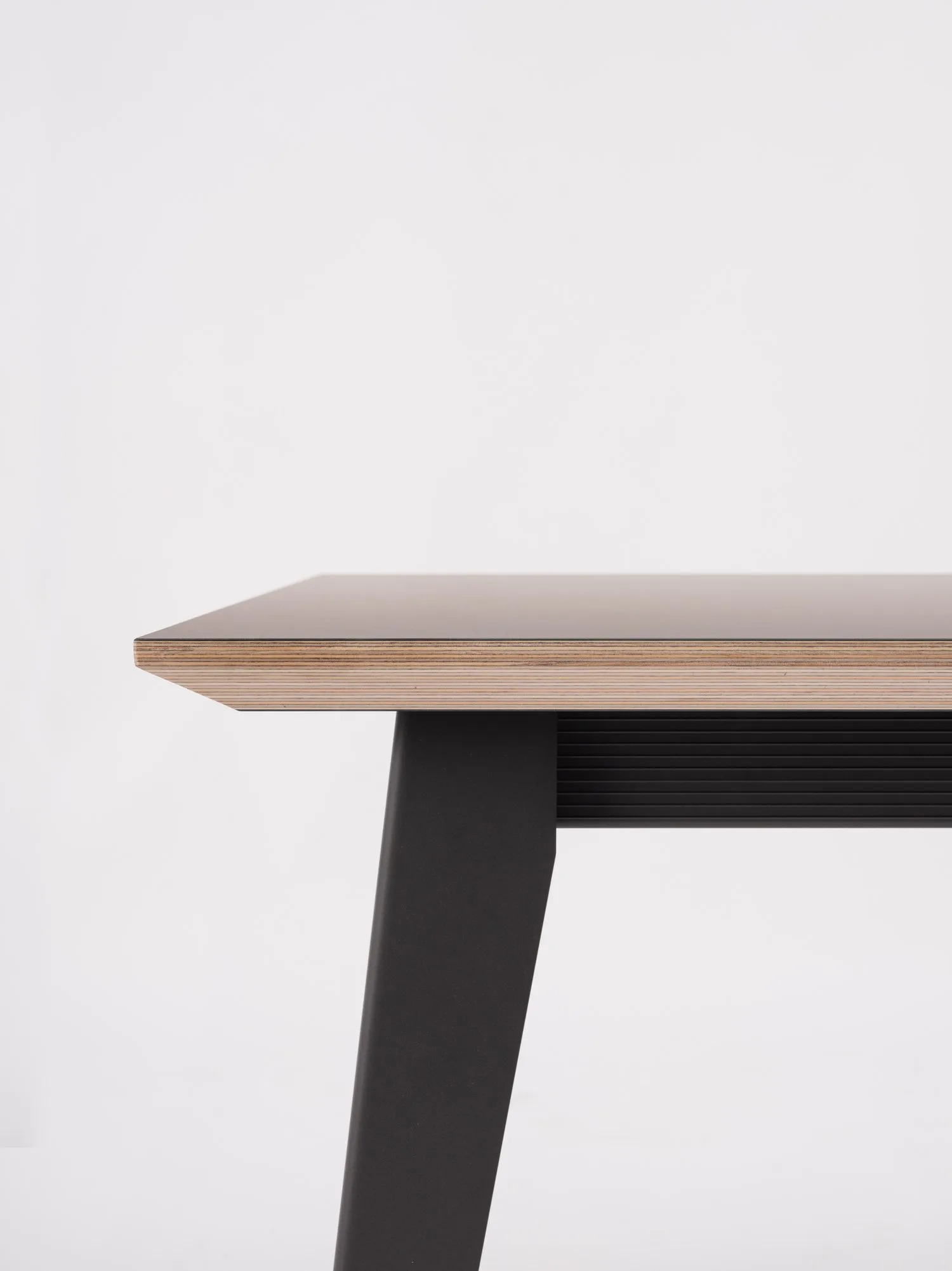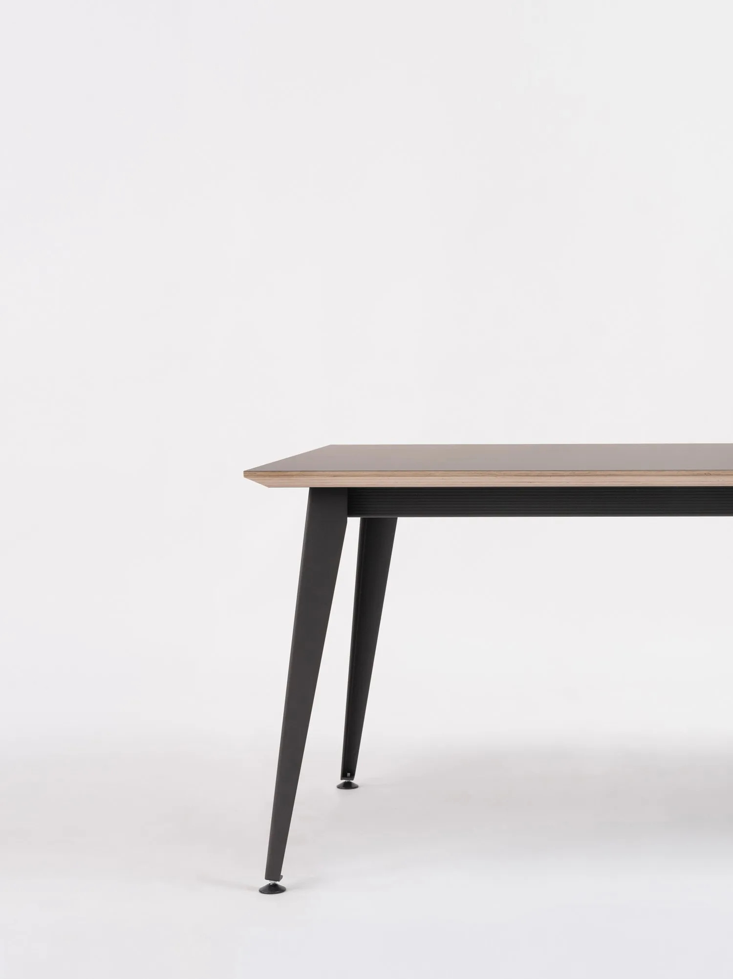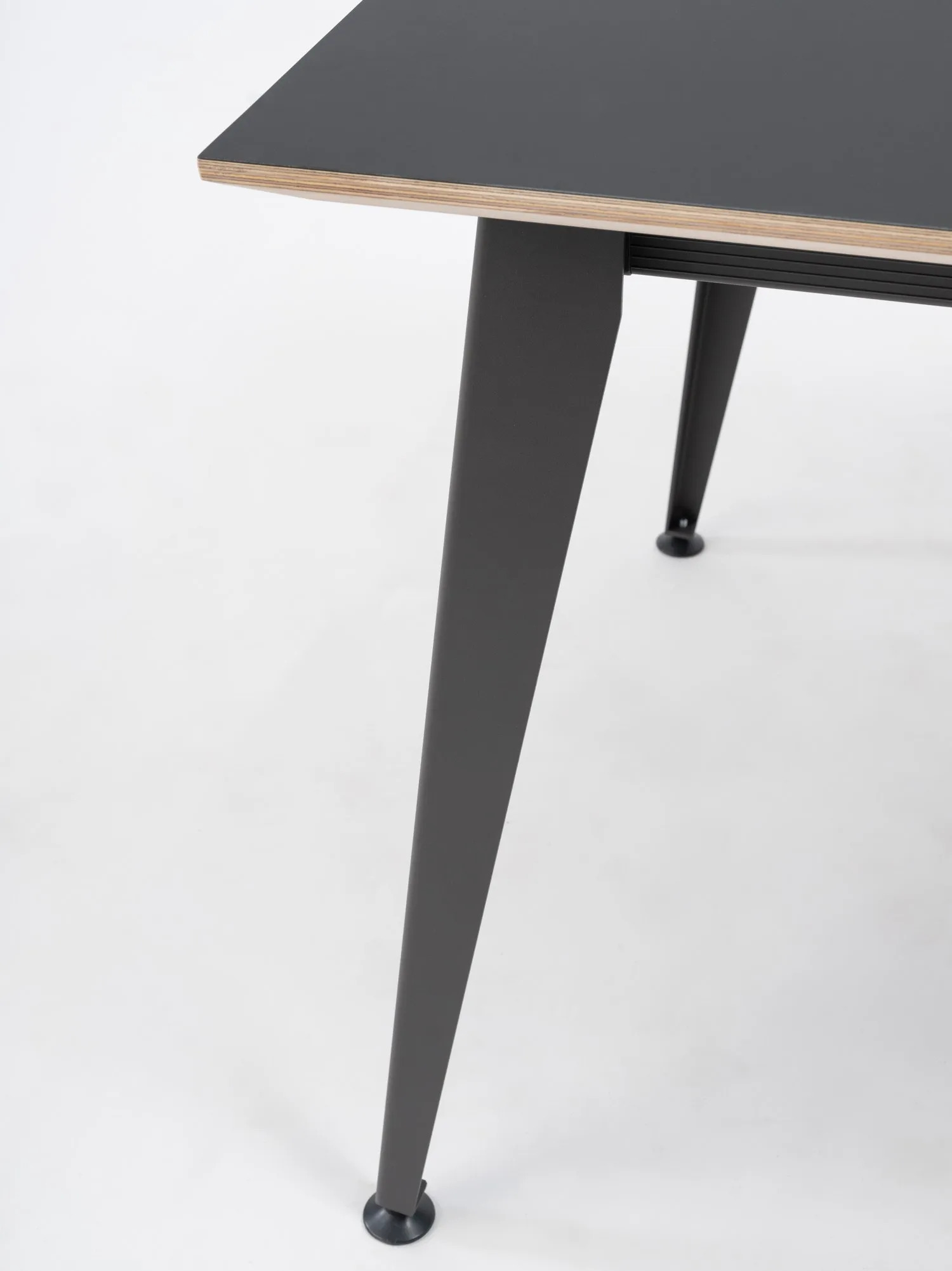 A DON téglalap alakú asztal modern ipari stílust képvisel, amely egyedi karakterével és frissességével idézi a retro és ipari hangulatot. Az asztal acél váza és a vékony, kemény fenol anyag hangsúlyos elemei, valamint a látható csavarok részletei különleges megjelenést kölcsönöznek. Az asztallap különféle fa, laminált vagy porcelán anyagokból választható, fix vagy bővíthető kivitelben. Az irodai asztal, étkezőasztal vagy kávézó székekkel kombinálva a DON asztal erőteljes jelenlétével képes átalakítani a teret, legyen szó irodákról, éttermekről, kávézókról vagy konferenciatermekről.