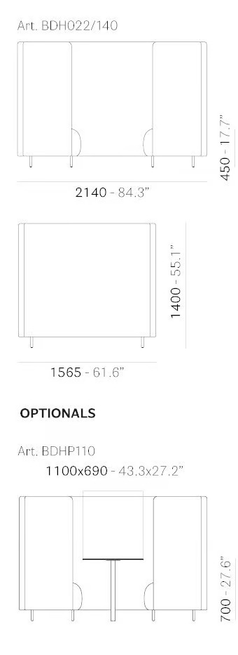 A BUDDYHUB BDH022/140 egy funkcionális és hatékony megoldás, amely akusztikai és vizuális privát szférát biztosít, követve az irodai terek modern trendjeit. A kanapé körülölelő, hangelnyelő panelje egy zárt fülkét alkot, amely ideális kényelmes kanapéként szolgál. Két egység egymással szemben elhelyezhető, és egy panel segítségével összekapcsolható, amelyhez asztal vagy polc rögzíthető, így informális találkozóhely vagy pihenősarok alakítható ki. A kétüléses box poliuretán habbal van injektálva, amelyet rugalmas szalagok támasztanak alá, a háttámla és a karfák szintén poliuretán habból készültek, acél vázzal és alumínium lábakkal. A termék funkcionalitását tovább növeli a csatlakozók hozzáadásának lehetősége, így töltő vagy képernyőtartó is telepíthető.