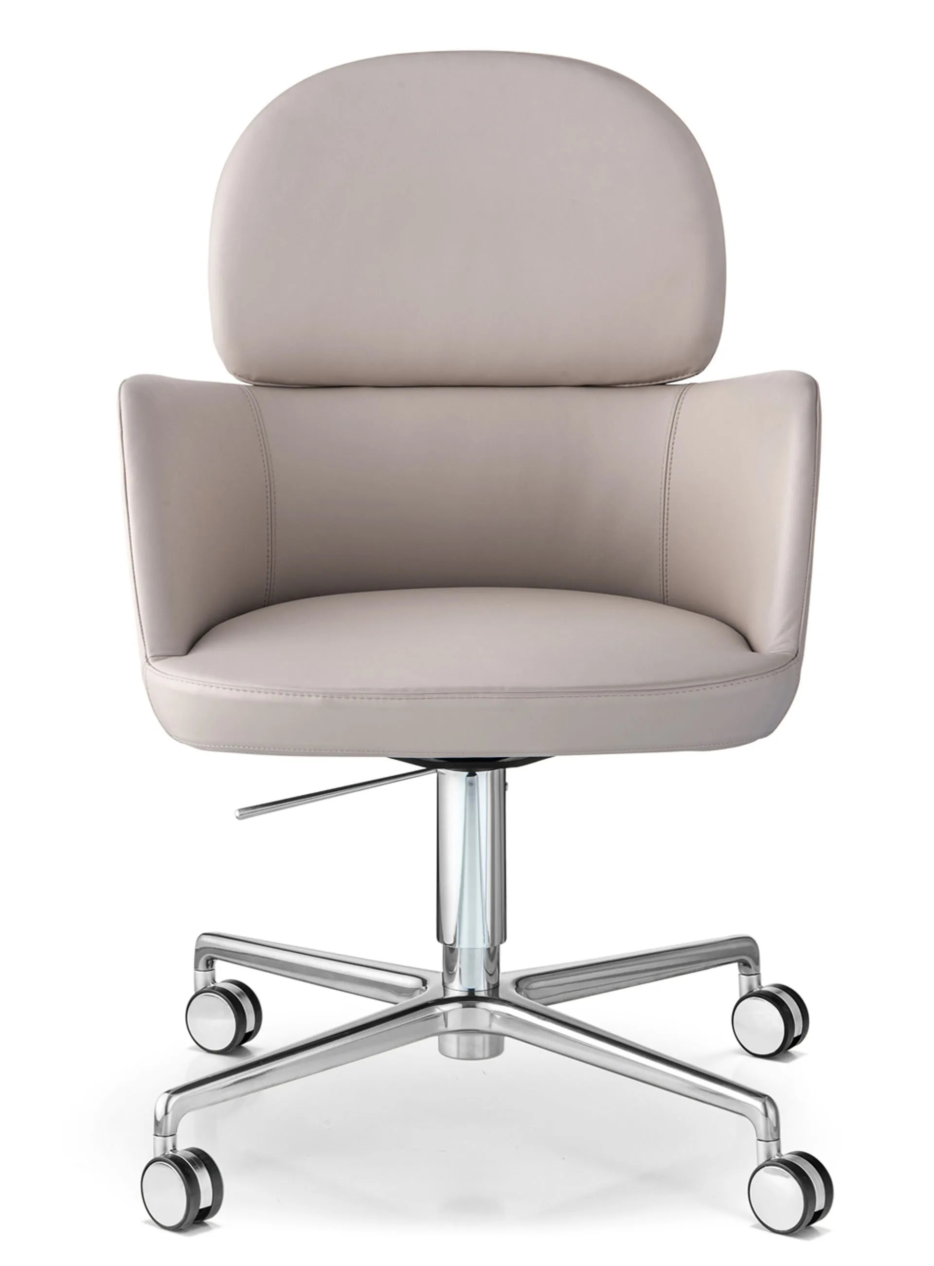 Az ESTER 696 karosszék eleganciát és kényelmet visz az irodai környezetbe. A központi, négyágú talp, amely választható görgőkkel, ideálissá teszi vezetői irodák és tárgyalók számára. A bőr vagy szövet kárpitozású, lágy vonalvezetésű ülőfelület maximális kényelmet biztosít. Az ülés kétféle háttámla mérettel érhető el, és poliuretán habból készül, amelyet rugalmas szalagokkal erősítettek meg egy acélvázon. Az ESTER 696 tökéletesen illeszkedik irodai székek, irodai asztalok és irodai tárolók környezetébe, kielégítve a cégek, közintézmények, vállalkozások és startupok igényeit.