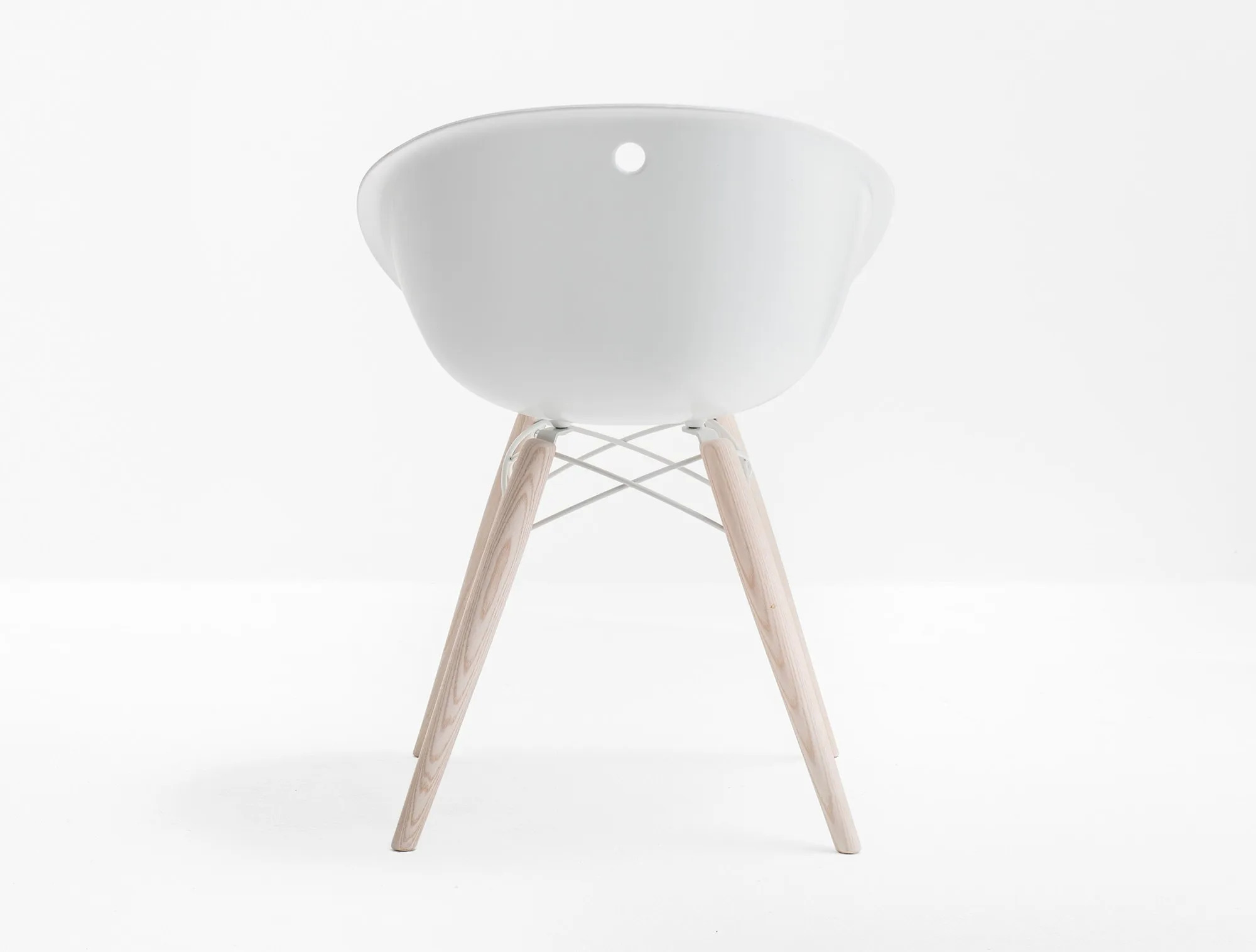 A GLISS 904 egy ergonomikus és kényelmes bútordarab, amely az ötvenes évek ikonikus székeiből merít ihletet, jellegzetes eleme a héjban található lyuk. A kollekció kiemelkedik a kényelem és a funkcionalitás terén, a karfák ívelt kialakítása biztosítja a kényelmes fogást és a test körülölelését. A szék technopolimer héjjal és tömör kőrisfa lábakkal rendelkezik, ideális választás étkezőasztalokhoz, modern asztalokhoz, irodai asztalokhoz, valamint kávézó székeként is megállja a helyét.