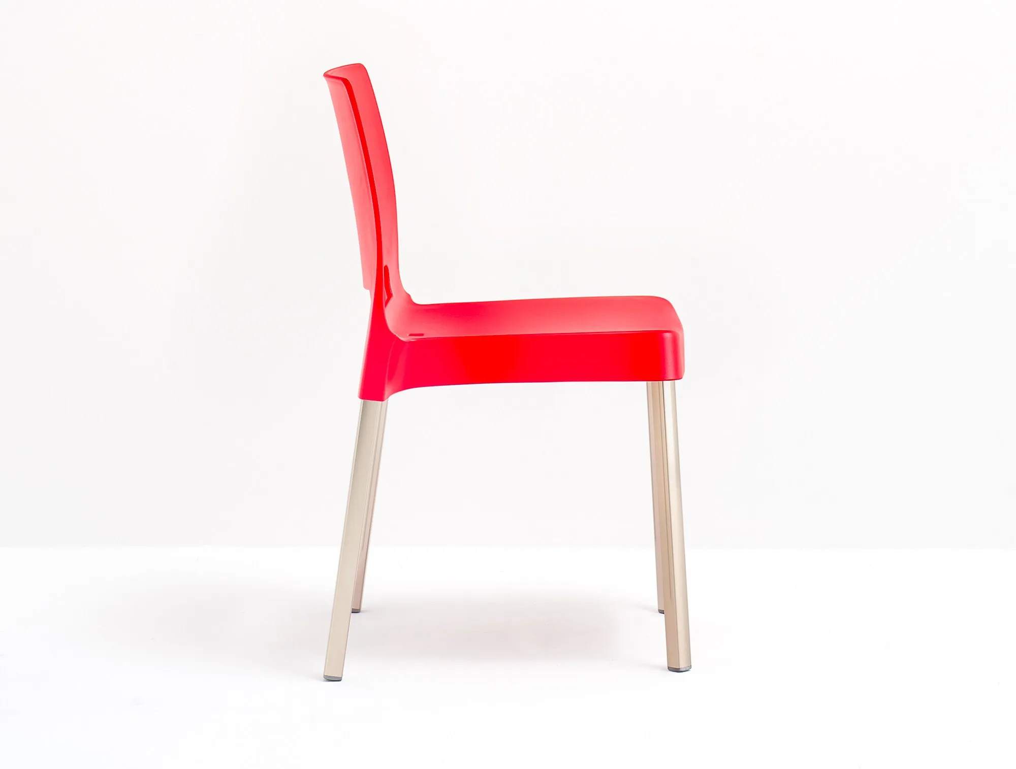 A Joi székek ergonomikus kialakítását az alumínium lábak biztosítják, amelyek stabilitást és karaktert kölcsönöznek. A székek polipropilén ülőfelülettel és háttámlával rendelkeznek, és könnyen egymásra rakhatók, így helytakarékos megoldást nyújtanak irodai asztalok, étkezőasztalok vagy modern asztalok környezetében. A székekhez nylon oldalsó összekötő kampó is rendelhető, amely lehetővé teszi a sorok kialakítását, ideális konferenciatermek, oktatási intézmények vagy vendéglátóipari egységek számára. A termék beltéri és kültéri használatra egyaránt alkalmas, és elérhető tűzálló változatban is.