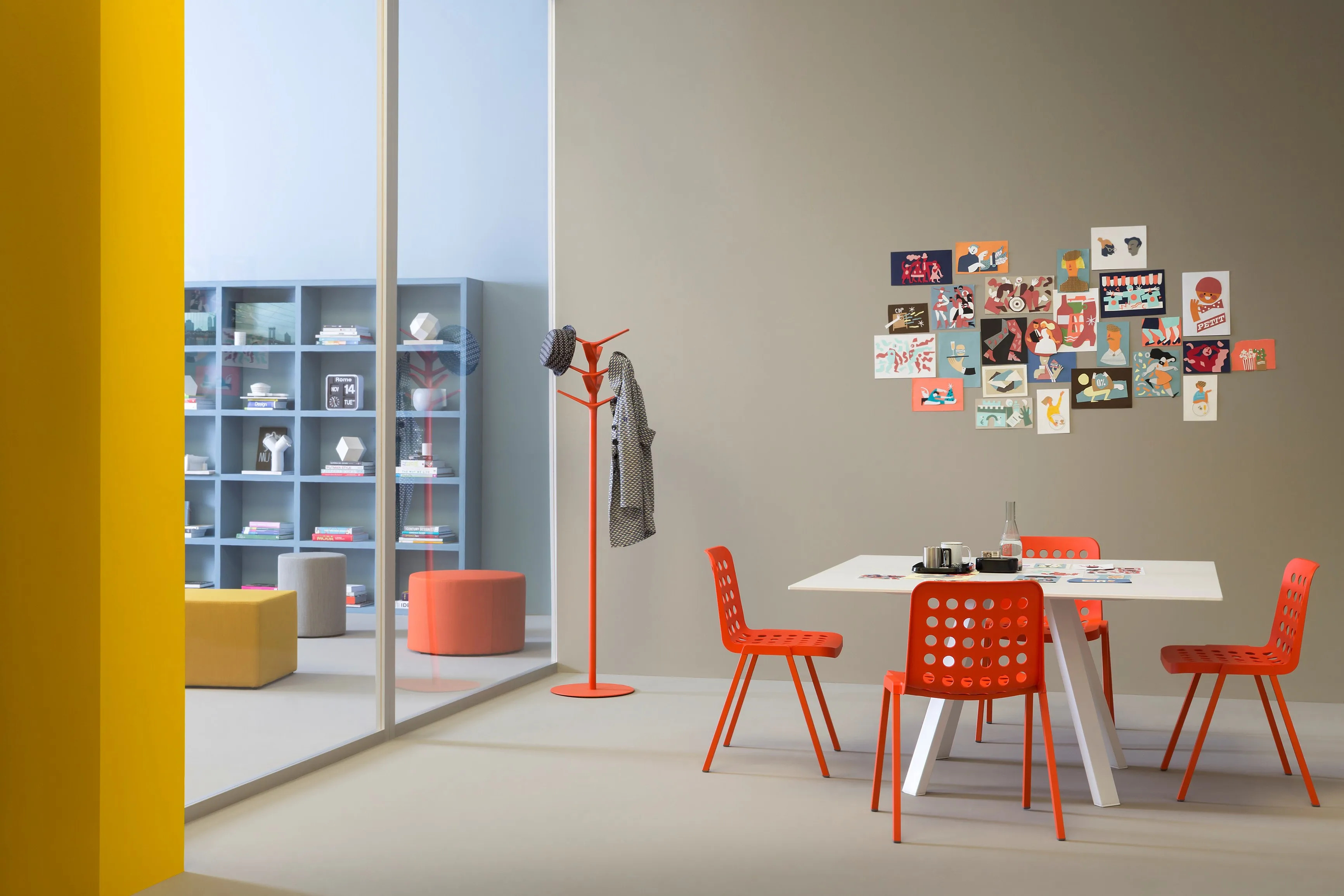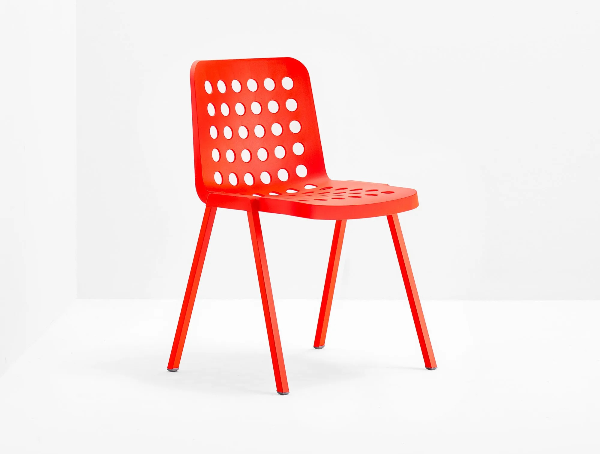 A KOI-BOOKI 370 szék geometrikus elemek ismétlődésével alkot egyedi grafikus mintát, amely meghatározza megjelenését és funkcionális jellegét. Az egy darabból álló, fröccsöntött polipropilén ülőfelületet öntött alumínium váz és extrudált alumínium lábak egészítik ki. A székek egymásra rakhatók, és összekapcsoló kampóval is felszerelhetők, így sorokba rendezhetők. Kiegészítőként thermoformált szövetpárna is elérhető. Tűzálló változatban is kapható. Ideális választás étkezőasztalokhoz, irodai asztalokhoz, modern asztalok mellé, valamint kávézókba és éttermekbe, ahol a design székek és kávézó székek kiemelt szerepet kapnak.