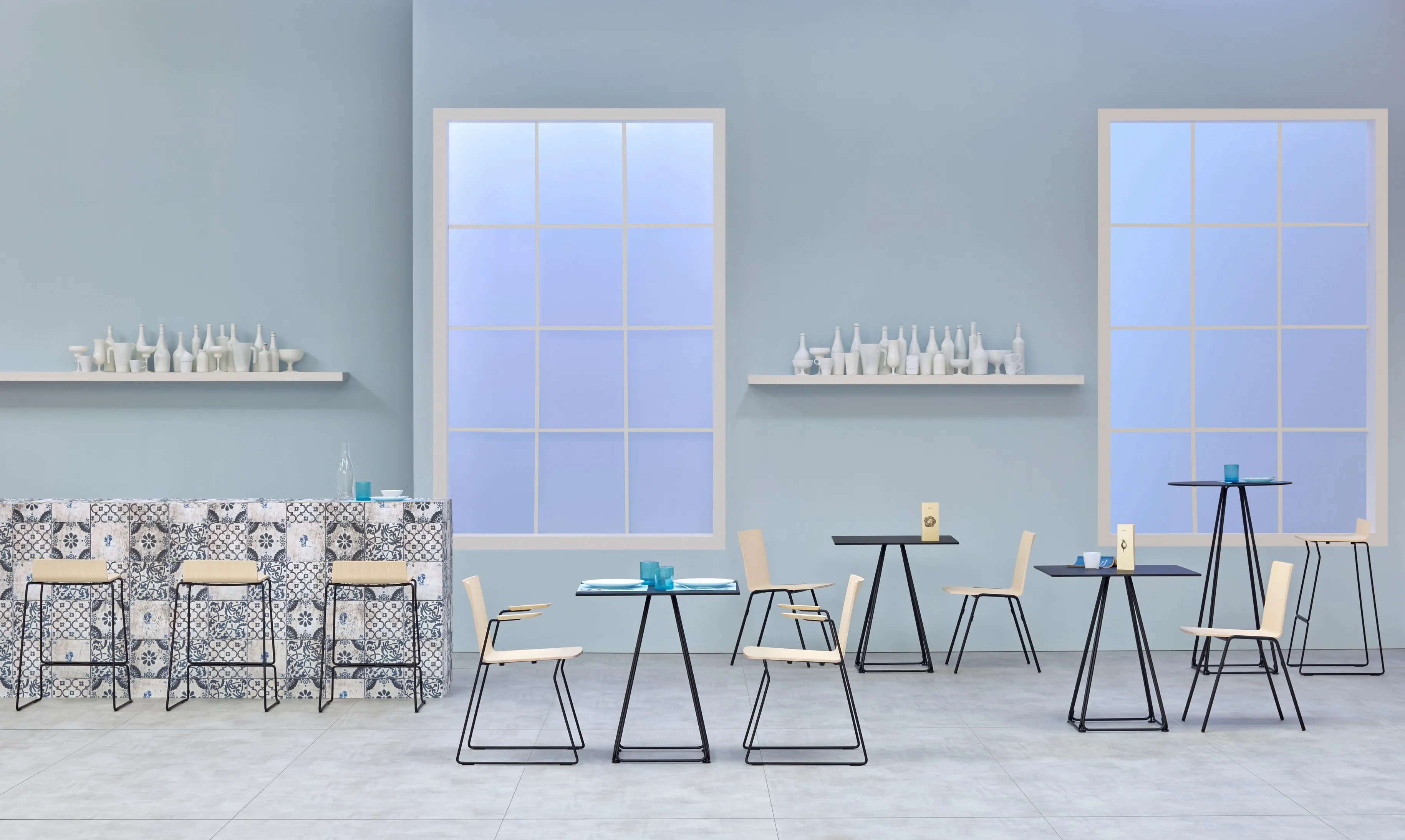 Az OSAKA METAL 5712 egy modern asztal és szék kollekció, amelyet irodák, éttermek, kávézók és középületek számára terveztek. Az étkezőasztal és design székek erős grafikai hatást keltenek, a konstrukció elemei az ideogramok lineáris vonásait idézik. Az irodai asztal és kávézó székek acélcső vázzal rendelkeznek, amelynek átmérője 16 mm, a héj pedig kőris furnérlemezből készült. A karfák kőrisfából készültek, biztosítva a tartósságot és a stílusos megjelenést. Az OSAKA METAL 5712 ideális választás konferenciatermek, tárgyalótermek és vendéglátóipari egységek számára, ahol a modern asztalok és székek esztétikai és funkcionális szempontból is kiemelkedőek.