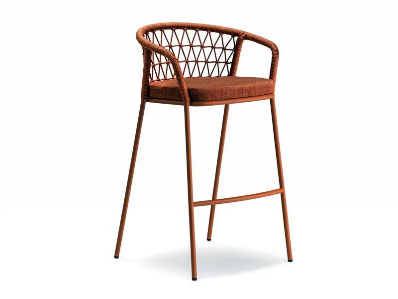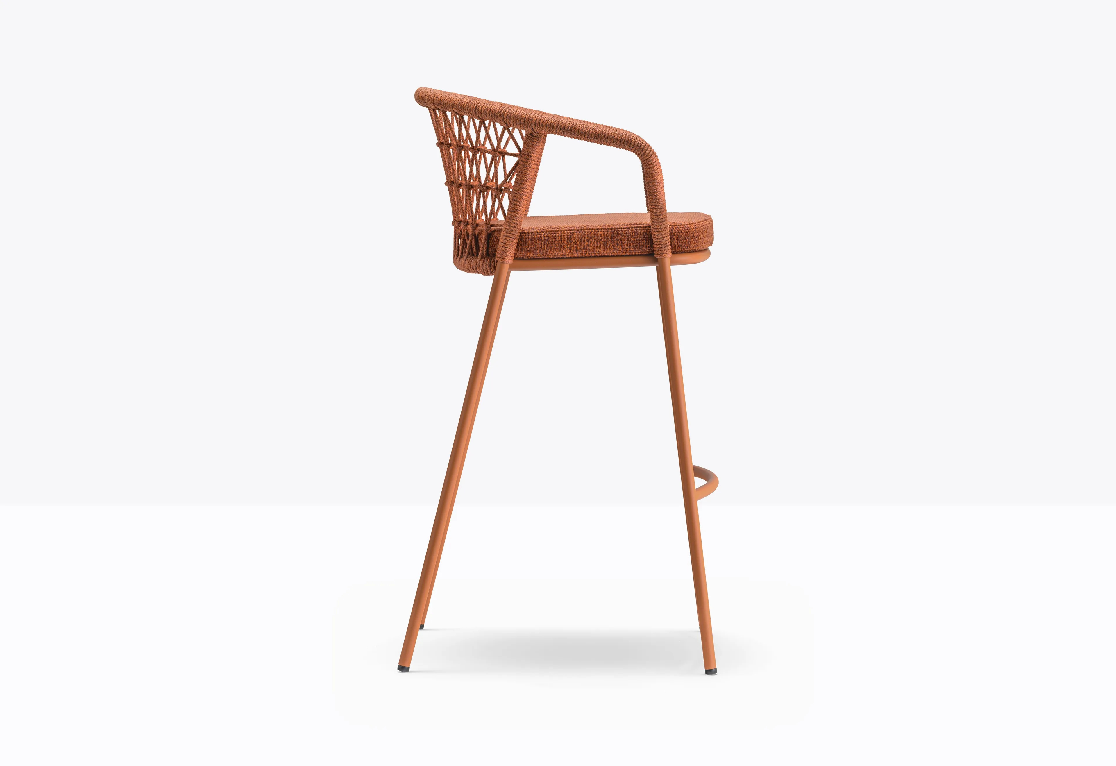 A PANAREA 3678 egy elegáns, modern asztalokhoz és design székekhez illő magas kerti szék, amely acélból és kézzel szőtt polipropilén kötélből készült. Az Ø 20 mm-es acélcső vázat körülölelő kézműves szövés Olaszországban készült, tisztelegve az olasz kézművesség előtt. Az ülőfelület kényelmét egy gyorsan száradó poliuretán habbal töltött párna biztosítja, amely ugyanabból a fonalból készült szövettel van bevonva, mint a szék szövése. Az elülső lábtartó lehetővé teszi a székek egymásra rakását. A széles, ívelt háttámla eredeti geometriai mintát alkot, amely a kávézó székek és irodai asztalok környezetébe is illeszkedik. A szék háromdimenziós, grafikus megjelenése könnyedséget és átláthatóságot kölcsönöz, így ideális választás irodák, éttermek, kávézók és vendéglátóipari egységek számára.