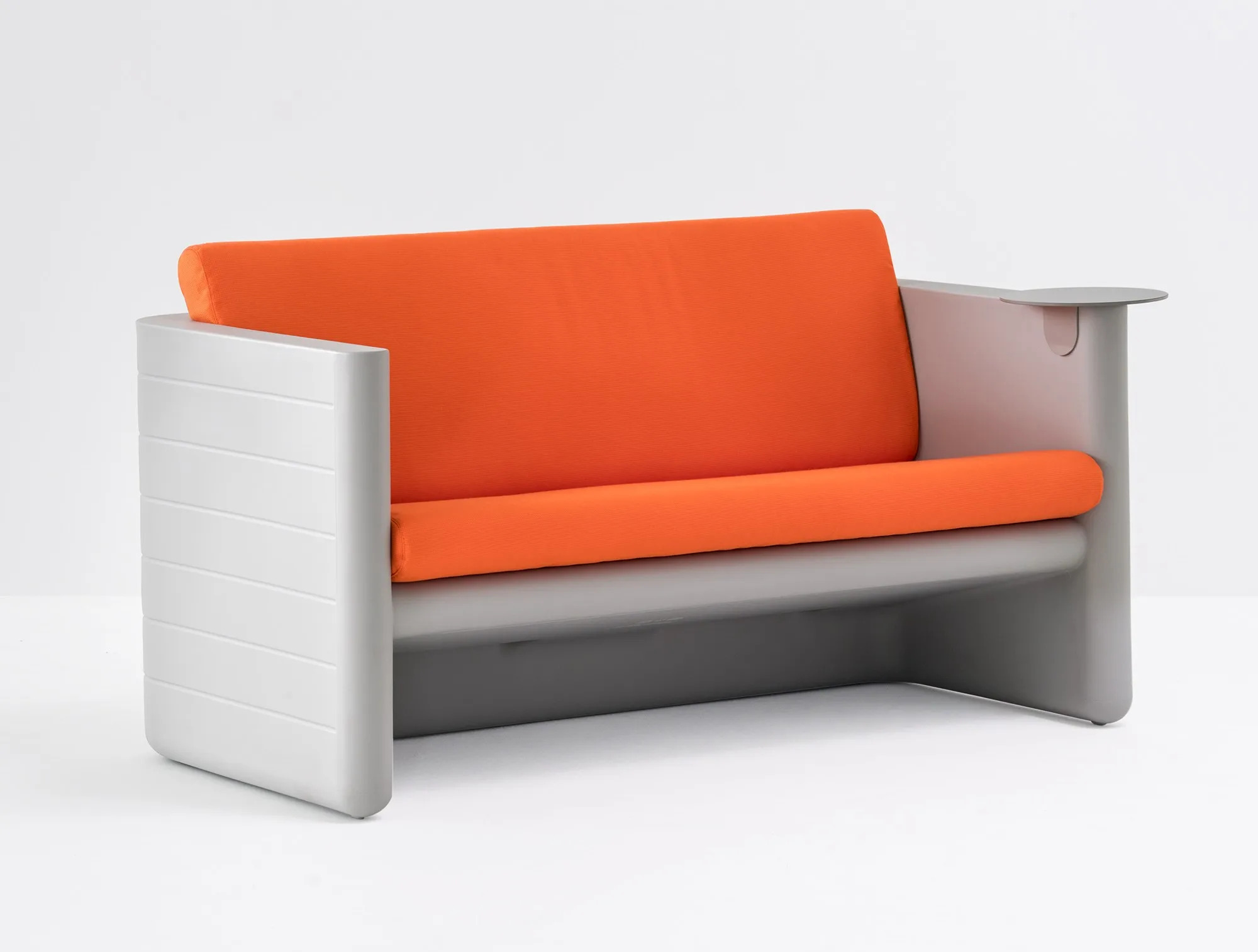 A Sunset 626 egy elegáns, kétüléses kültéri kanapé, amely ideális választás éttermek, kávézók, szállodák és más vendéglátóipari egységek számára. A polietilénből készült, szögletes formatervezésű váz körülöleli a tágas ülőfelületet, miközben a vízszintes vonalak finoman díszítik a külső profilt. A kanapéhoz vízálló anyaggal bevont, kényelmes párna is elérhető. A Sunset kollekció részeként ez a moduláris ülőgarnitúra tökéletesen illeszkedik bármilyen kültéri környezetbe, legyen szó kerti bútorokról vagy szabadidős központok berendezéséről.