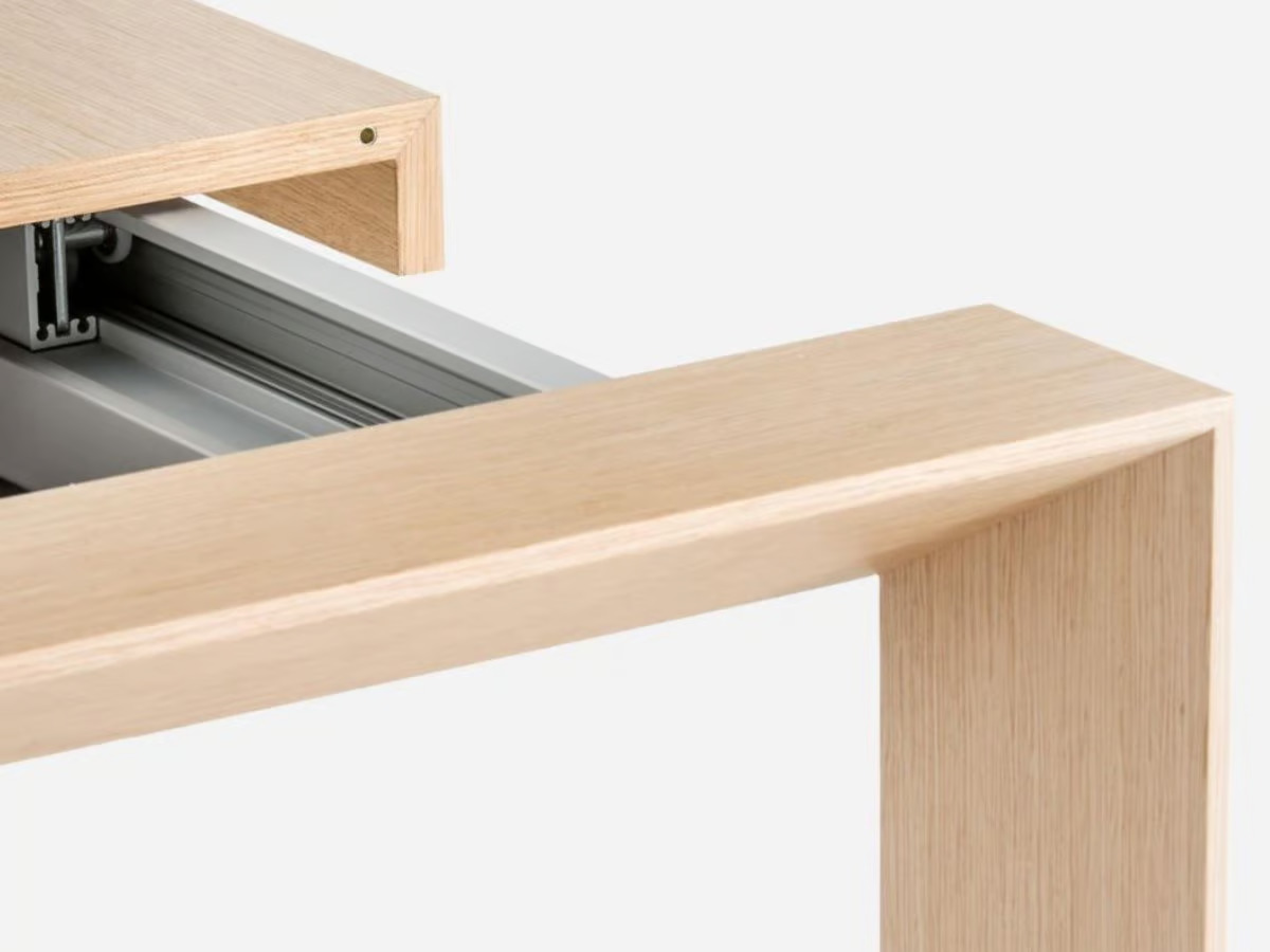 A SURFACE TSU2 asztal az építészeti és design világ közötti tökéletes kapcsolatot testesíti meg. Az étkezőasztal tölgy furnérozott, kúpos lábakkal és tölgy furnérozott asztallappal rendelkezik. Az alumínium csúszósín vezetők megkönnyítik a két bővítmény kihúzását, így ideális választás irodai asztalnak, modern asztalok közé, vagy akár éttermek, kávézók és konferenciatermek számára. A design székekkel és kávézó székekkel kombinálva harmonikus és funkcionális környezetet teremt különféle vendéglátóipari egységekben és középületekben.