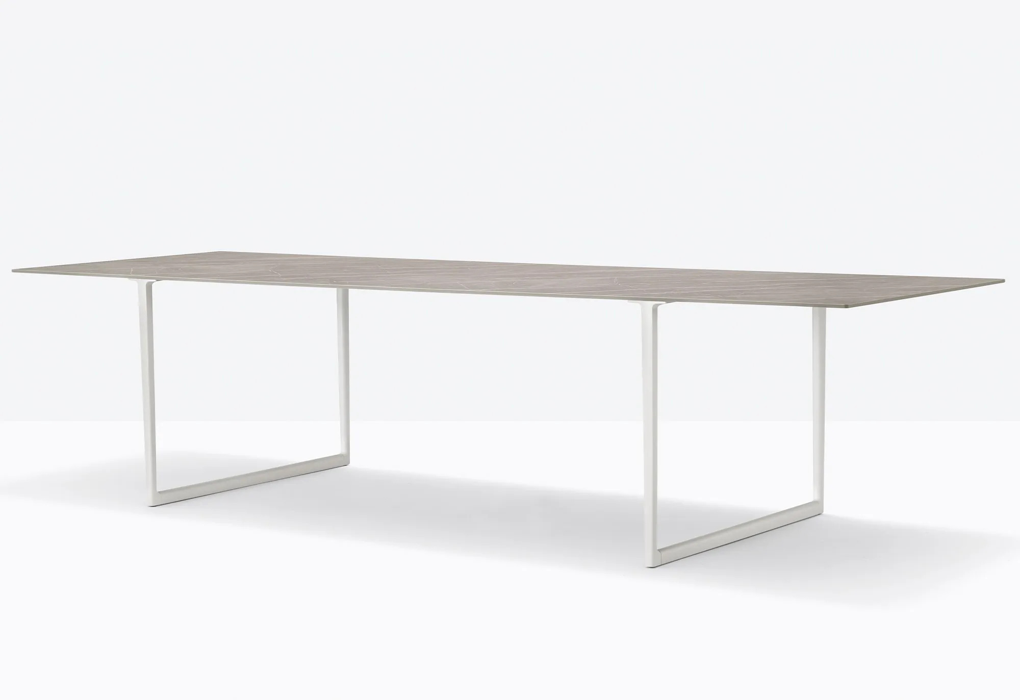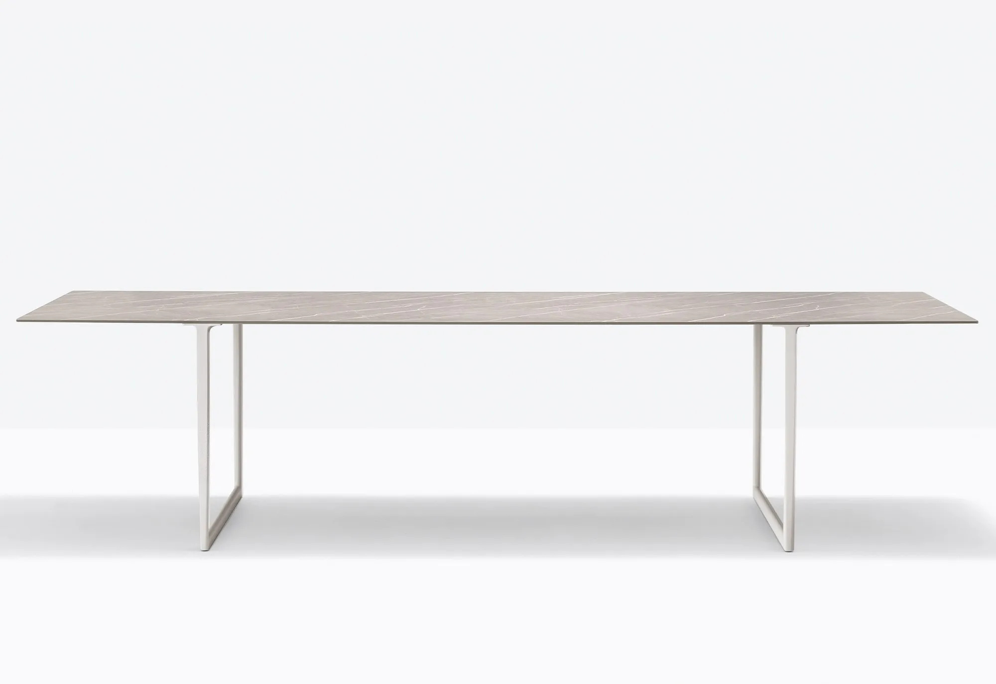 A Toa asztal a technikai-ipari stílust ötvözi dekoratív vonzerővel, így egy funkcionális és kifejező bútordarabot hoz létre. Könnyed és minimalista kialakítását a masszív, öntött alumínium váz jellemzi. Kiemelkedő tulajdonsága a karcsú, híd formájú lábak, amelyek az alapnál vékonyabbak, majd a tetejét tartó "T" elem felé szélesednek. Különböző szélességekben és mélységekben, valamint számos felülettel elérhető. Anyagok: tömör laminátum, öntött alumínium váz. Felületek: fehér, teljes színű tömör laminátum, polírozott alumínium, porszórt vagy titán bevonatú alumínium váz. Ideális választás étkezőasztalként, irodai asztalként, modern asztalok és design székek kiegészítőjeként, valamint kávézó székek mellé.