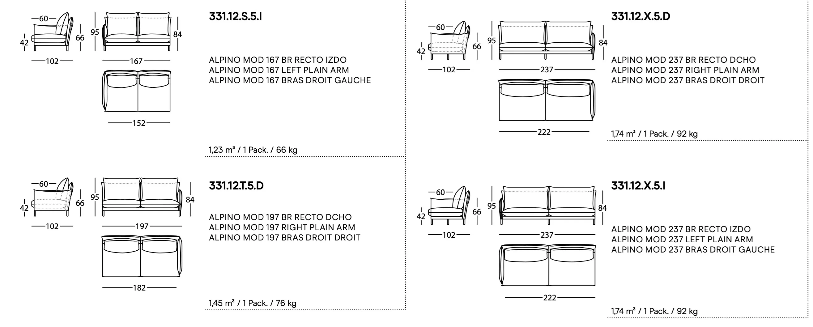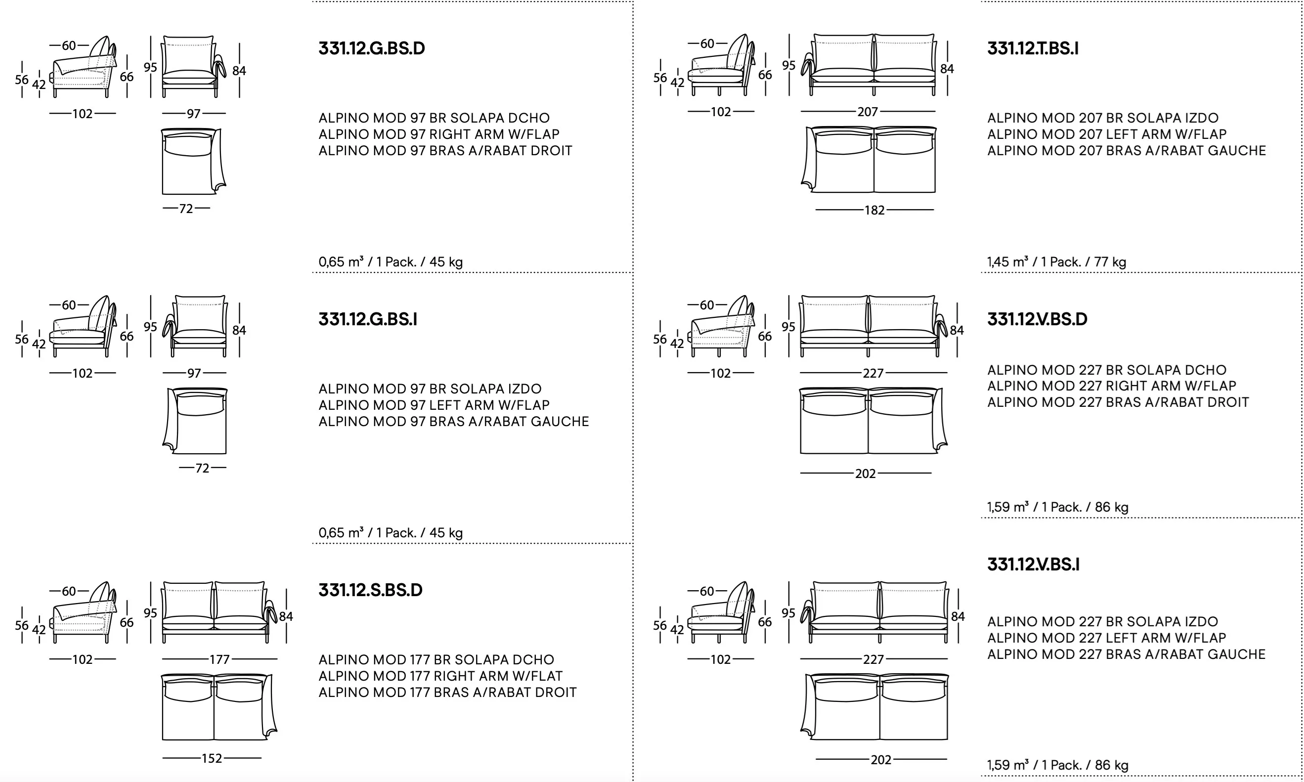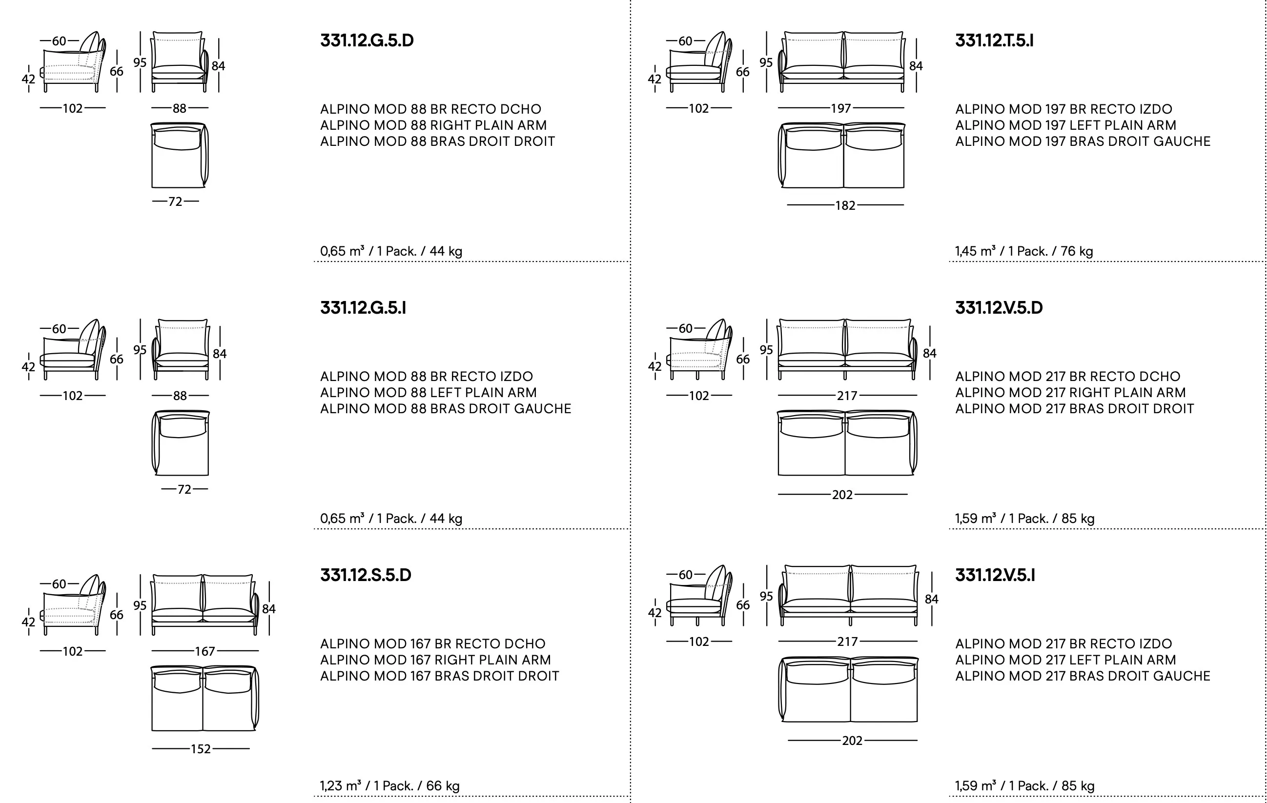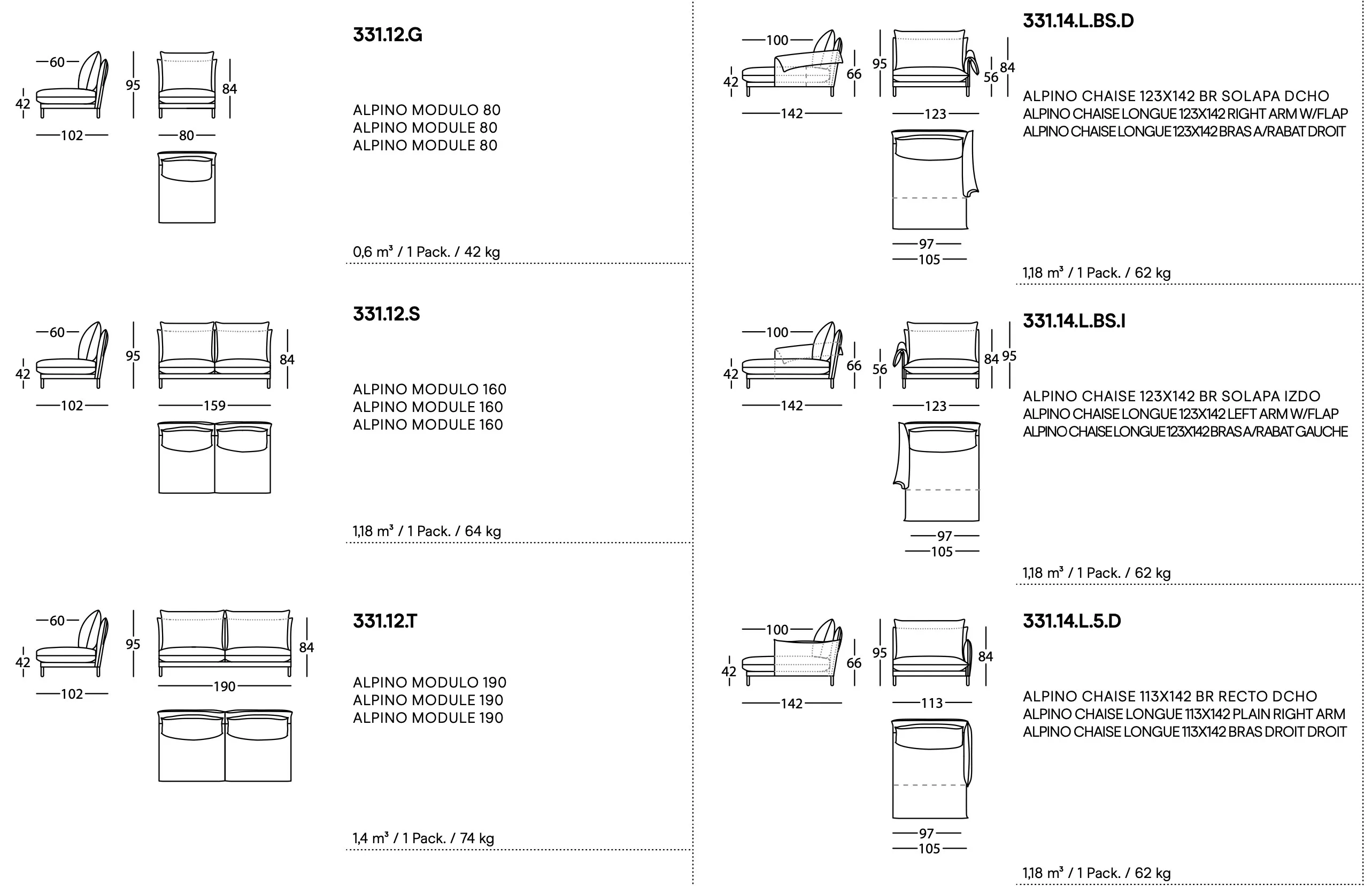 Az ALPINO kanapé a természet ihlette kényelmet és nyugalmat hozza el irodákba, szállodákba és vendéglátóhelyekre. Rafa García tervezése a hegyek formáit idézi, ahol a puha párnák egymásra simulnak, mint egy hegylánc. Az ergonomikus háttámla kényelmesen támasztja meg a fejet, ideális pihenéshez vagy olvasáshoz. A kanapé egyszerű, mégis összetett kialakítása egyedi karformákkal és vékony háttámlákkal rendelkezik. A Sancal textilkollekciója lehetőséget ad a személyre szabásra, míg a karcsú tölgy lábak különböző színekben lakkozhatók. Az ALPINO belső szerkezete acélcsövekből és NEA rugalmas szalagokból áll, míg a párnák különböző sűrűségű habokkal és FiberDream anyaggal vannak töltve. A kanapé 2 méteres hosszúságtól állítható középső lábbal rendelkezik, amely fekete acélból készült.