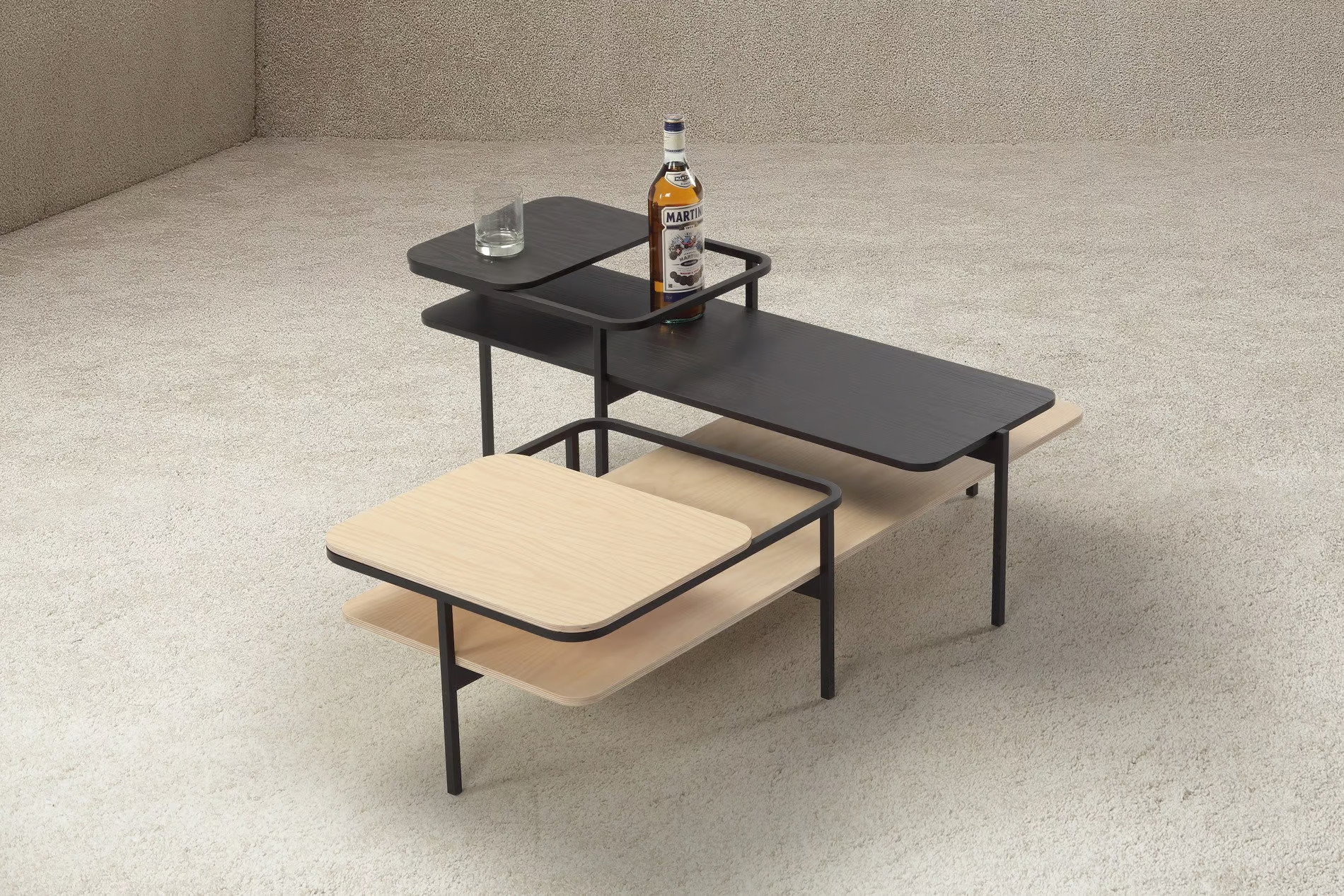 A DUPLEX kollekció a Mut stúdió és a Sancal együttműködésének eredménye, amelyet Mies van der Rohe és Frank Lloyd Wright építészete inspirált. Az asztalok különböző magasságokban elhelyezve különleges vizuális hatást keltenek, de önállóan is lenyűgözőek. Mindegyik asztal két szinttel rendelkezik, amelyek különféle tárgyak elhelyezésére alkalmasak. A fém szerkezetek lakkozottak, a tengeri rétegelt lemezből készült asztallapok pedig kőris furnérral borítottak. Az opcionális felső tálcák különböző méretű asztalokhoz is használhatók. Széles választékban elérhetők különböző pácok és lakkok, így könnyen illeszthetők irodai asztalokhoz, étkezőasztalokhoz, modern asztalokhoz, valamint kávézó székek és design székek mellé.