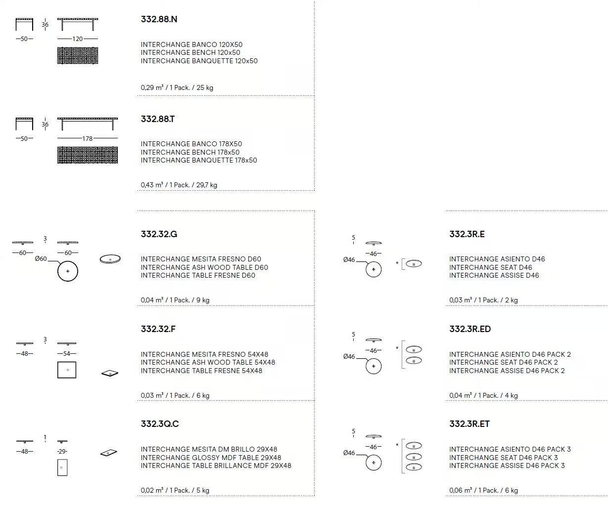 Az Interchange padülés Luca Nichetto tervezésében a Turati állomás rácsos mennyezetének építészeti formáiból merít ihletet. Ez a sokoldalú megoldás ötvözi a geometriát, anyagokat és funkciókat, így ideális választás étkezőasztalok, irodai asztalok és modern asztalok környezetébe. A tömör kőrisfa rács két méretben érhető el, és különféle konfigurációkhoz nyújt támaszt. Az elemek egyszerű rögzítőrendszerrel illeszthetők a lyukakba, lehetővé téve kényelmes ülések, különböző formájú és felületű asztalok, vagy elválasztó panelek beépítését. Az asztalok a pad széléhez rögzíthetők, míg a székek, mint például a design székek vagy kávézó székek, a rács peremén belül helyezkednek el. A testreszabási lehetőségek között nyolc pácszín a padhoz, tizenkilenc a kőrisfa asztalokhoz, négy magasfényű lakk szín az MDF asztalokhoz, valamint számtalan szövet, vinyl és bőr opció található az ülőpárnákhoz. A diszkrét acéllábak fekete texturált epoxi bevonattal készülnek. Az Interchange sokoldalúsága miatt ideális választás irodák, éttermek, kávézók, oktatási intézmények és vendéglátóipari egységek számára.