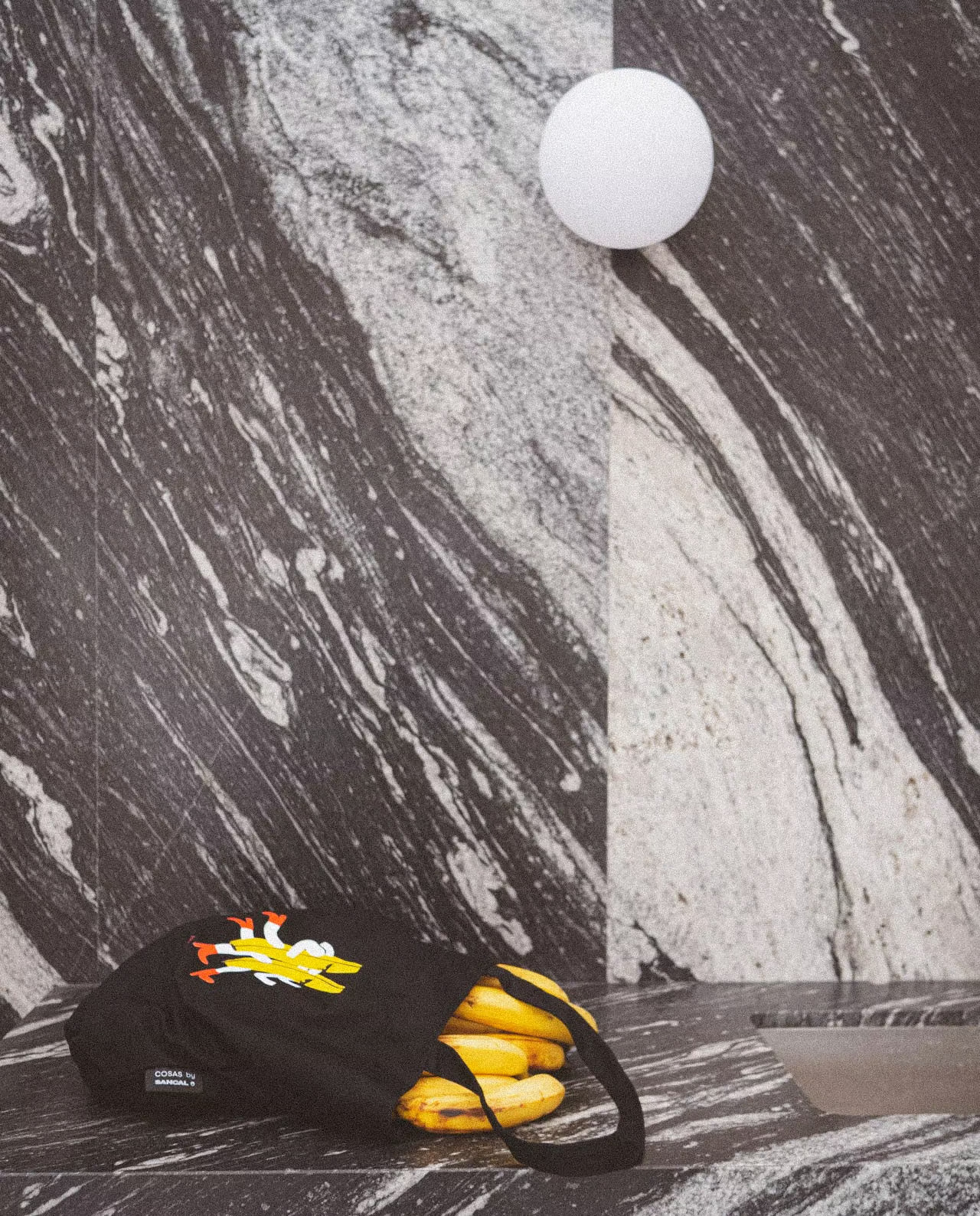 Ez a praktikus és sokoldalú táska ideális a vásárlások vagy egyéb holmik szállítására, legyen szó homokról, földről vagy aszfaltról. Egle Zvirblyte által illusztrált pajkos banánok humorral és jókedvvel vigyáznak a tartalmára. A strapabíró, 100% pamutból készült táska a legújabb trendeknek megfelelően készült, és nélkülözhetetlen kiegészítővé válik a mindennapokban.