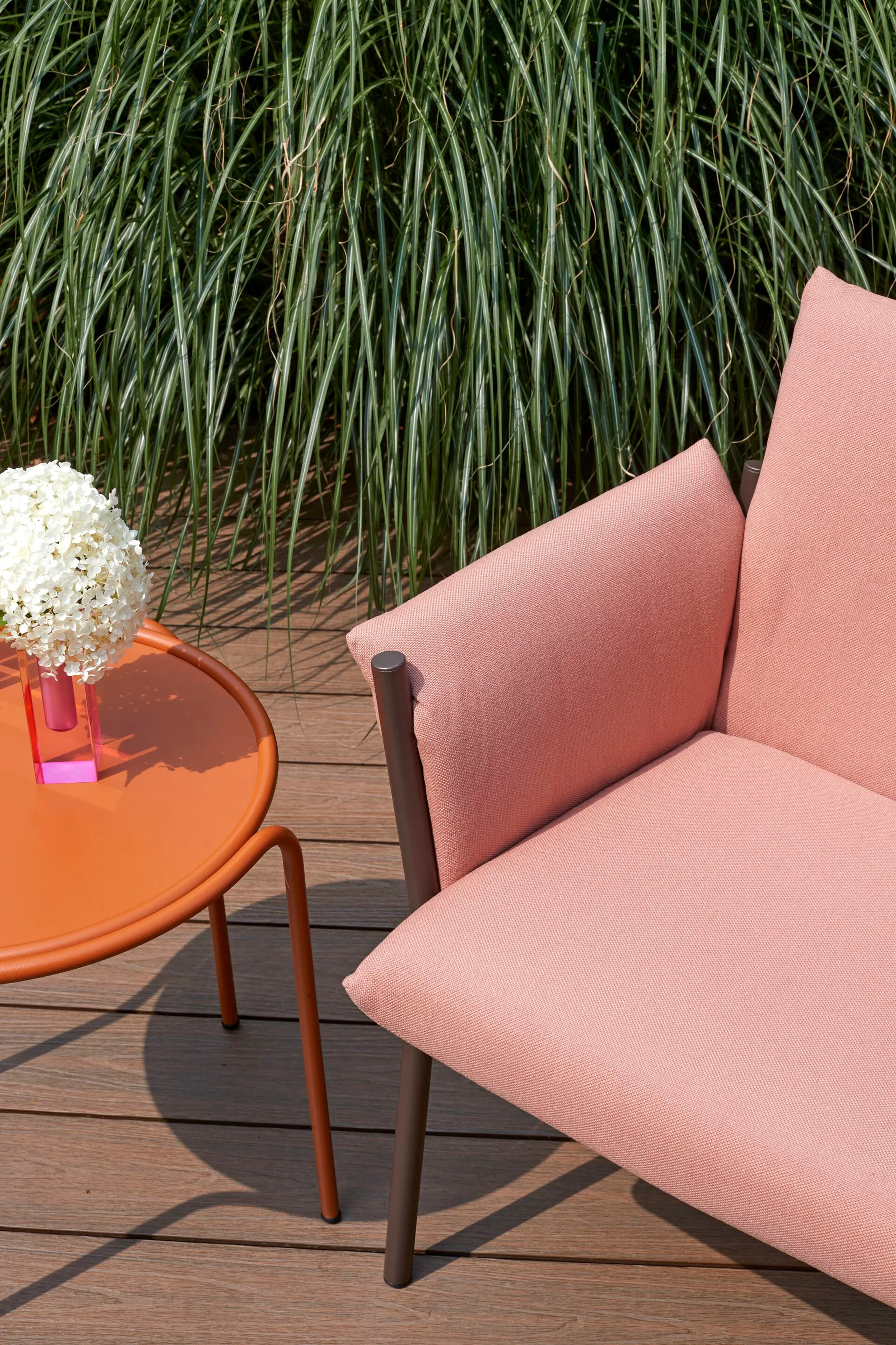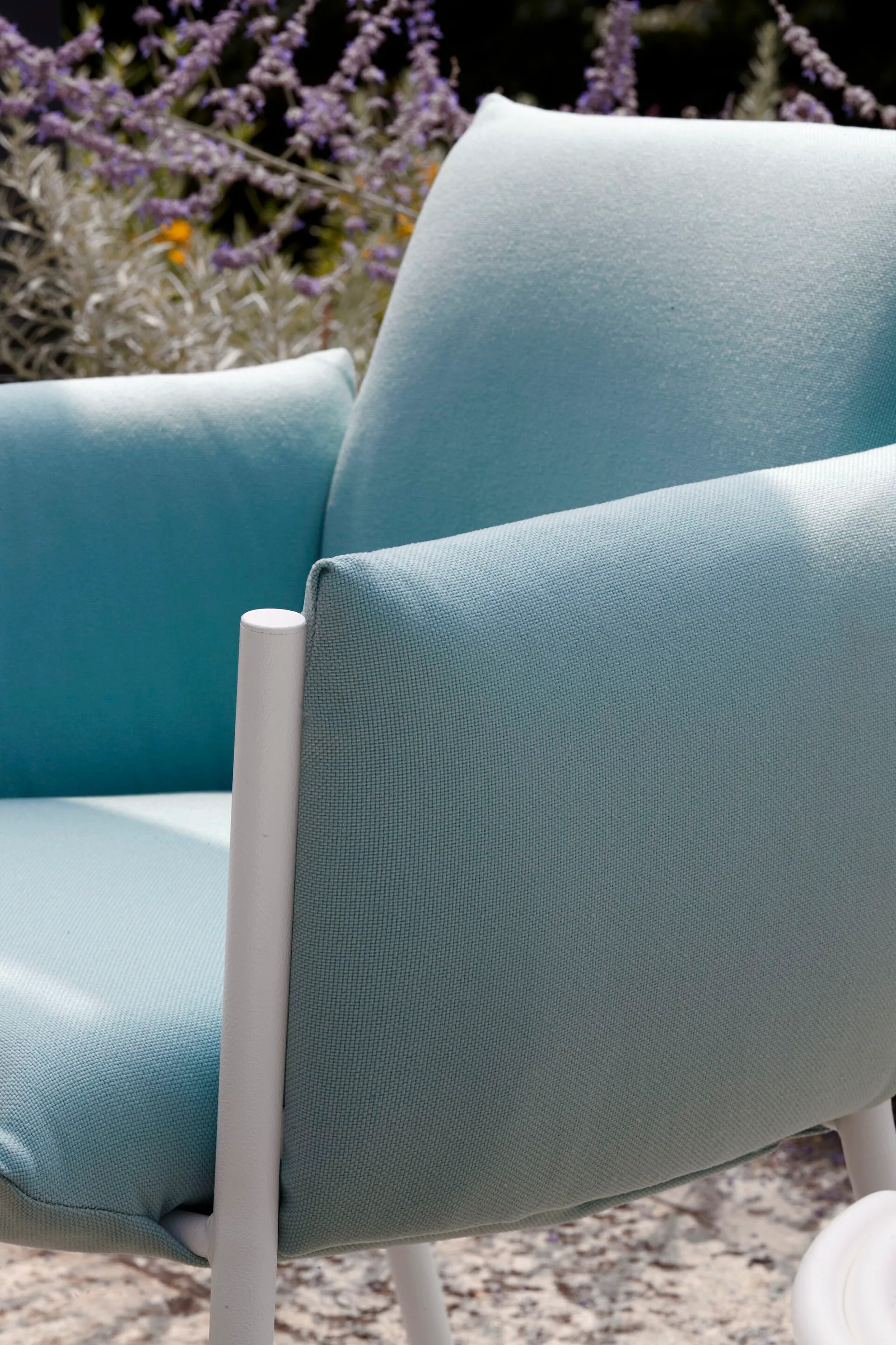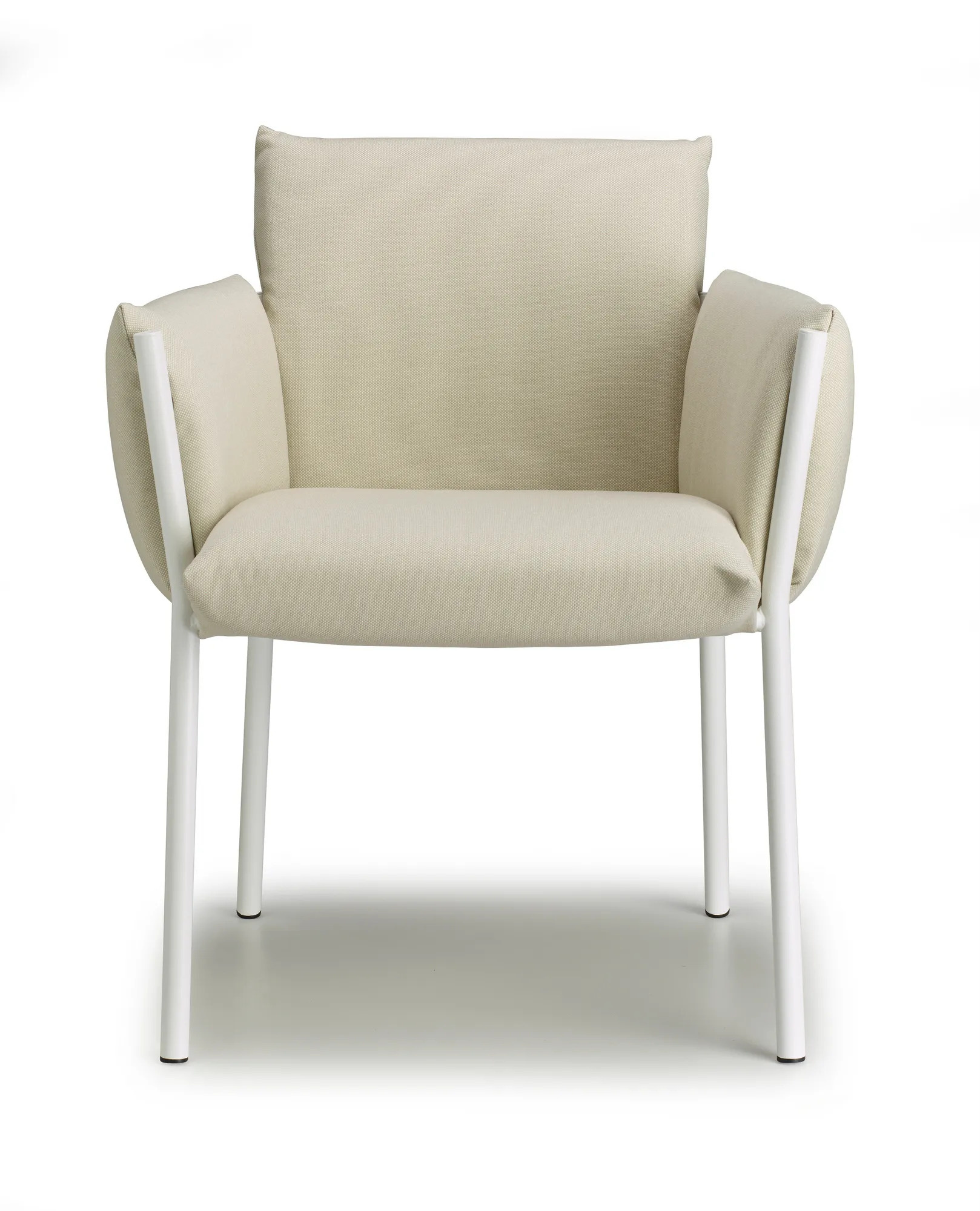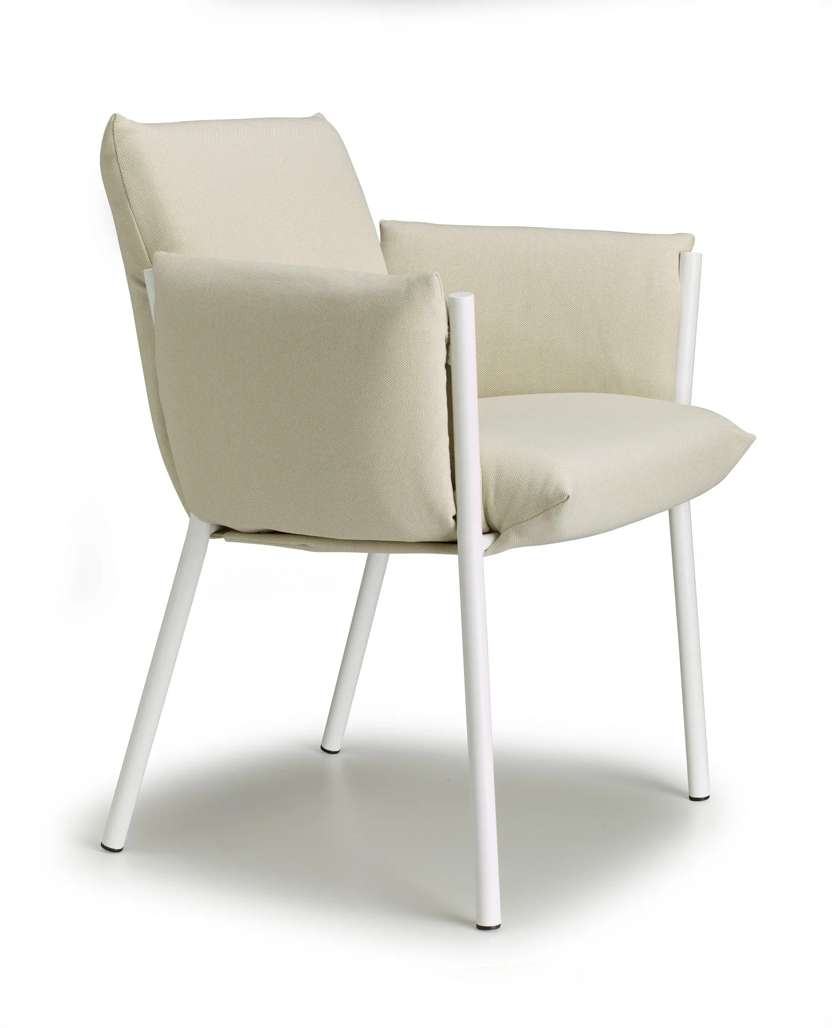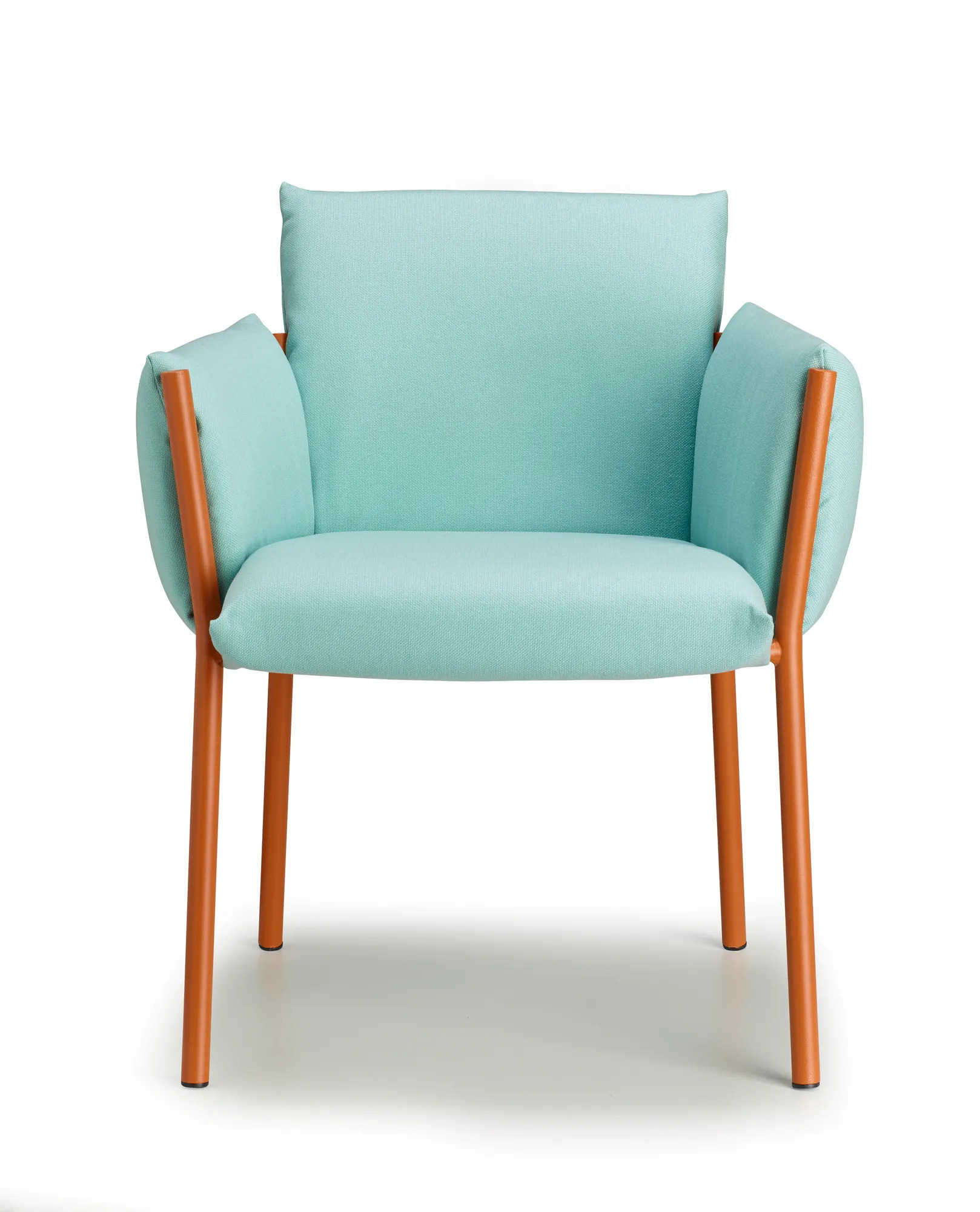 A Brezza szék 25 mm átmérőjű acélcső vázzal rendelkezik, amely len, galambszürke, antracit, olívazöld, mokka és terrakotta színekben érhető el. A széles választékú kárpitok között újrahasznosított, környezetbarát szövetek is megtalálhatók, amelyek új termékekké alakított hulladékokból származnak. Alessandro Stabile tervezésében a váz és a párnák innovatív módon kapcsolódnak össze, ötvözve a szilárdságot és az eleganciát. Az ülőfelületek könnyen rögzíthetők az egymásba illeszkedő elemekkel. A kerek fém lábak láthatóak maradnak, erőt és egyediséget kölcsönözve a széknek. A Brezza környezettudatossága az anyagválasztásban rejlik: újrahasznosított fonalból készült szövetek, ragasztómentes kialakítás, és a szállítási méret minimalizálása érdekében egymásra rakható vázak, csökkentve a CO2-kibocsátást.