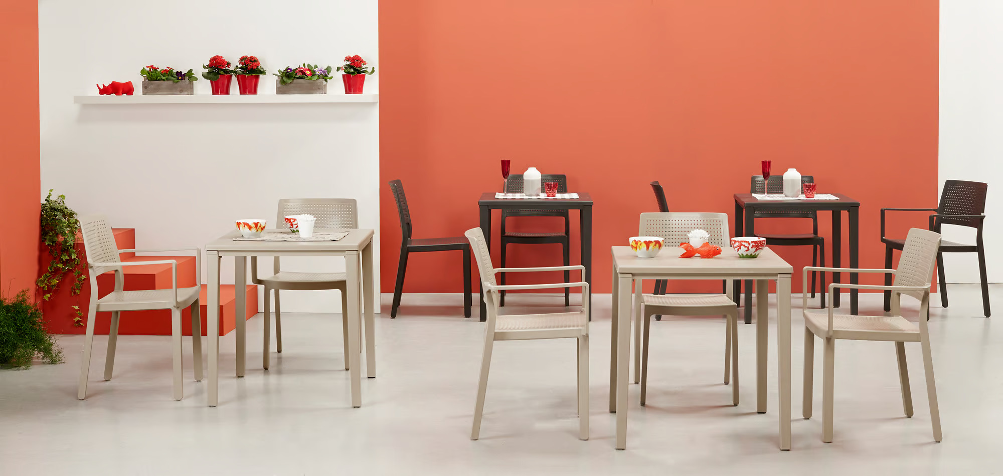Az EMI székek a SCAB Design és az Arter&Citton stúdió közös munkájának eredményei, melyek a mérnöki precizitást és a modern esztétikát ötvözik. Ezek a design székek ideálisak irodai asztalokhoz, étkezőasztalokhoz, valamint kávézók és éttermek számára. Az EMI székek letisztult vonalvezetésükkel és lekerekített lábaikkal tűnnek ki, amelyek stabilitást és eleganciát sugároznak. Kaphatók sima és perforált változatban, így beltéri és kültéri használatra egyaránt alkalmasak. A perforált verzió könnyített műanyag szerkezettel rendelkezik, amely praktikus és tartós. Az innovatív tervezés lehetővé teszi a székek hézagmentes, egyenletes illeszkedésű egymásra rakását, ami helytakarékos tárolást biztosít. Az EMI székek különböző színekben érhetők el, mint például len, taupe, antracit, világosszürke, világoskék és olívazöld.