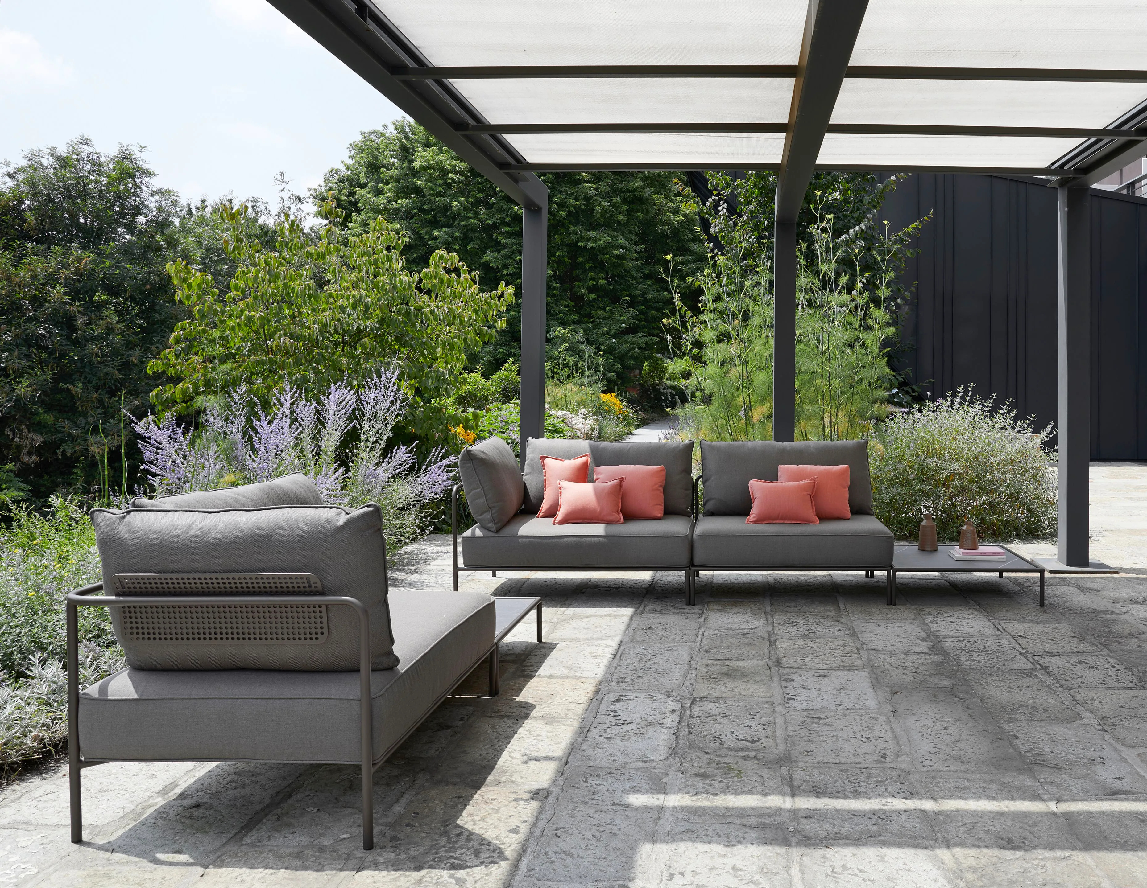 A FLAP a Meneghello Paolelli által tervezett első moduláris kárpitozott bútorcsalád, amely a kültéri ülőgarnitúrák új dimenzióját képviseli. Az ülőelemek és a támasztó felületek kombinációja révén harmonikusan illeszkedik a bel- és kültér közötti térbe. A hátsó párnák megtámasztására repülőgép szárnyakra emlékeztető elemek kerültek a fő szerkezet háttámlájára. A FLAP moduláris kerti szék fém vázzal rendelkezik, amely több színben elérhető: len, galambszürke, antracit, mokka és terrakotta. Széles választékban kapható kültéri szövetekkel, így ideális választás éttermek, kávézók, szállodák és egyéb vendéglátóipari egységek számára, akik stílusos és funkcionális kültéri bútorokat keresnek.